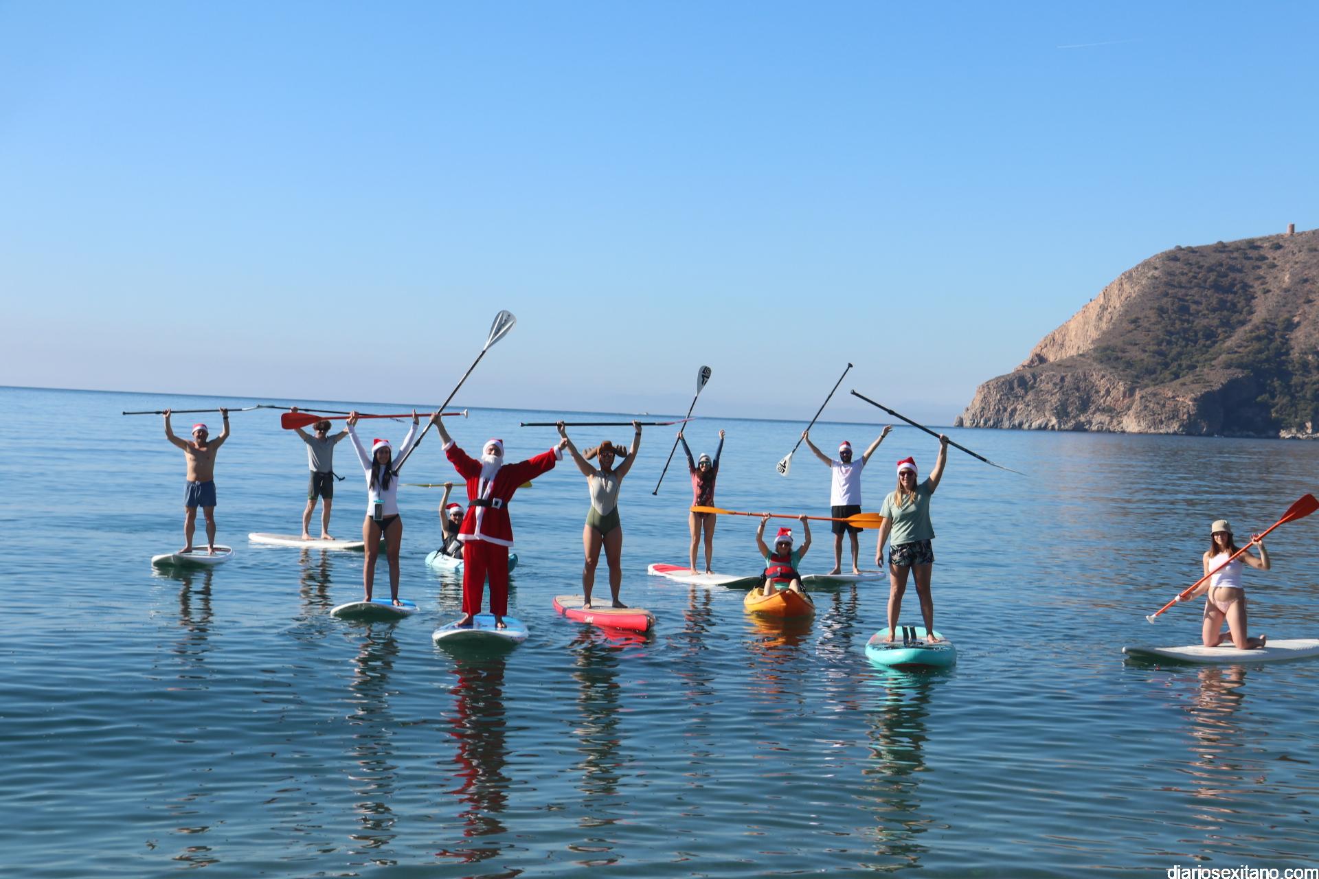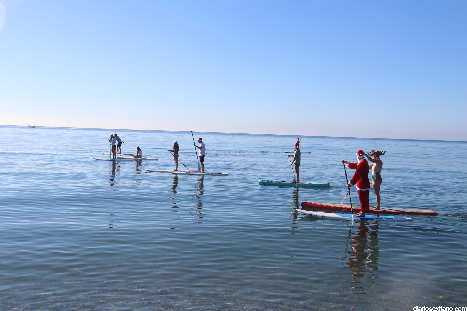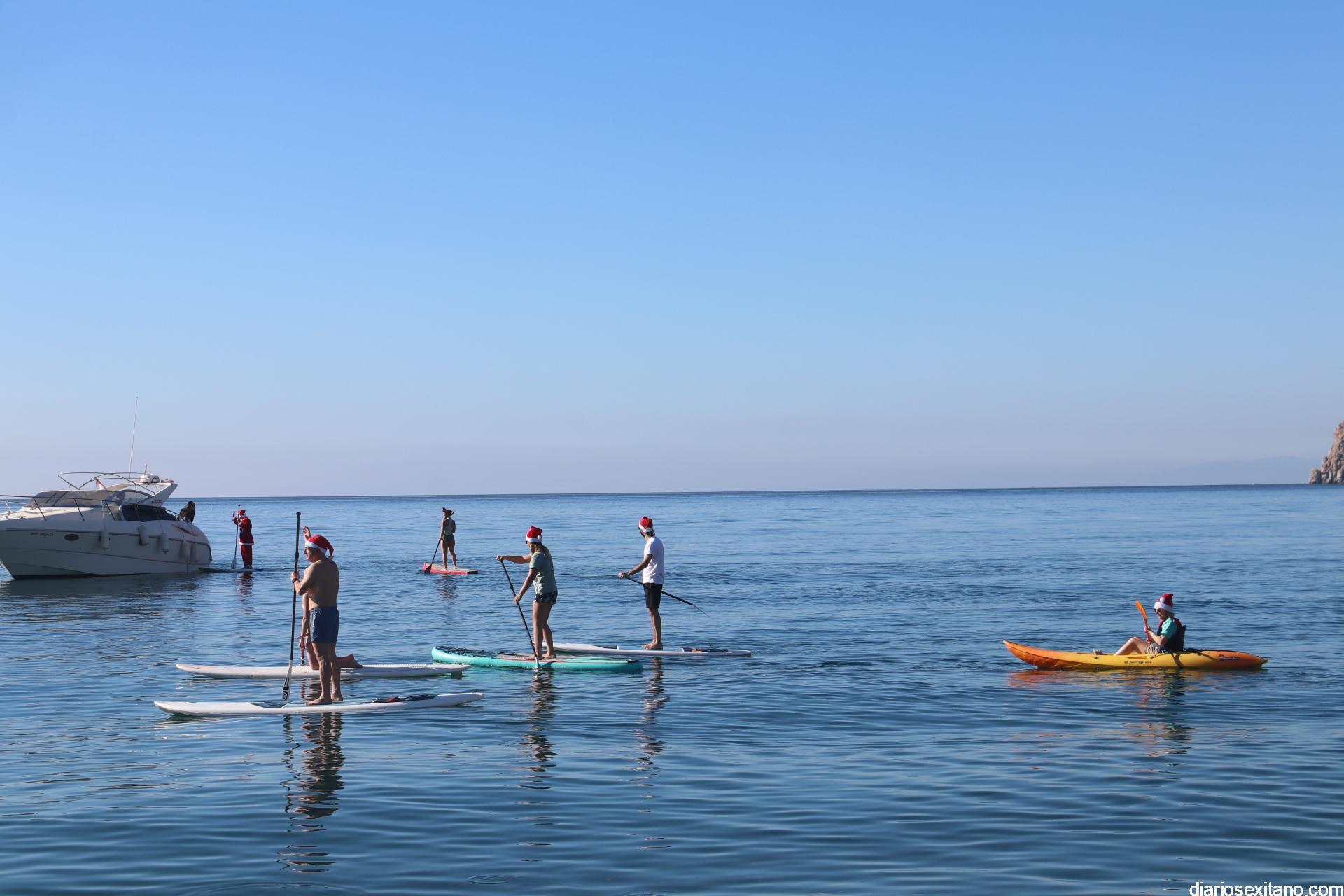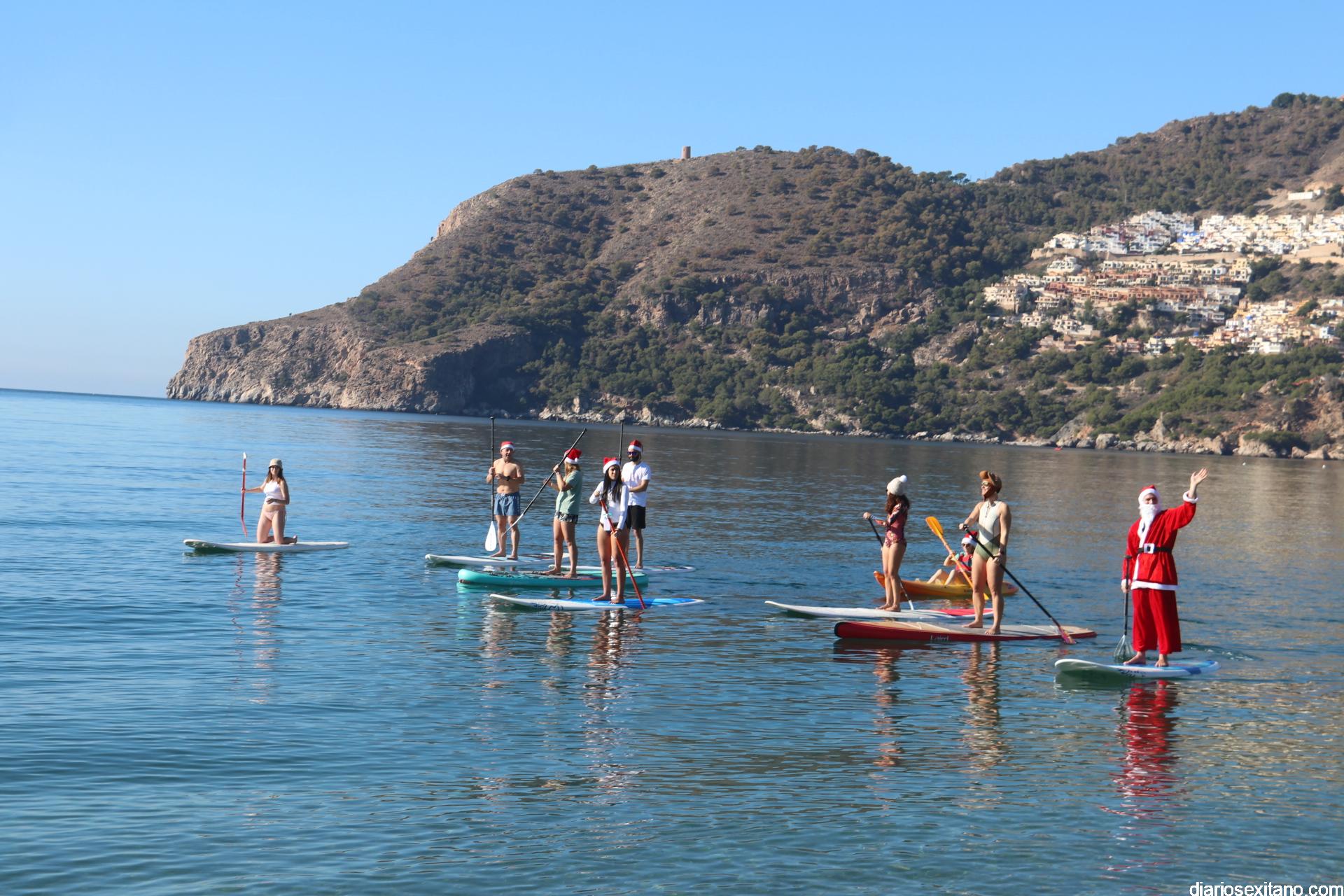 El buen tiempo hizo que Papá Noel llegara a la Playa de La Herradura en paddle surf acompañado de un amplio séquito. La buena temperatura ambiente hizo que se viviera una jornada con excelente temperatura ambiente que, unido al buen estado del mar, hizo que el recorrido fuese saludado por numerosas personas.