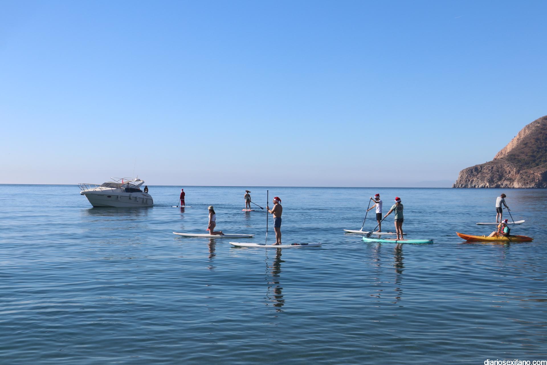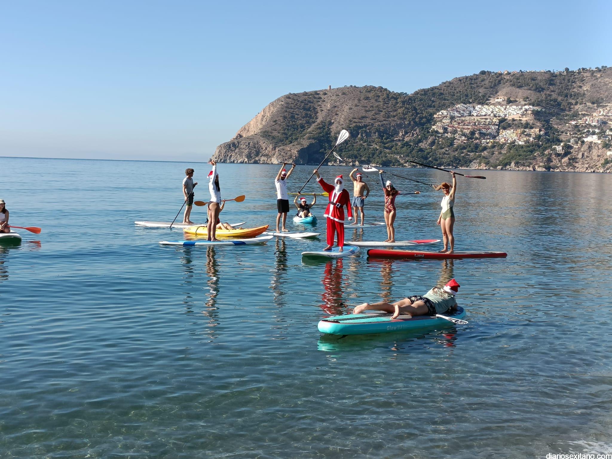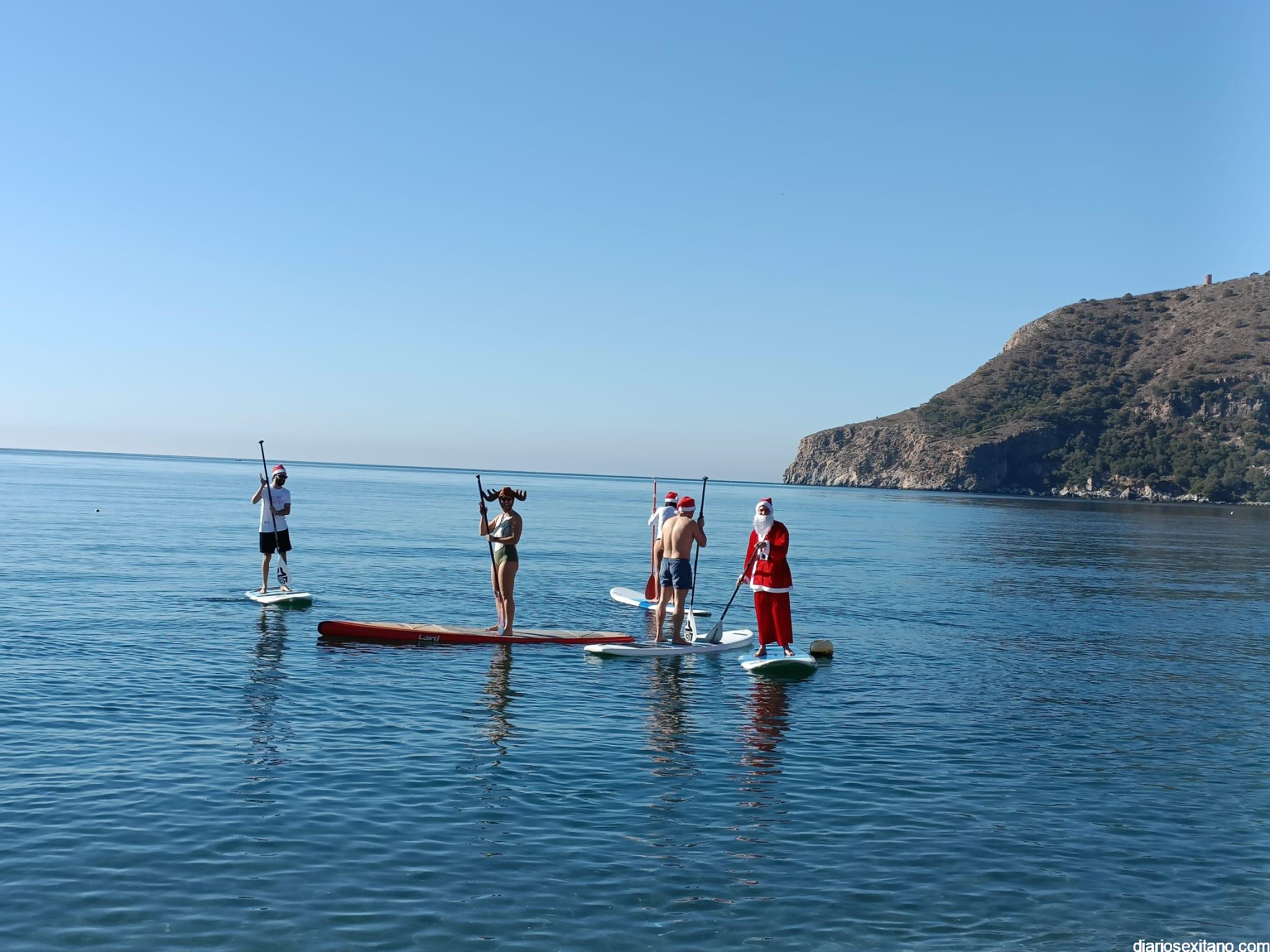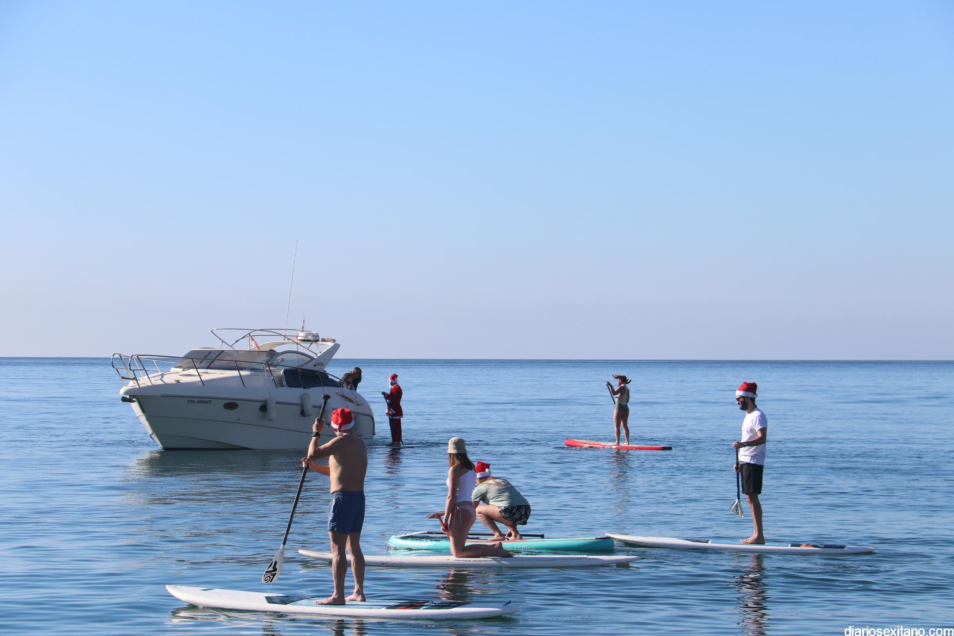 El buen tiempo hizo que Papá Noel llegara a la Playa de La Herradura en paddle surf acompañado de un amplio séquito. La buena temperatura ambiente hizo que se viviera una jornada con excelente temperatura ambiente que, unido al buen estado del mar, hizo que el recorrido fuese saludado por numerosas personas.