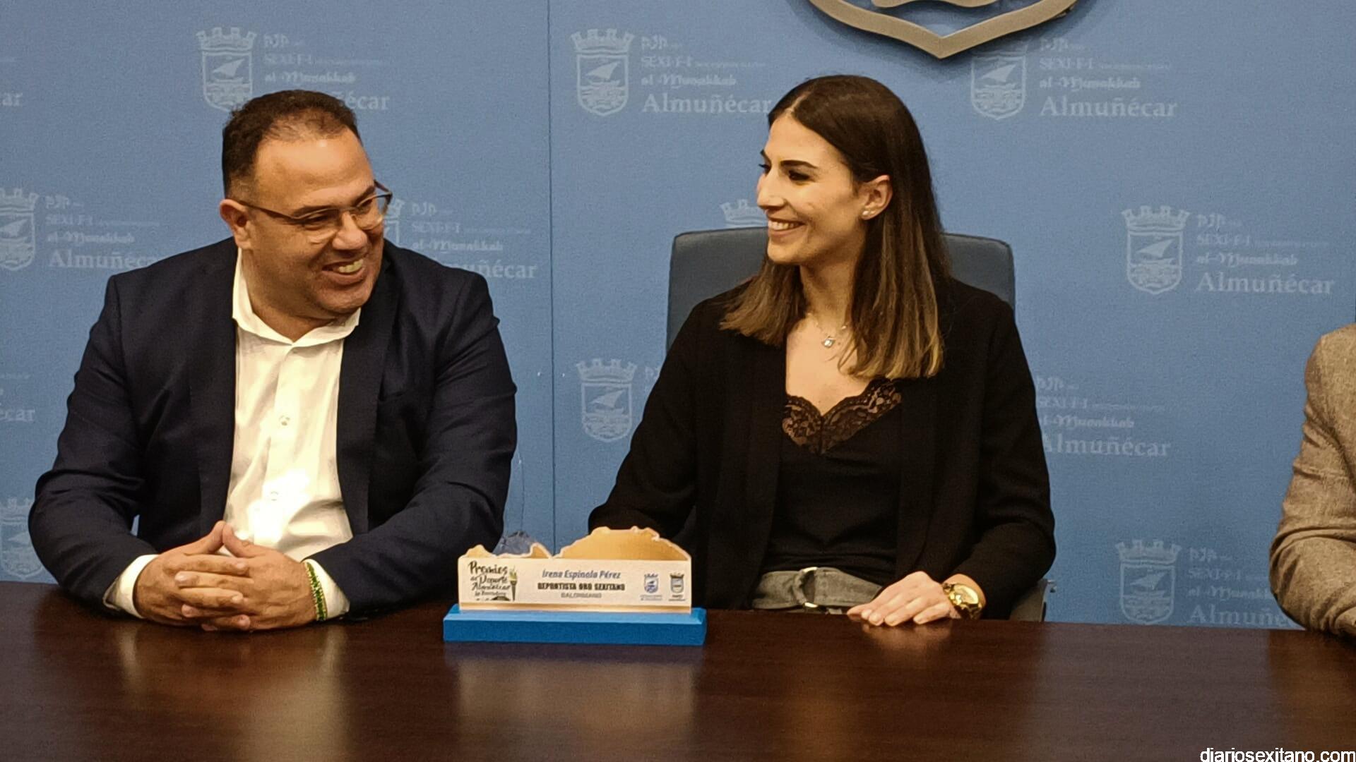 La jugadora sexitana, tras disculparse por no poder asistir a la gala de los Premios del Deporte por motivos deportivos, Irene Espínola, agradeció el galardón y recalcó que lleva el nombre de Almuñécar con mucho orgullo allá donde va.