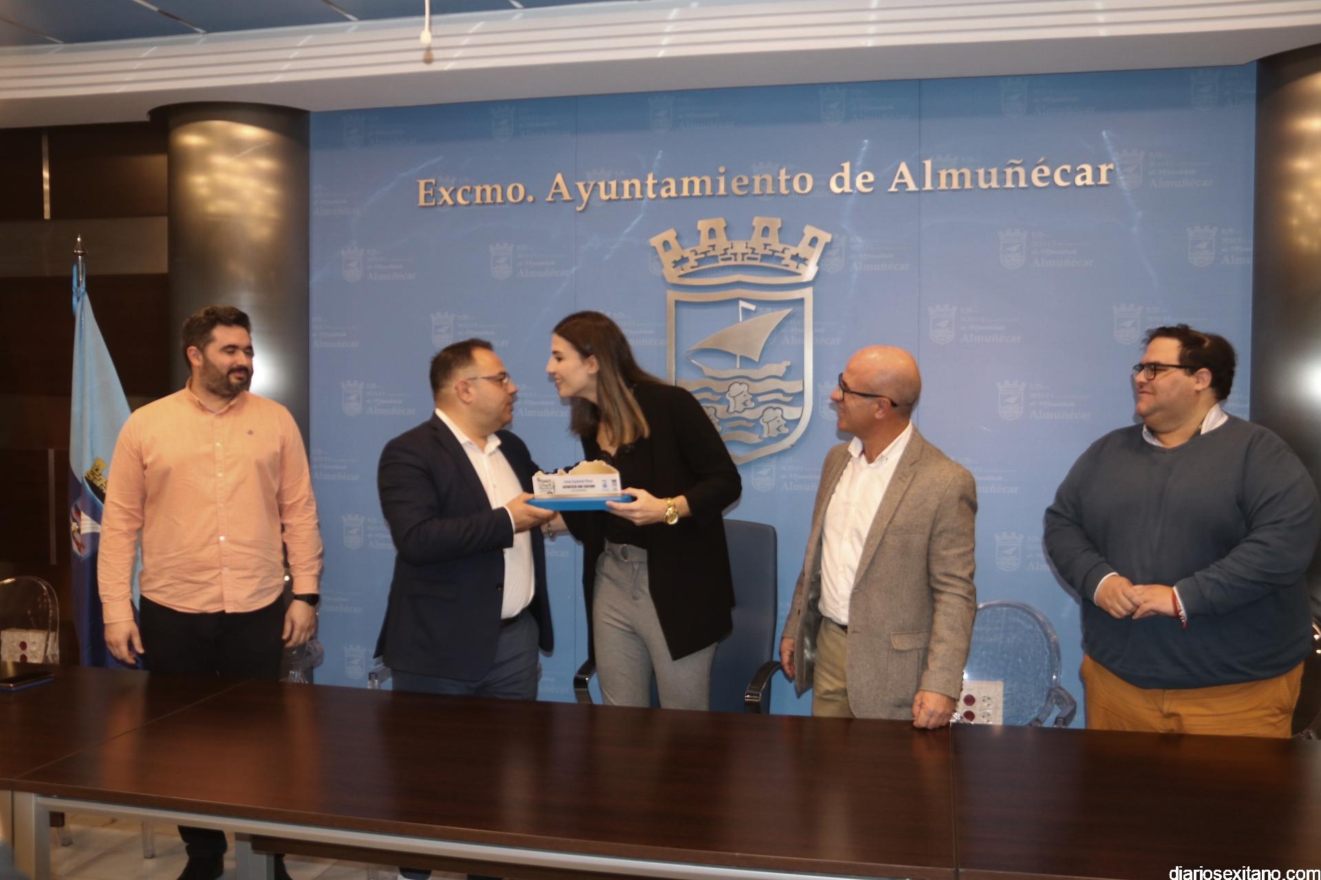 La entrega del reconocimiento, que ha tenido lugar en la Sala de Juntas del Consistorio sexitano y donde el regidor sexitano estuvo acompañado del delegado municipal de Deportes, Luis Aragón así como ediles Javier García y Rafael Caballero, se ha podido hacer este lunes aprovechando la visita de Irene Espínola a la familia para celebrar la Nochevieja.