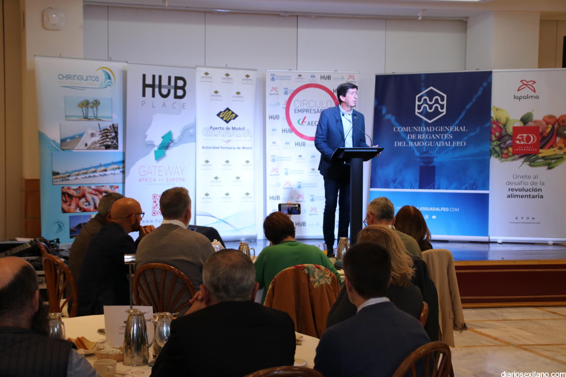 Juan Marín recordó los proyectos ferroviarios y el corredor Mediterráneo con fondos europeos y la tramitación que se tiene que llevar a cabo para estos proyectos para ayudar a la exportación con Europa.