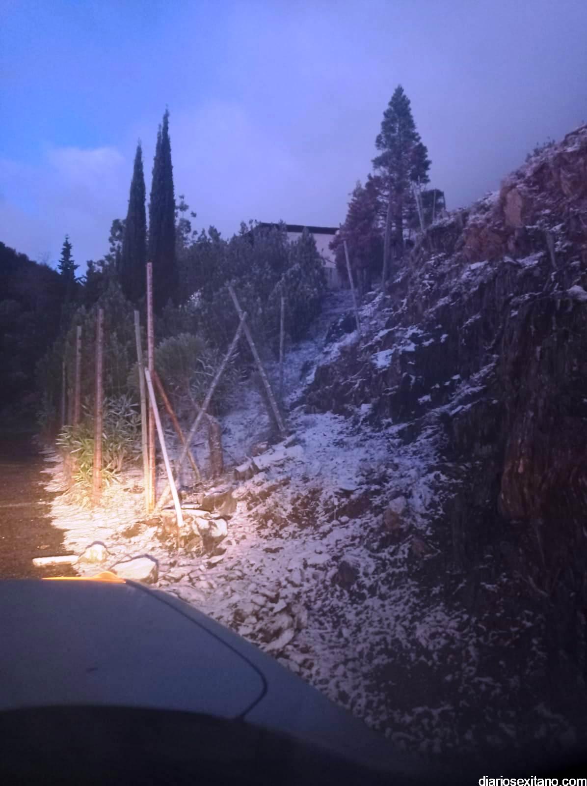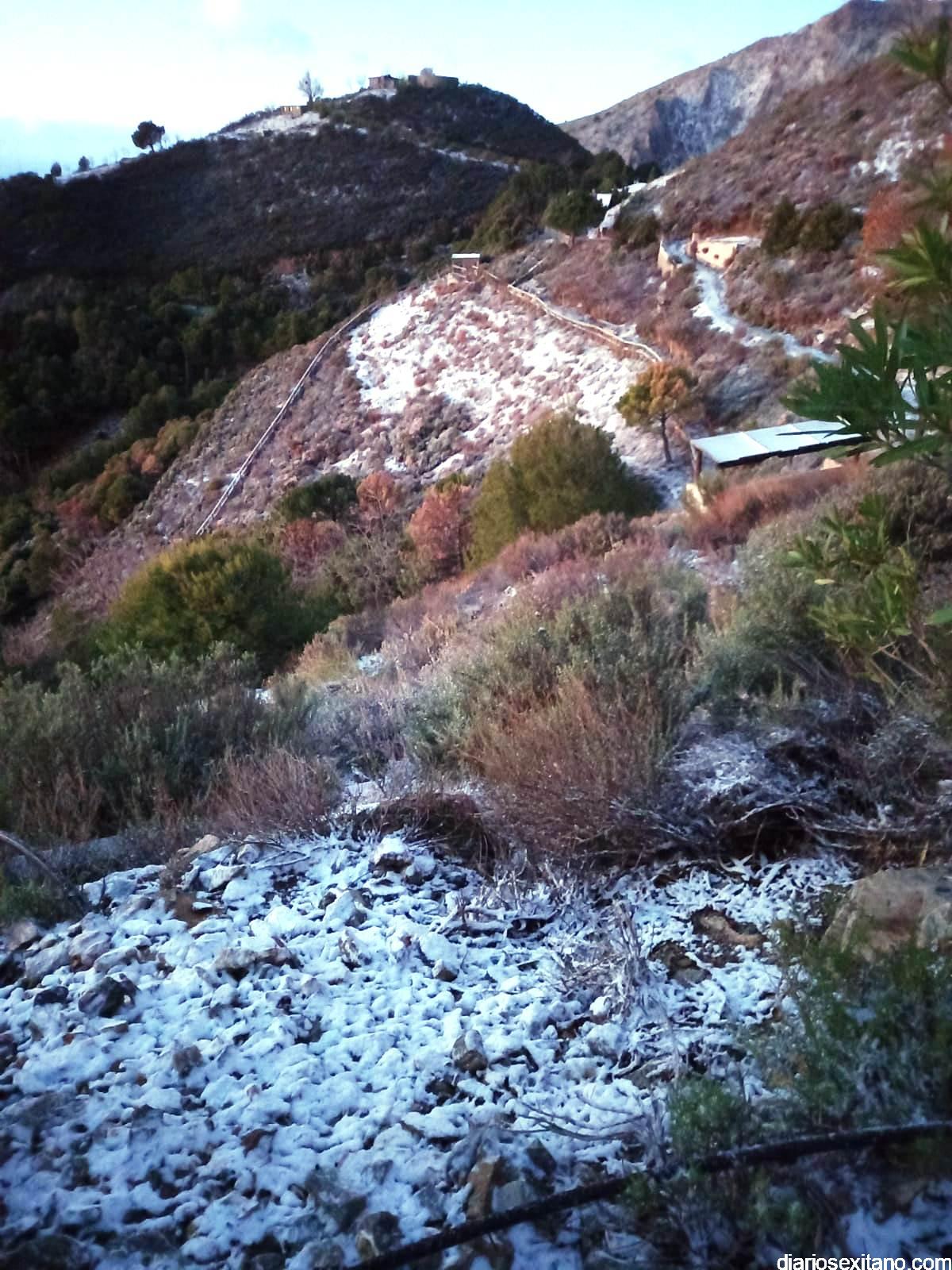 Los empleados municipales del Área de Medio Ambiente del Ayuntamiento de Almuñécar se han encontrado esta mañana con una nevada en la finca municipal de Peña Escrita.