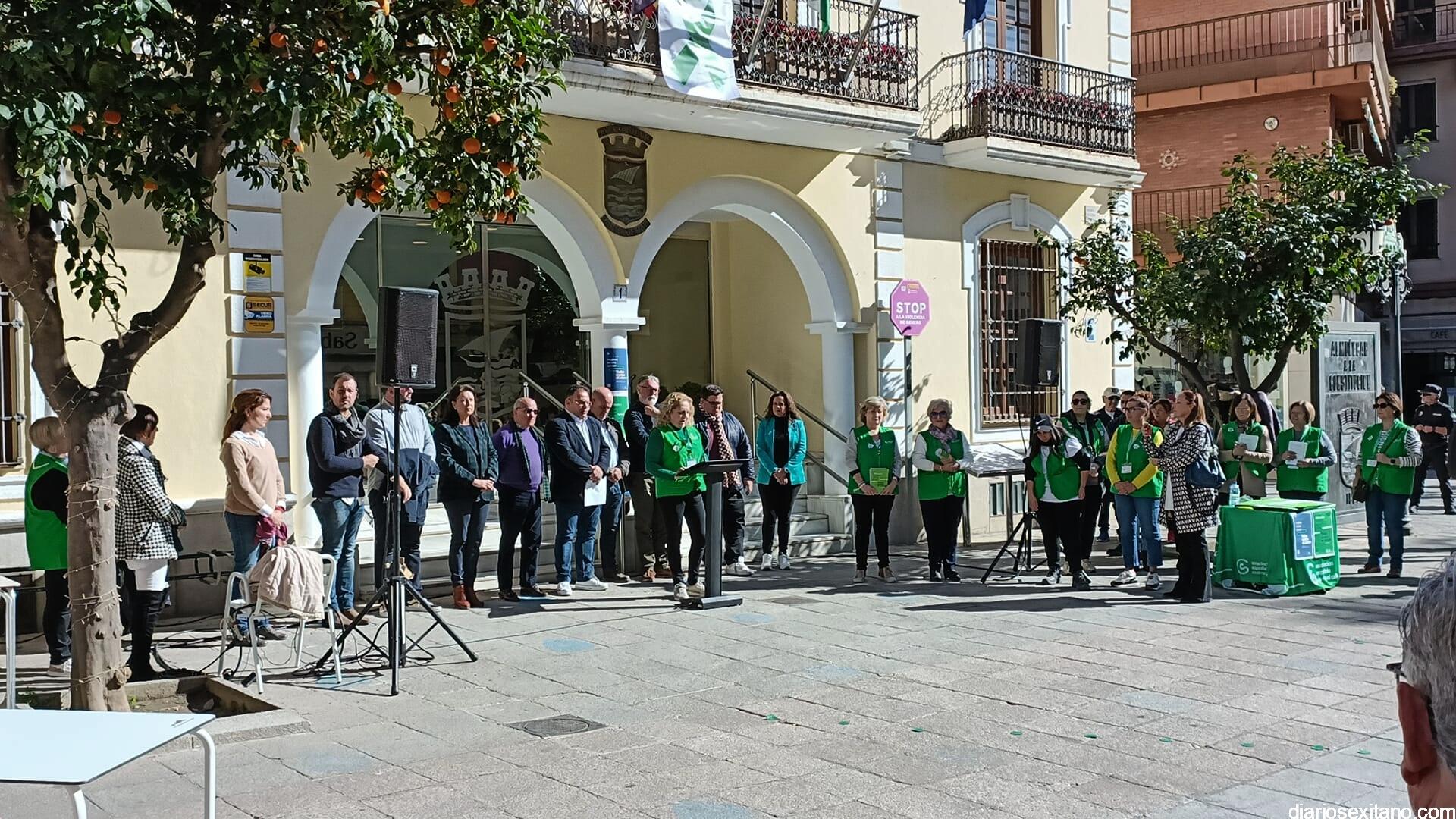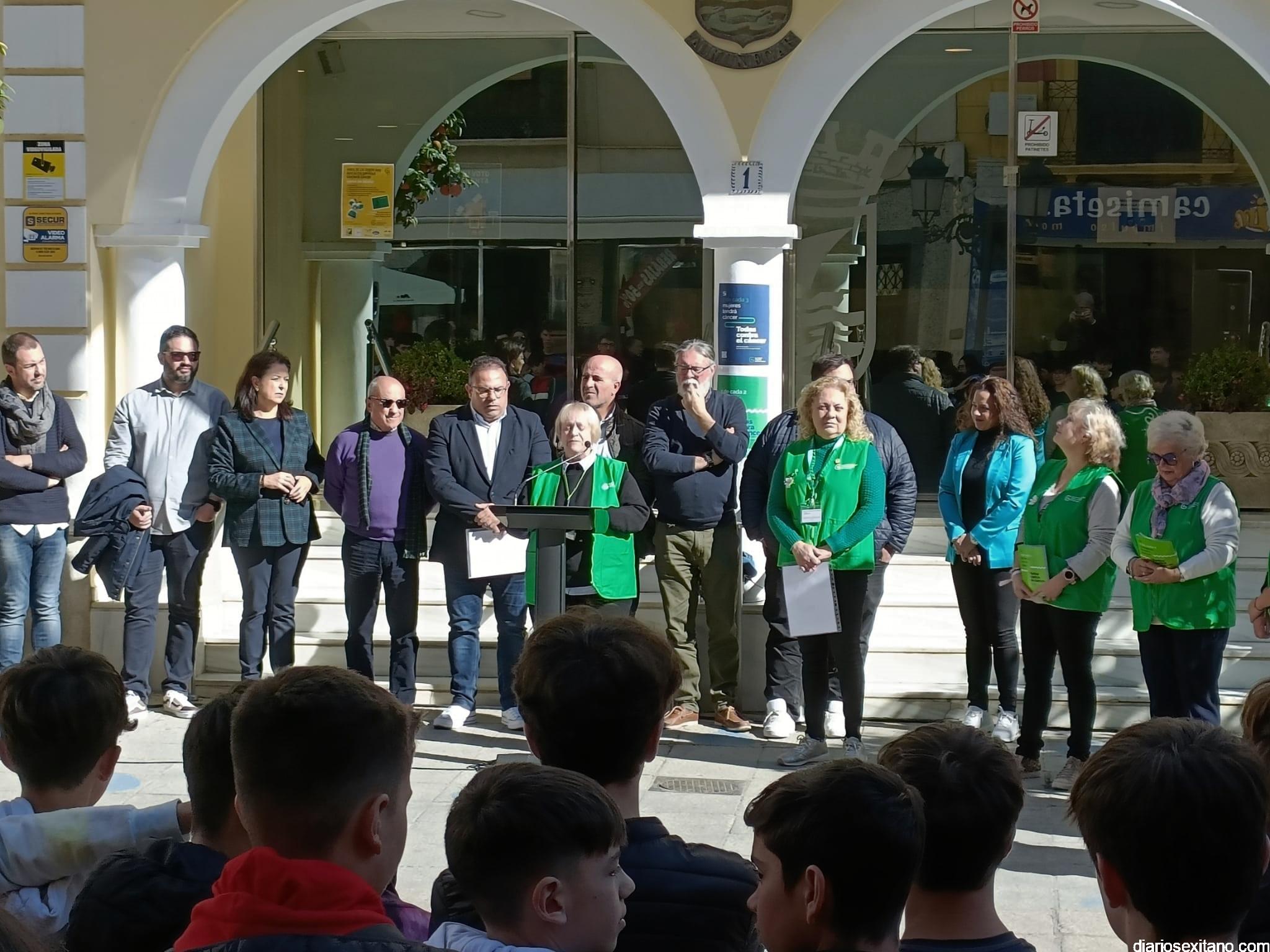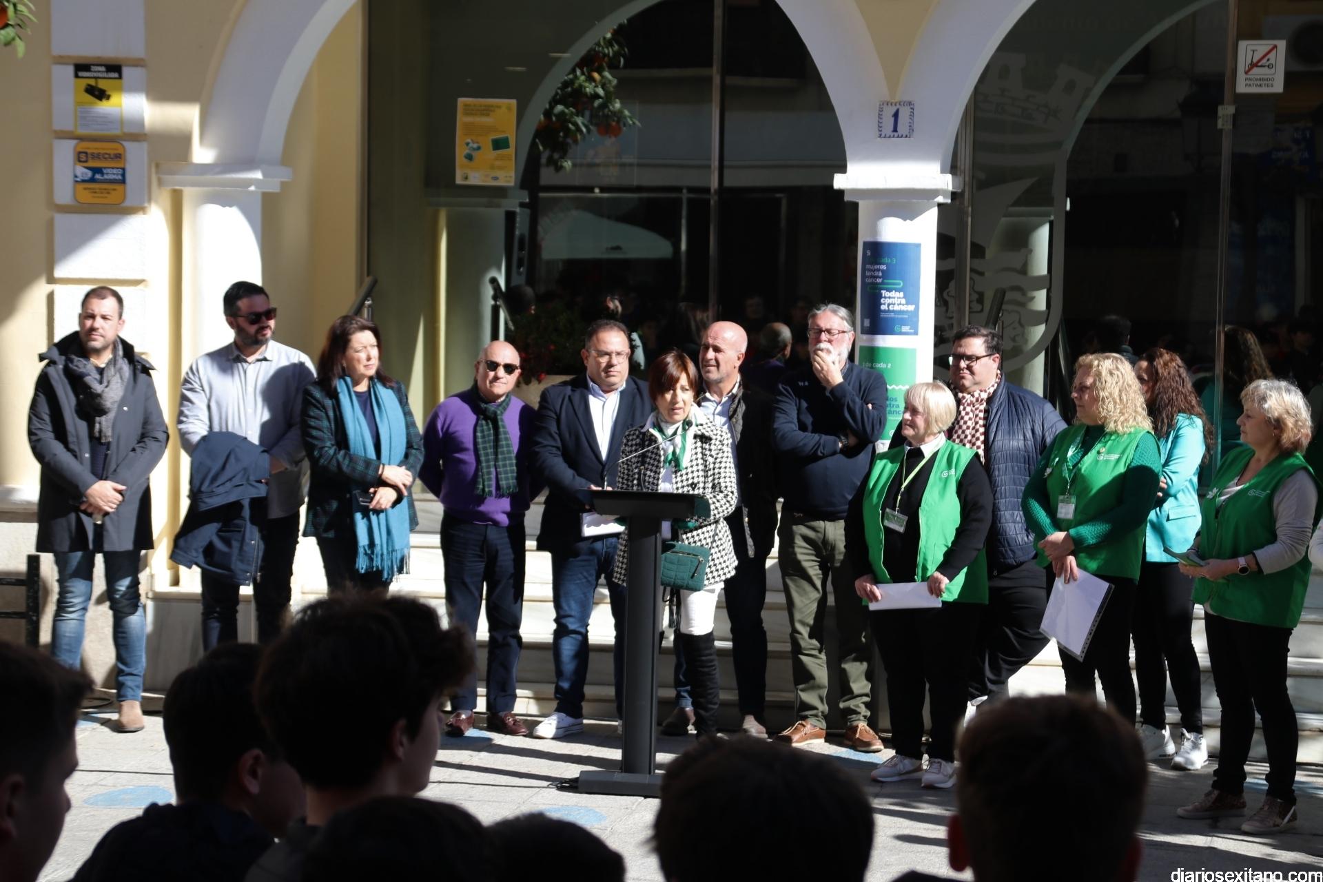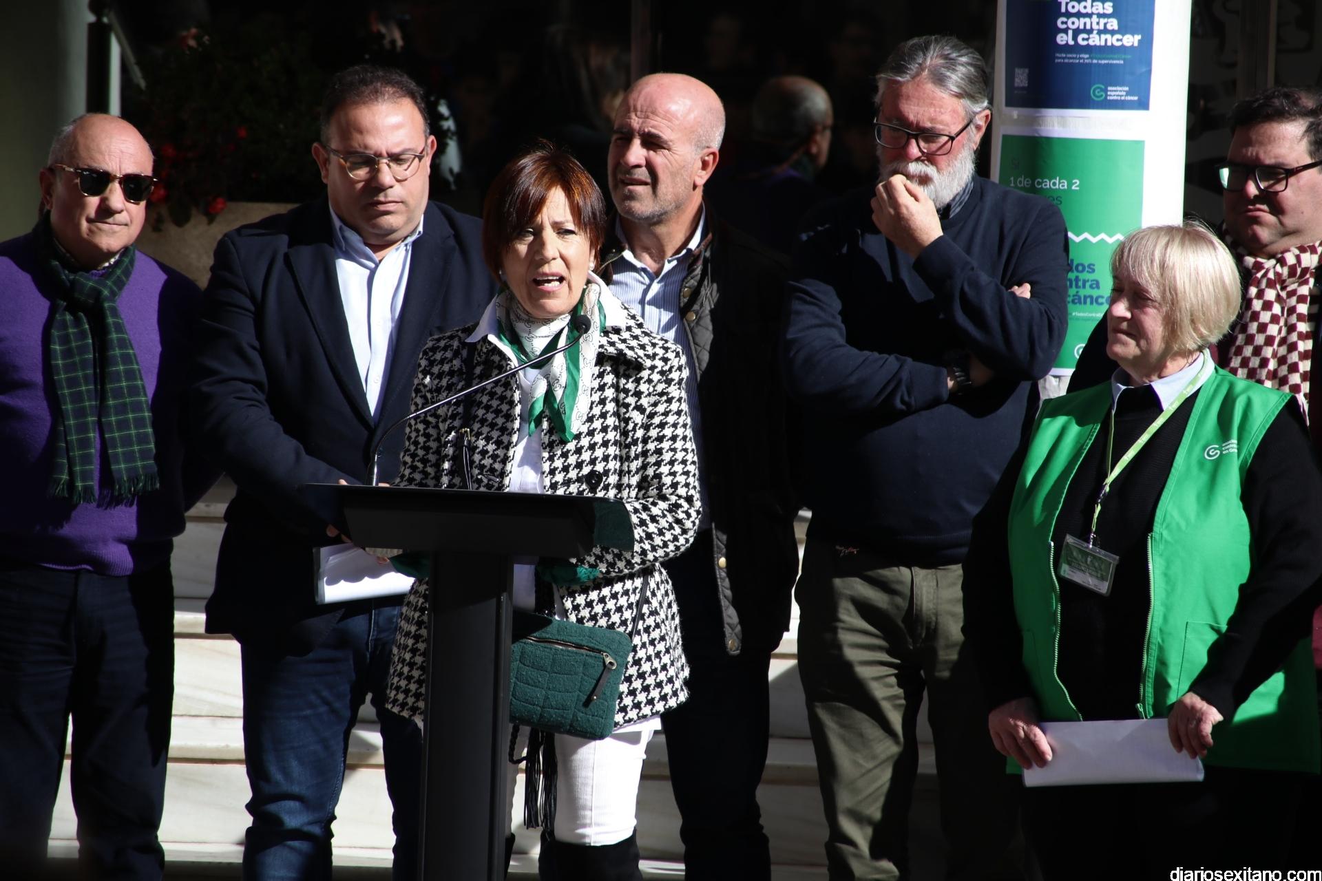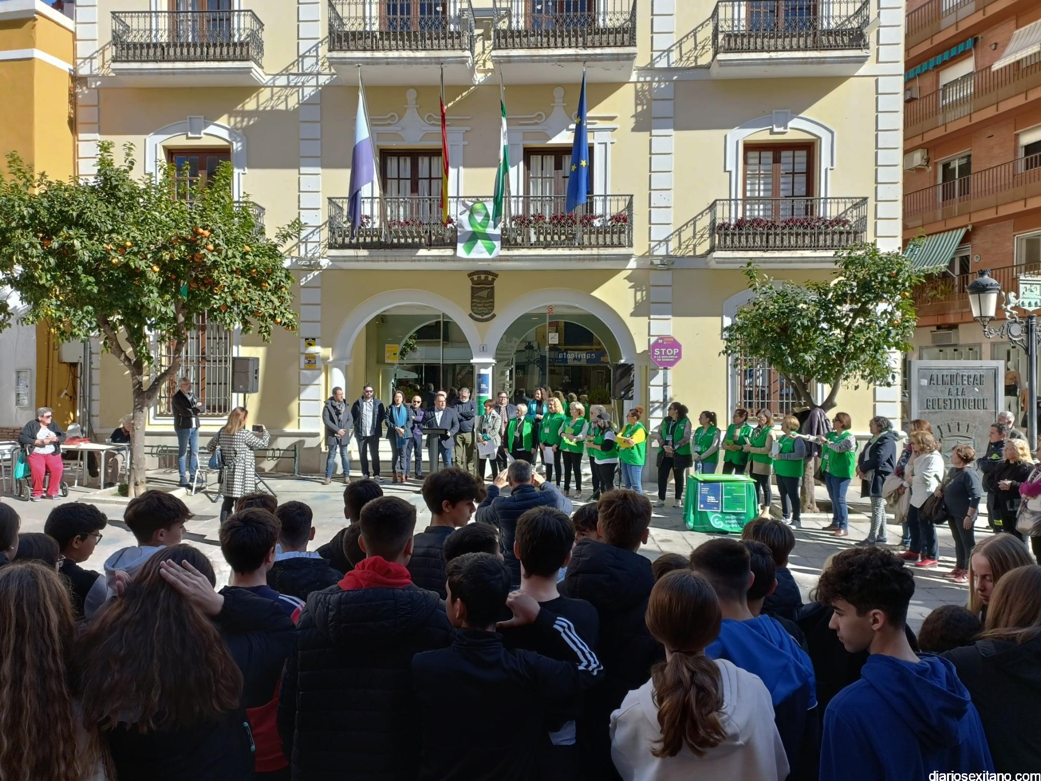 El acto ha contado con la participación de corporativos sexitanos, encabezado por el alcalde, Juan José Ruiz Joya, voluntariado de la Junta Local de AECC con la presidenta al frente Concepción García Fernández y alumnos del IES Puerta del Mar.
