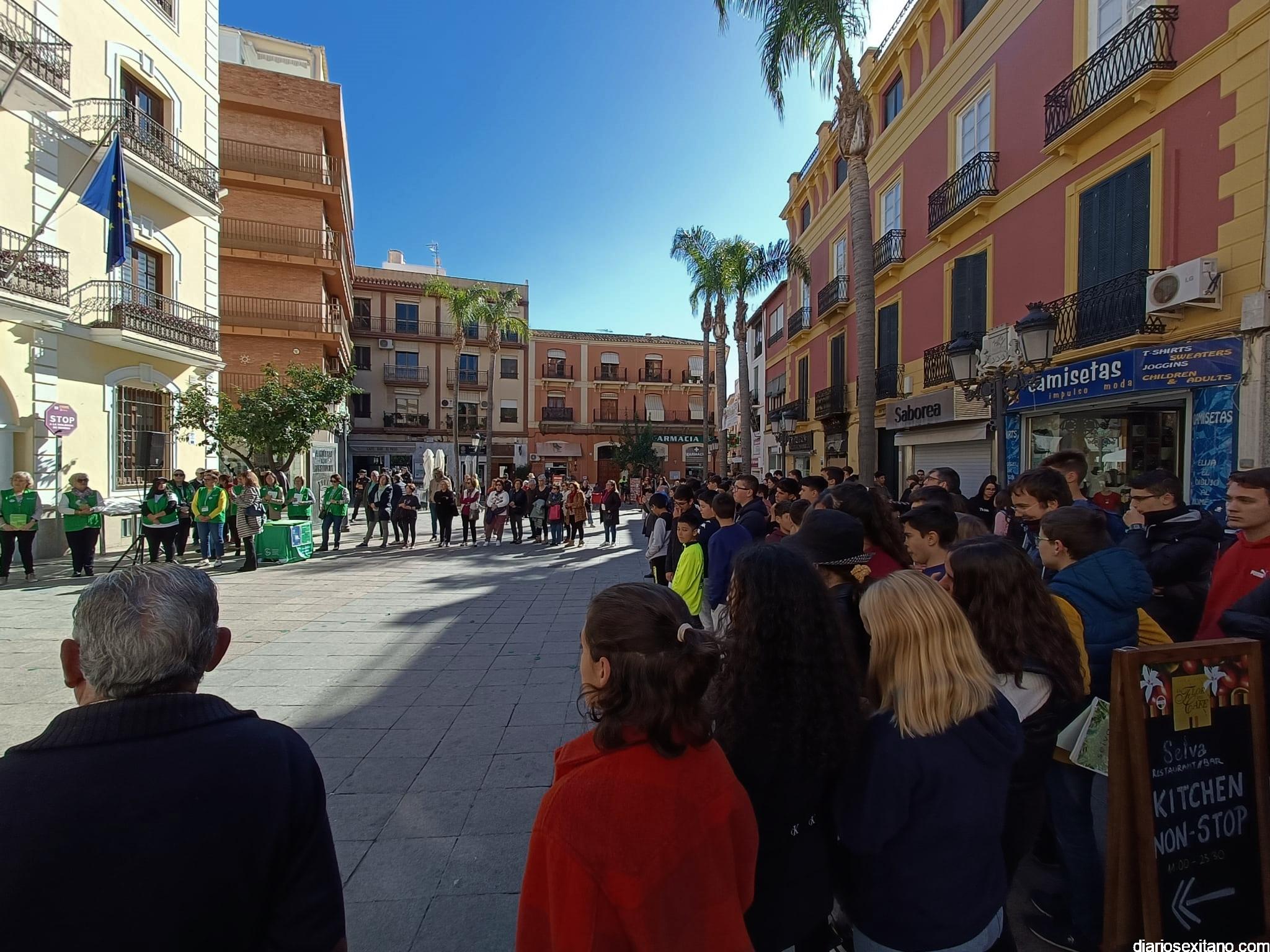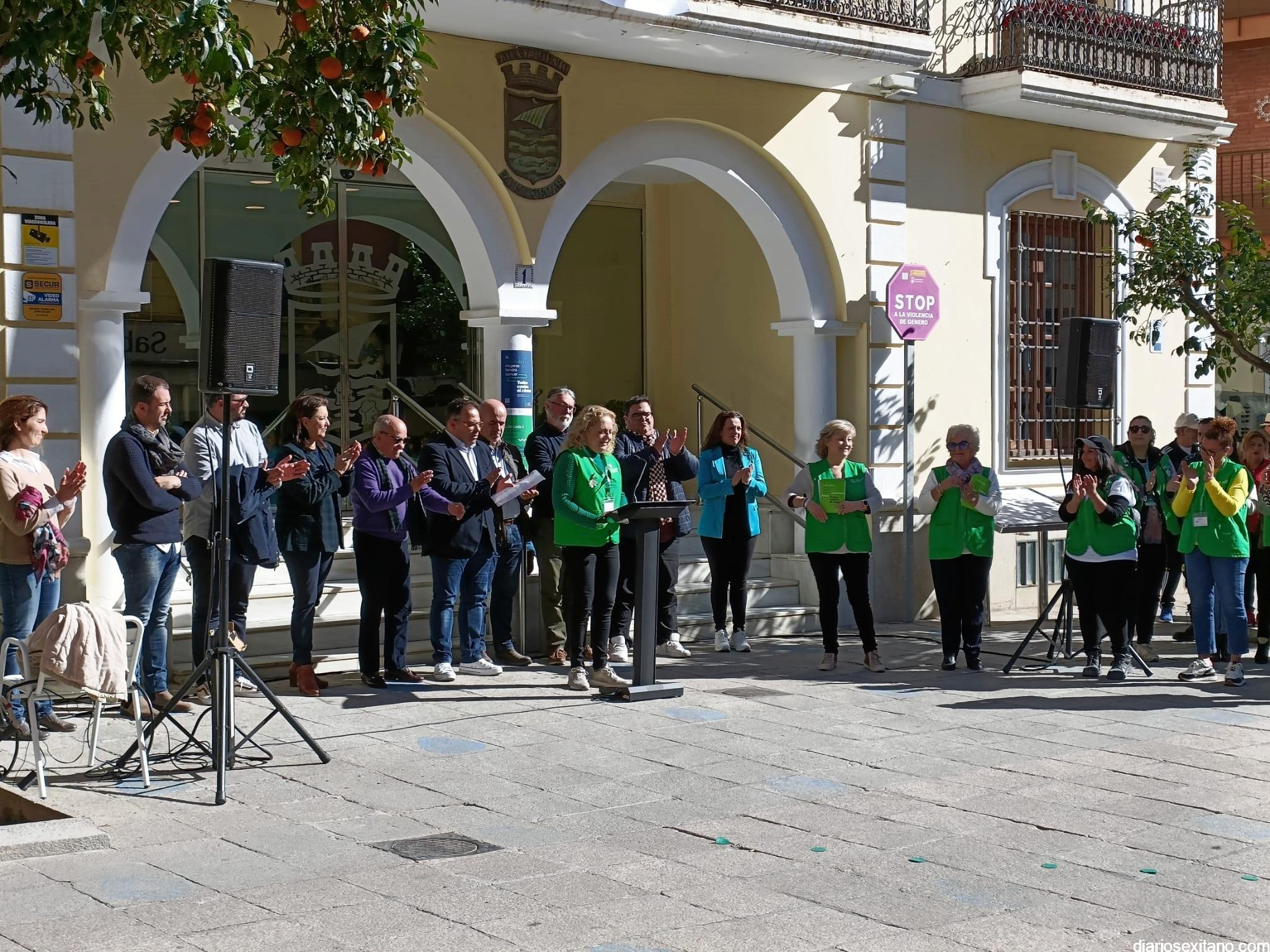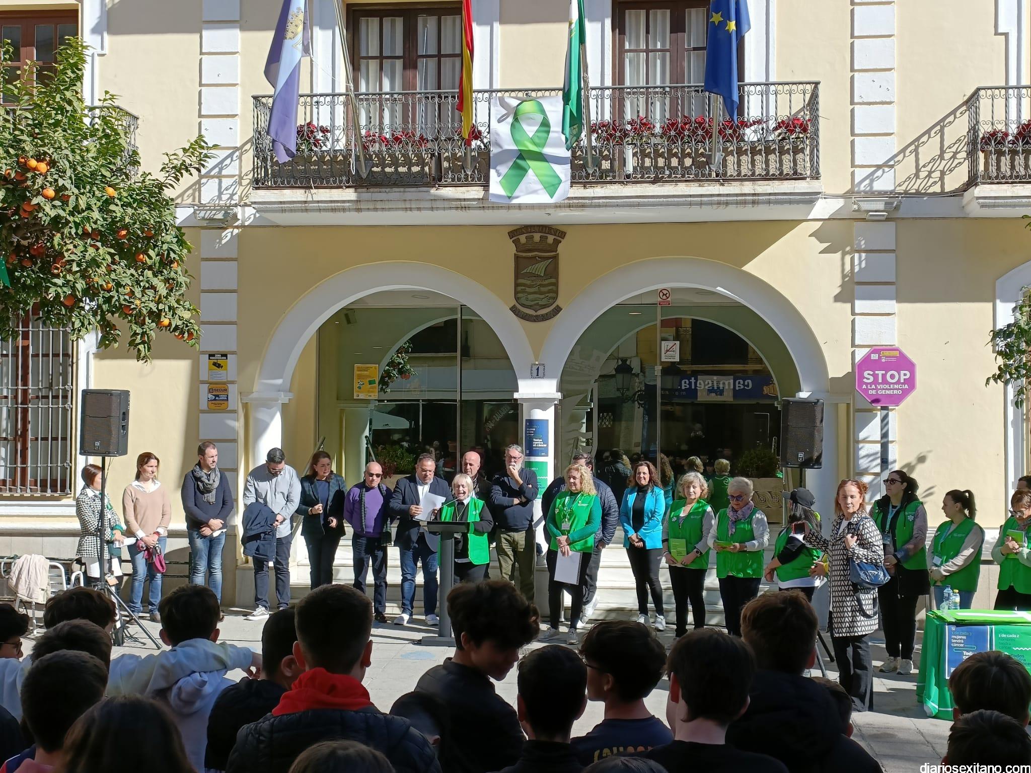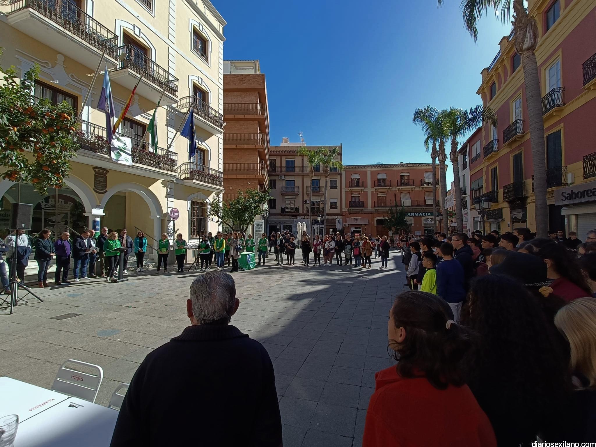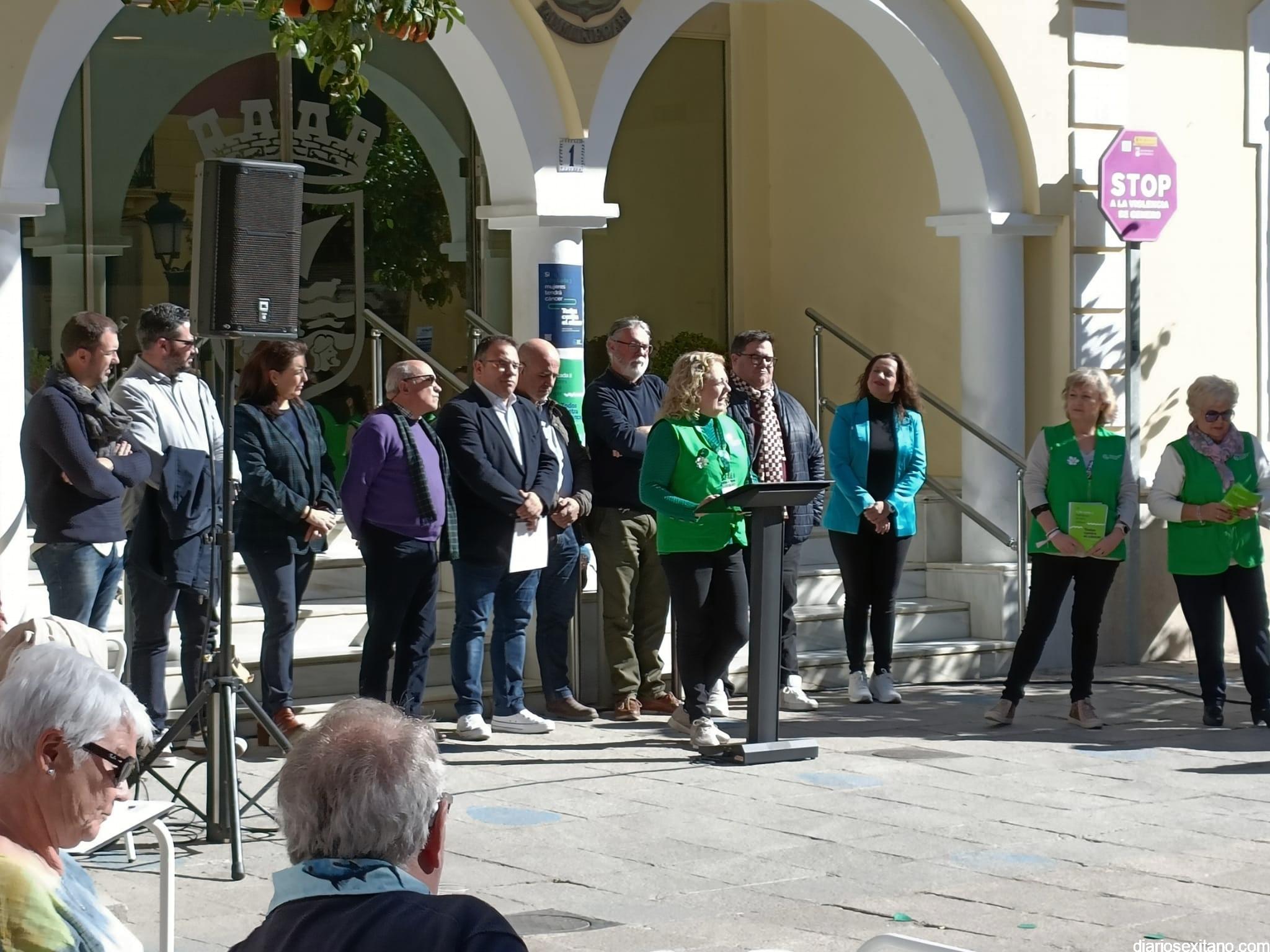 El acto ha contado con la participación de corporativos sexitanos, encabezado por el alcalde, Juan José Ruiz Joya, voluntariado de la Junta Local de AECC con la presidenta al frente Concepción García Fernández y alumnos del IES Puerta del Mar.