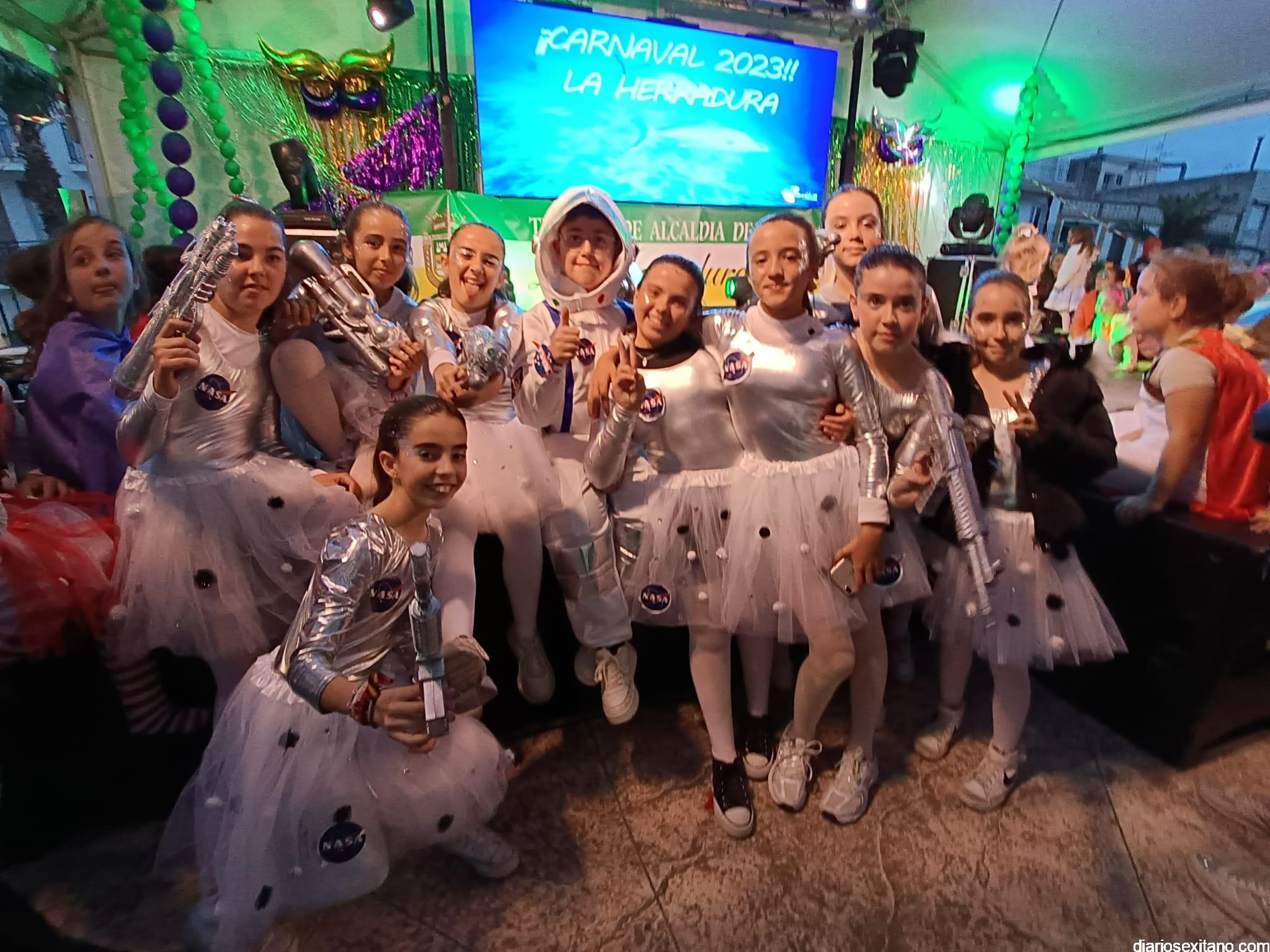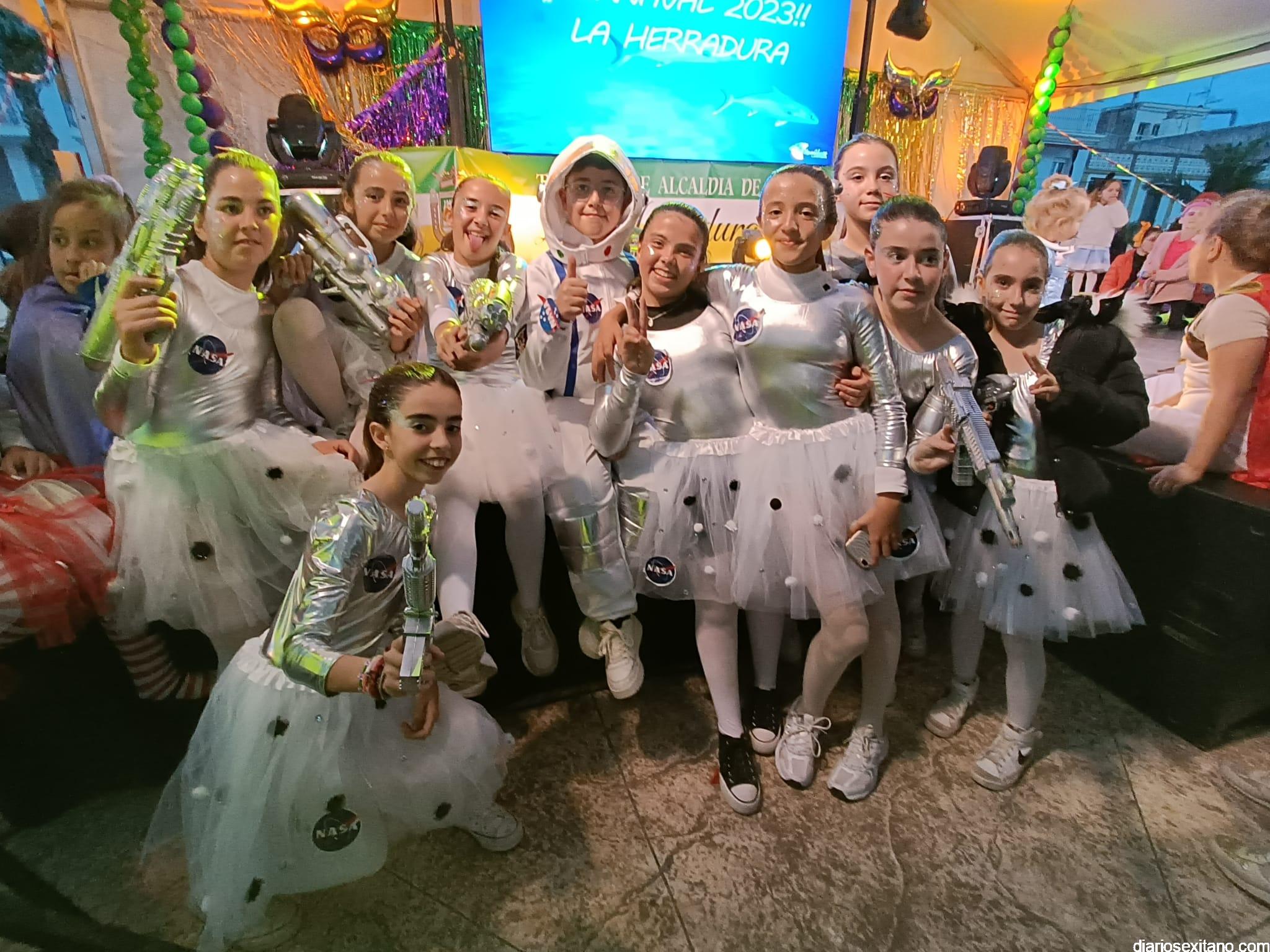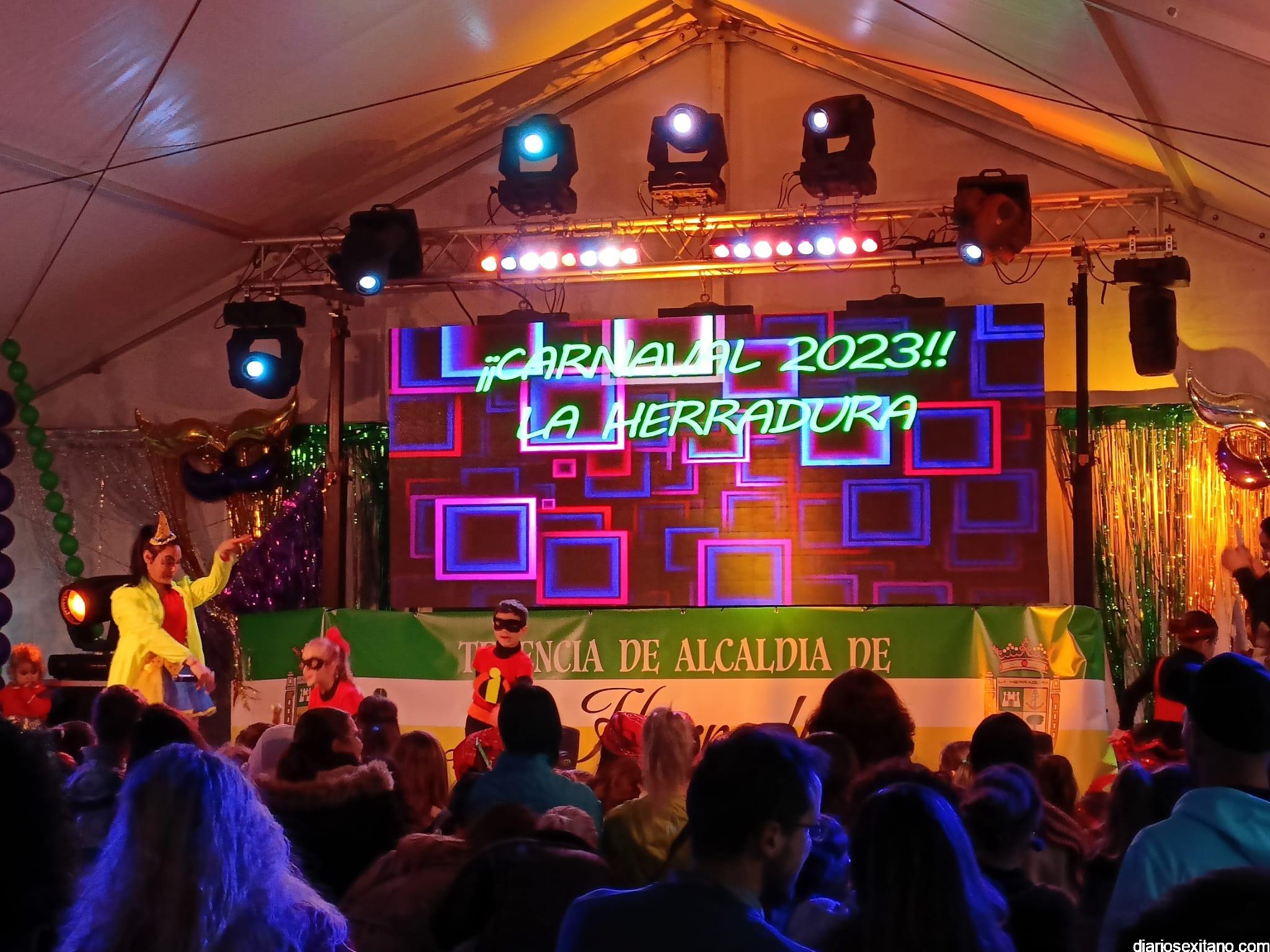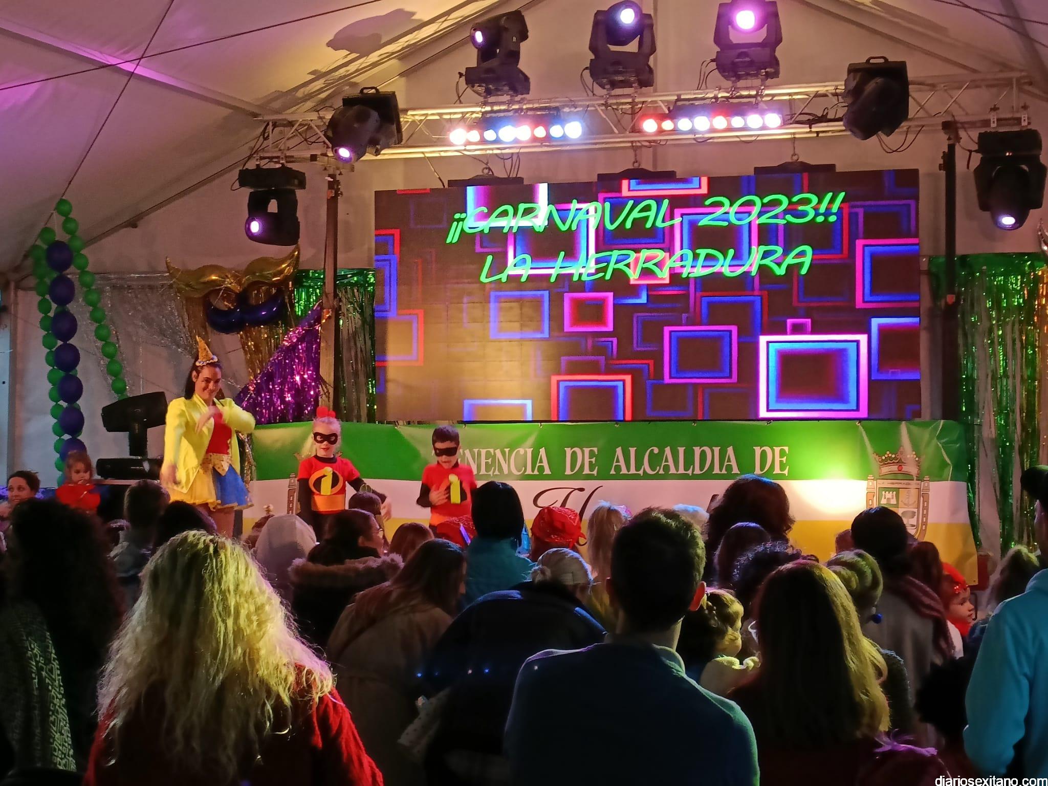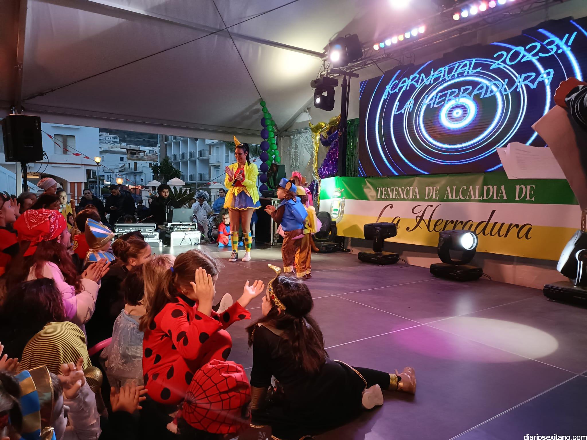 Un bonito pasacalles infantil abrió este viernes el programa del Carnaval de La Herradura 2023, que arrancó en el campo de fútbol “Las Tejas” y finalizó en la carpa del Centro Cívico, donde se concentró la fiesta hasta entrada la noche.