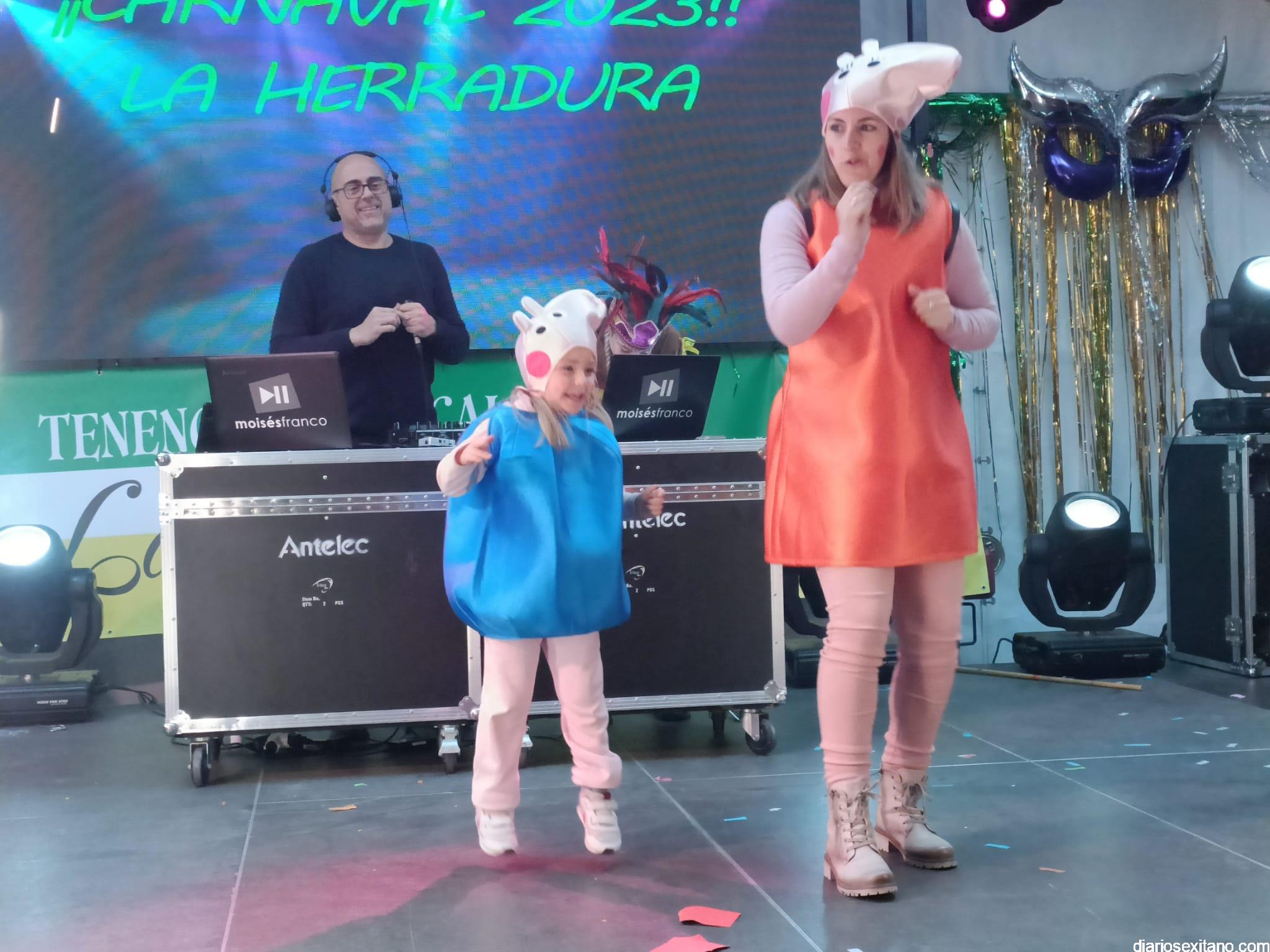 En la carpa instalada en la plaza del Centro Cívico, donde la barra fue atendida por voluntarias de la AECC, se concentraron los participantes en el pasacalles, para disfrutar de la fiesta y proceder a desfilar por el escenario los disfraces inscritos para optar al concurso convocado por la Tenencia de Alcaldía de La Herradura en las distintas categorías.