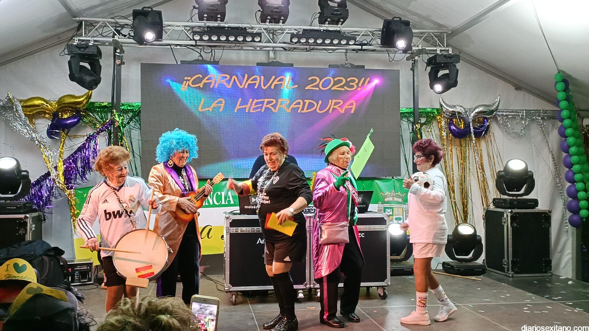 En grupo corto el ganador fue Pavos Reales, y en individual Bandera española.La actuación este domingo de la chirigota gadintana “Los ya son five del caí” puso el broche al carnaval herradureño