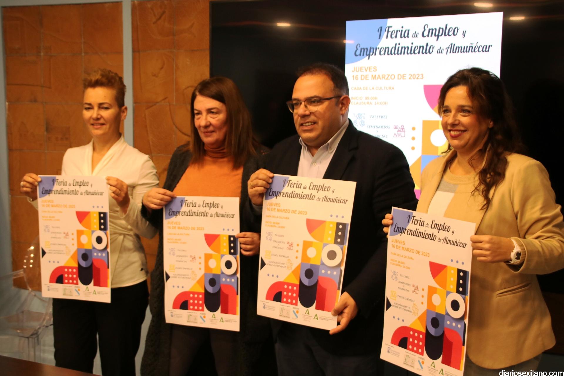 La Casa de la Cultura sexitana acogerá el próximo día 16 de marzo la I Feria de Empleo y Emprendimiento de Almuñécar. Una iniciativa nueva, no solamente en el municipio sexitano sino de toda la comarca de la Costa. En este sentido, el alcalde, Juan José Ruiz Joya, no dudó en calificar la citada fecha, de 16 de marzo, de 9 a 14 horas, “en un día histórico para nuestro municipio, porque por primera vez los hombres y mujeres de Almuñécar y La Herradura tiene la de conocer o plantear algún emprendimiento o una guía para poder encontrar un empleo”, según manifestó el regidor sexitano en la presentación del evento.