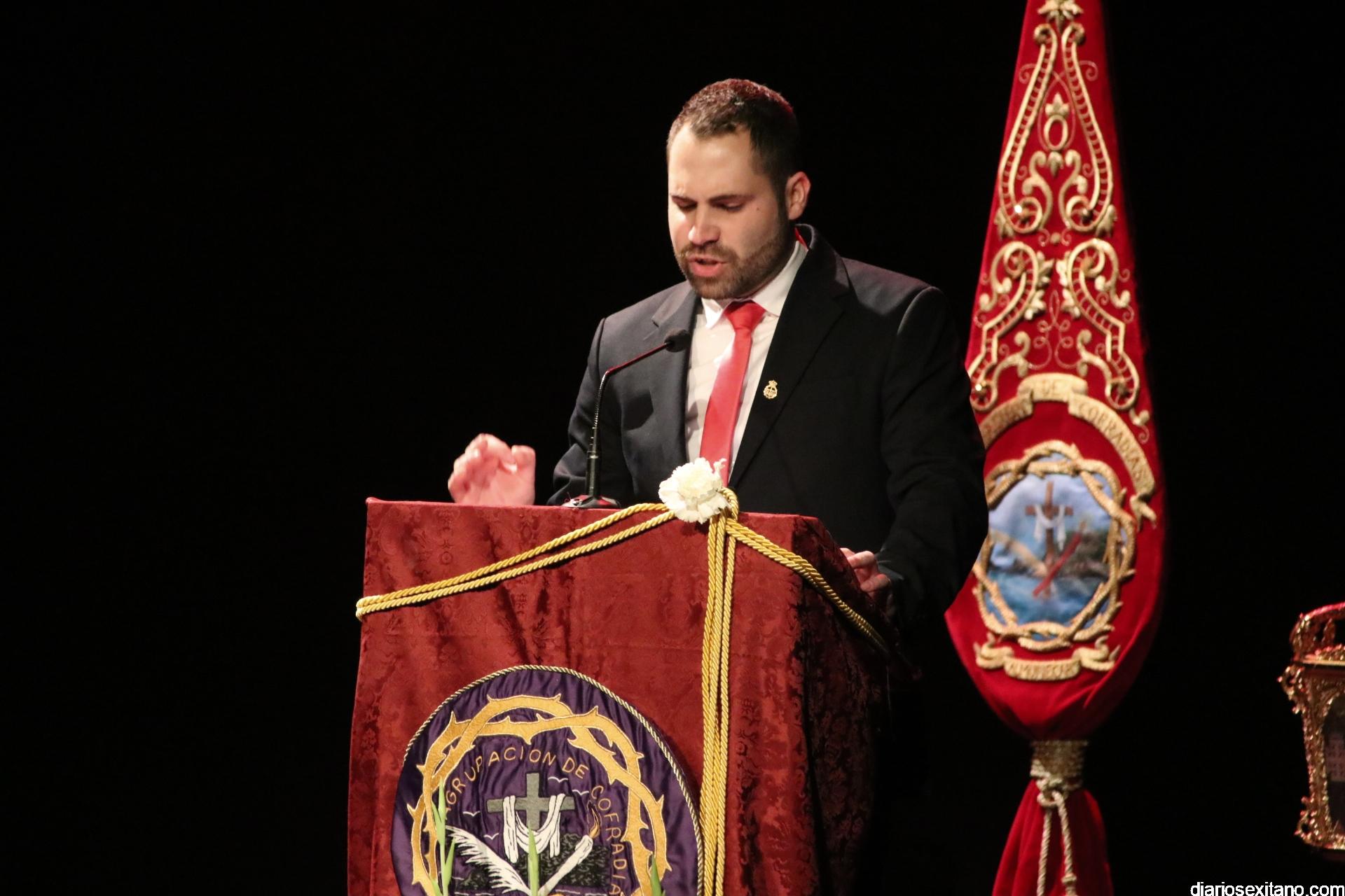 Aragón Ruiz, que fue presentado por Domingo del Castillo Matías, director musical de la Agrupación de Nuestra Señora de la Encarnación, músico y compositor cofrade, después de narrar un momento inicial de cualquier paso al inicio de la estación de penitencia y, por supuesto, tener palabras de gratitud para su presentador y su admirado amigo, Domingo del Castillo, hizo un recorrido de la Semana de Pasión sexitana al completo subrayando momentos y lugares únicos por las cofradías. Para señalar el movimiento cofrade que se vive los 365 días del año, poniendo varios ejemplos de ese día a día.