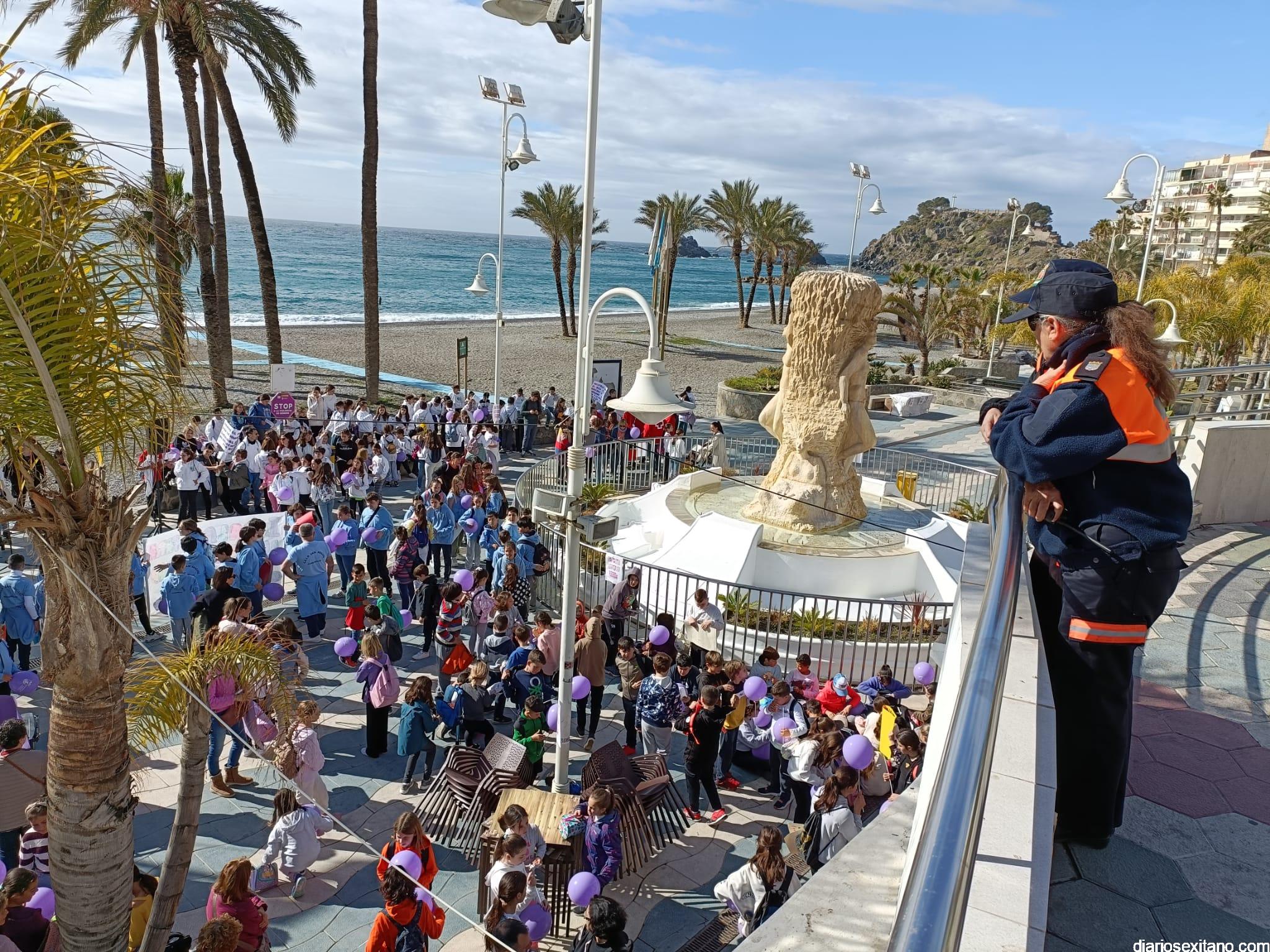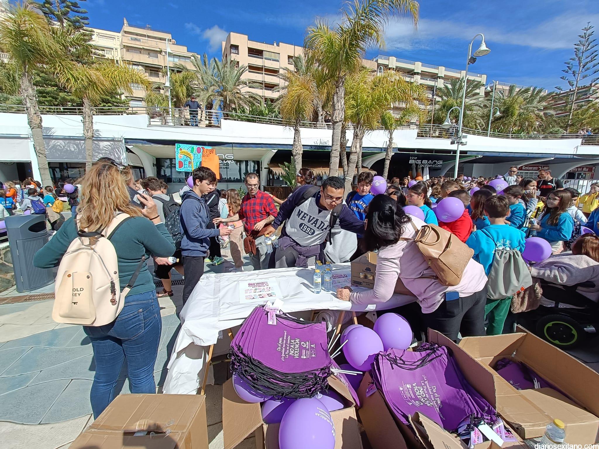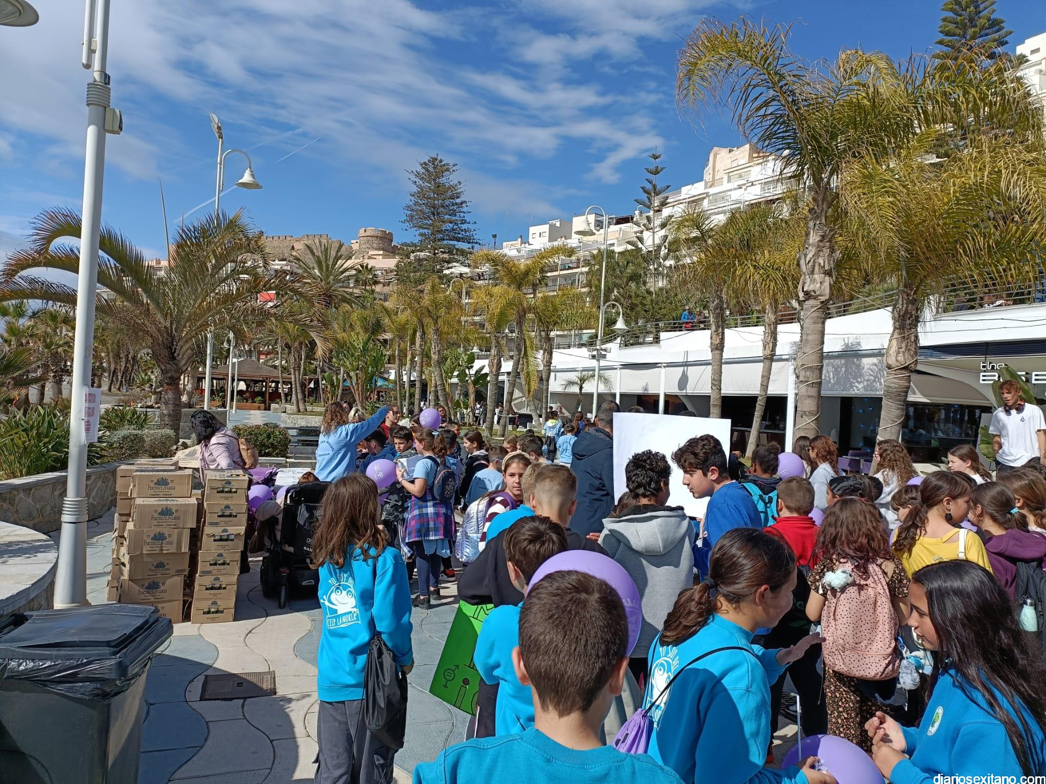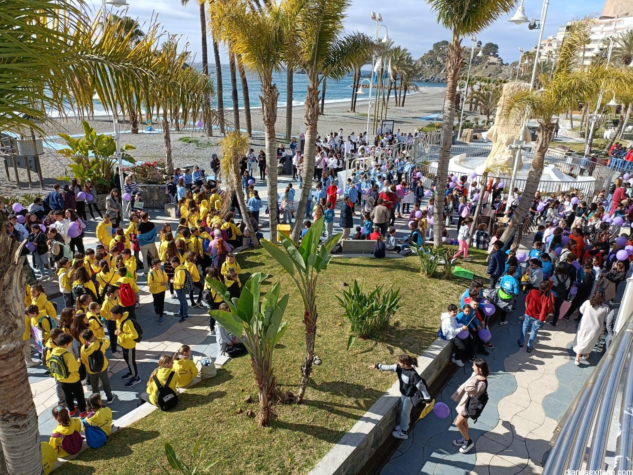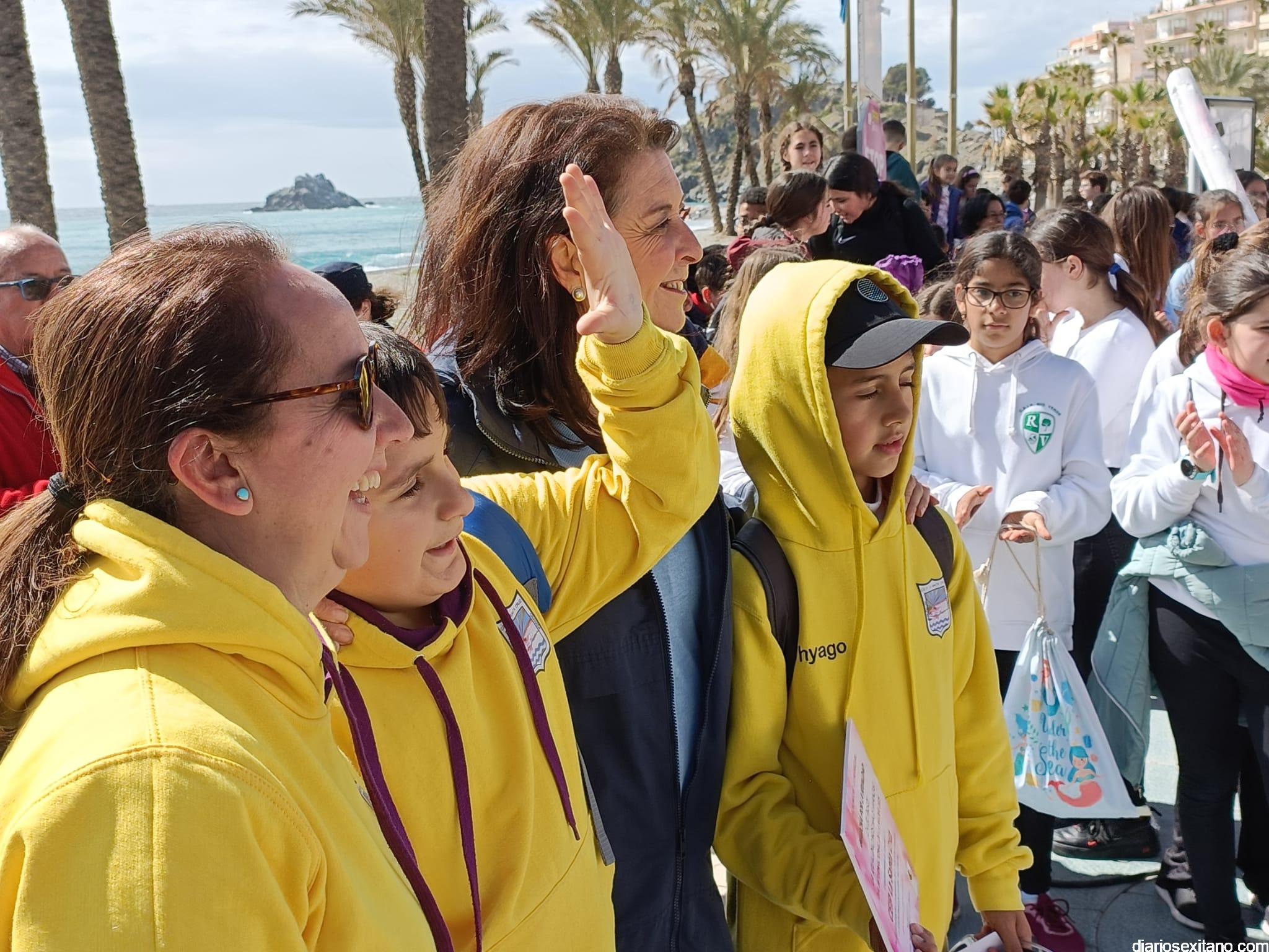 La marcha, que tuvo la salida y meta en la fuente del Paseo del Altillo y recorrió el Paseo Prieto Moreno (Caletilla) y Paseo San Cristóbal hasta Chinasol, ha contado con la participación de una decena de centros educativos de Primaria y Secundaria del municipio sexitano, Centro “Mare Nostrum”, y el apoyo de Policía Local Protección Civil y Cruz Roja, comenzó con unas palabras del alcalde, Juan José Ruiz Joya, en la que tras agradecer la participación de alumnos y profesores, al tiempo que también destacaba “el compromiso con esta iniciativa y educar y concienciar a nuestros hijos para que el día de mañana vivamos en una sociedad más justa y más igualitaria.