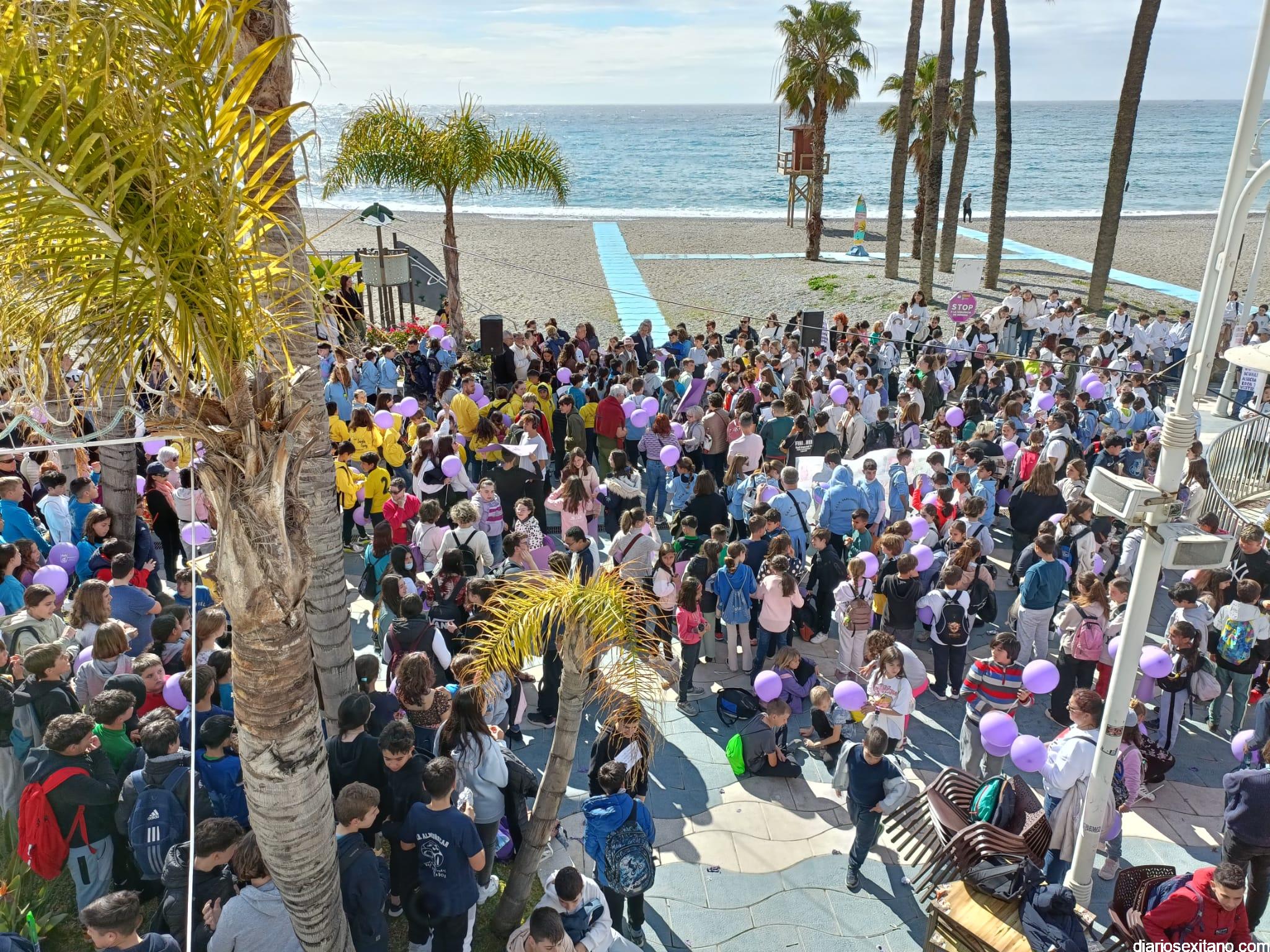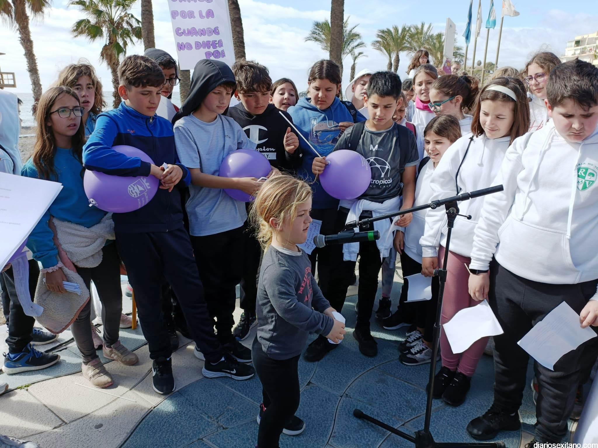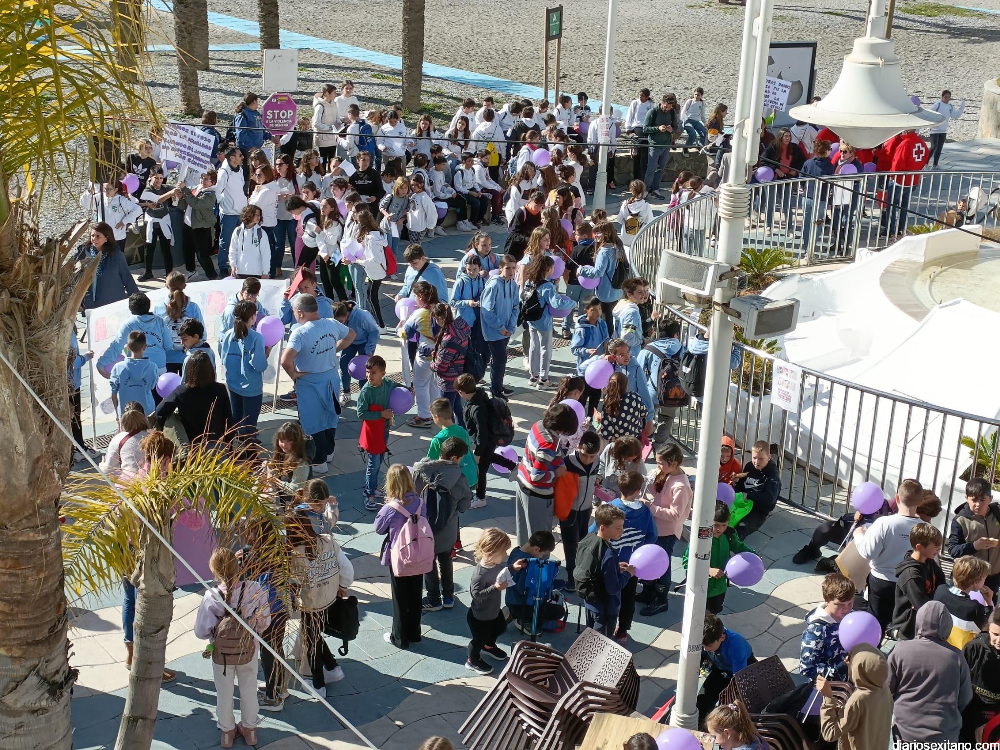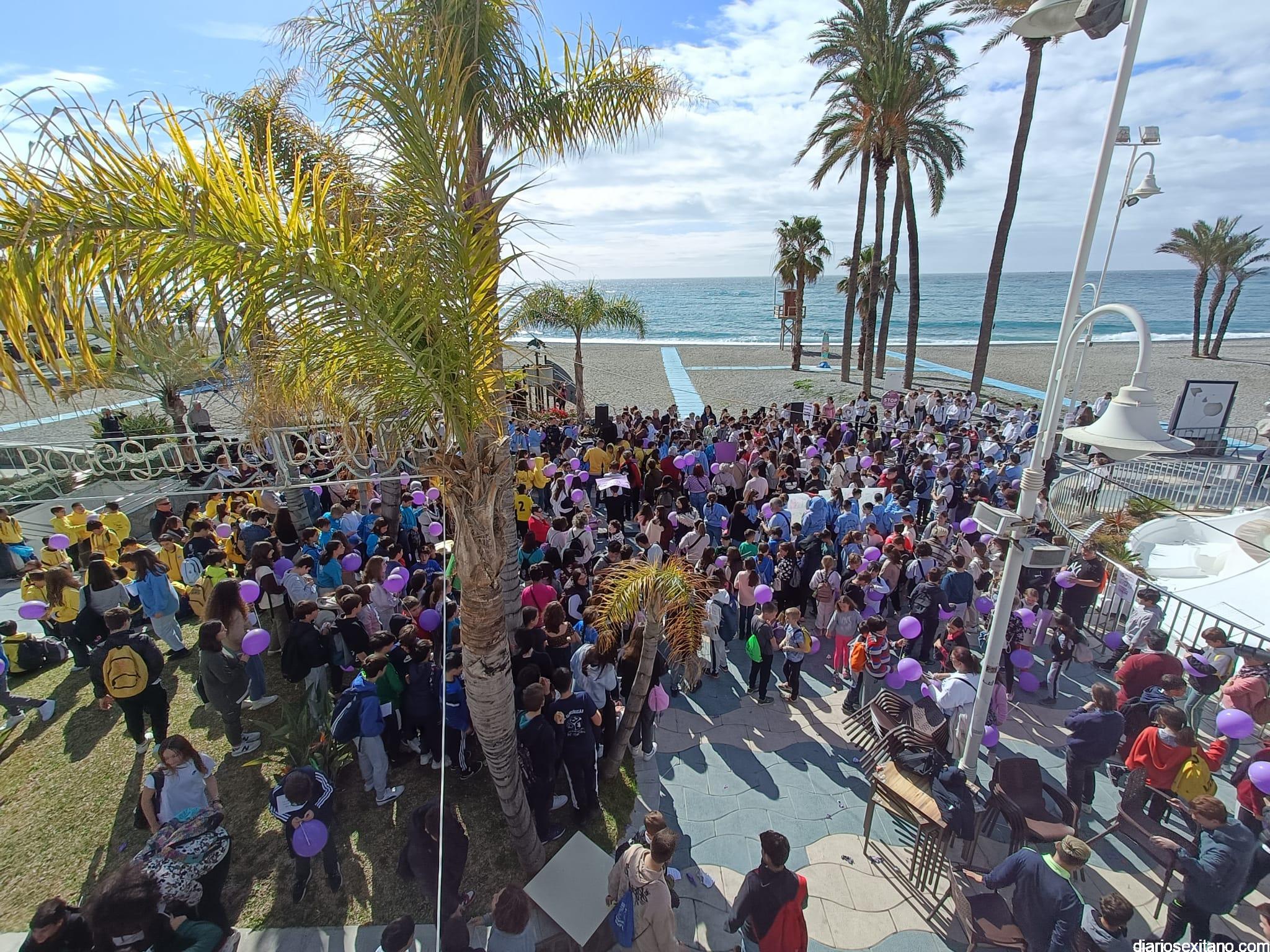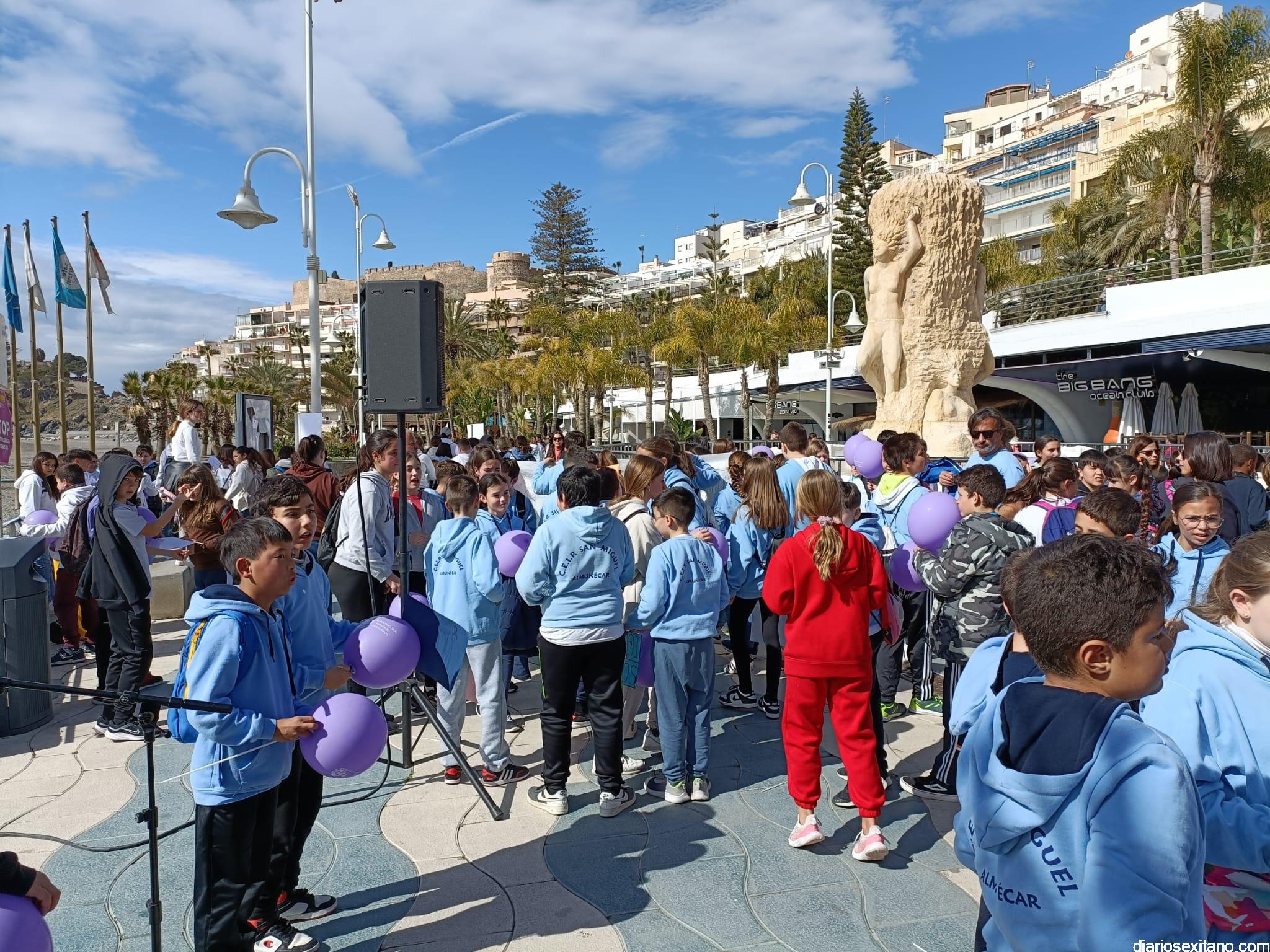 La marcha, que tuvo la salida y meta en la fuente del Paseo del Altillo y recorrió el Paseo Prieto Moreno (Caletilla) y Paseo San Cristóbal hasta Chinasol, ha contado con la participación de una decena de centros educativos de Primaria y Secundaria del municipio sexitano, Centro “Mare Nostrum”, y el apoyo de Policía Local Protección Civil y Cruz Roja, comenzó con unas palabras del alcalde, Juan José Ruiz Joya, en la que tras agradecer la participación de alumnos y profesores, al tiempo que también destacaba “el compromiso con esta iniciativa y educar y concienciar a nuestros hijos para que el día de mañana vivamos en una sociedad más justa y más igualitaria.
