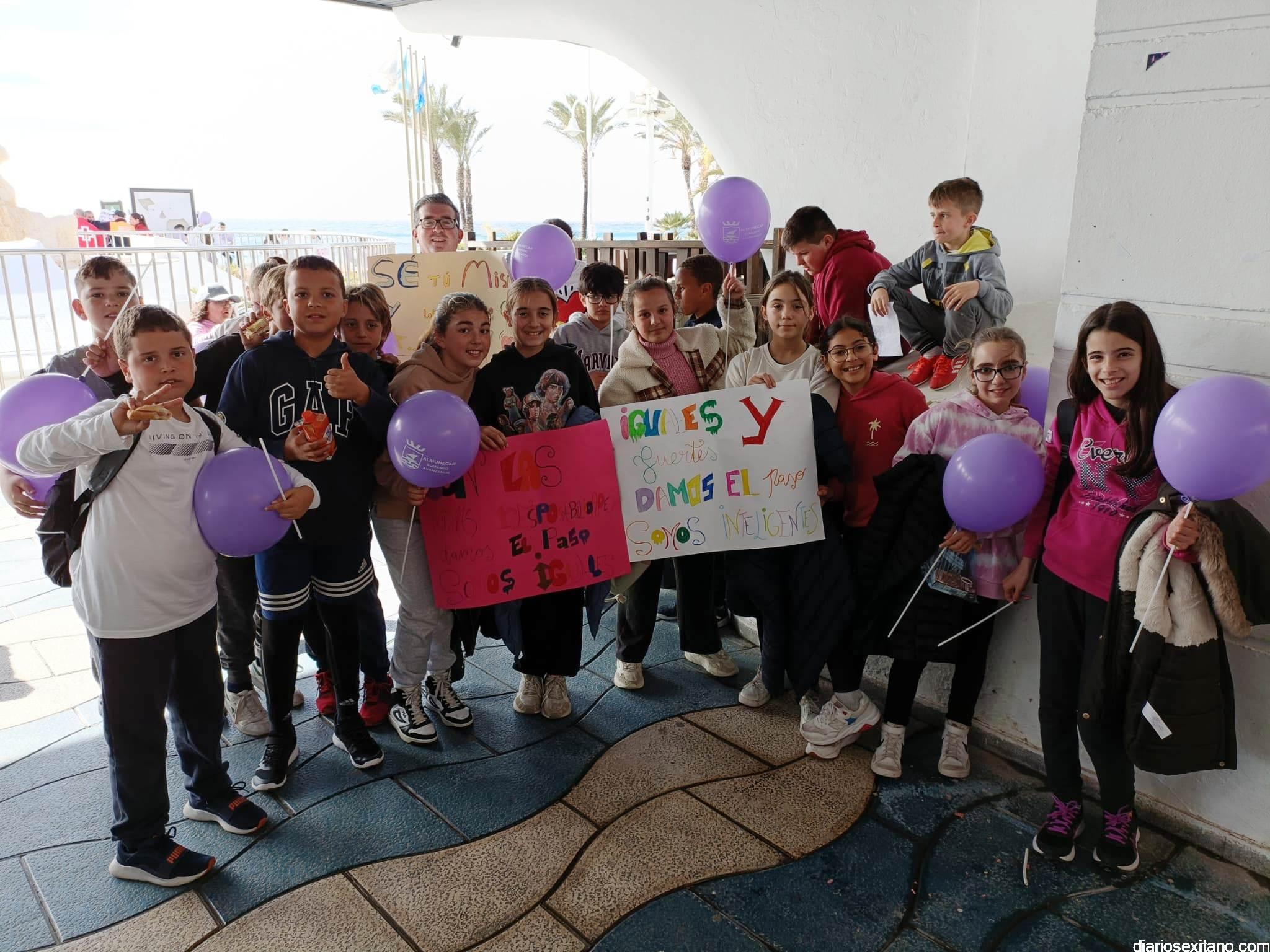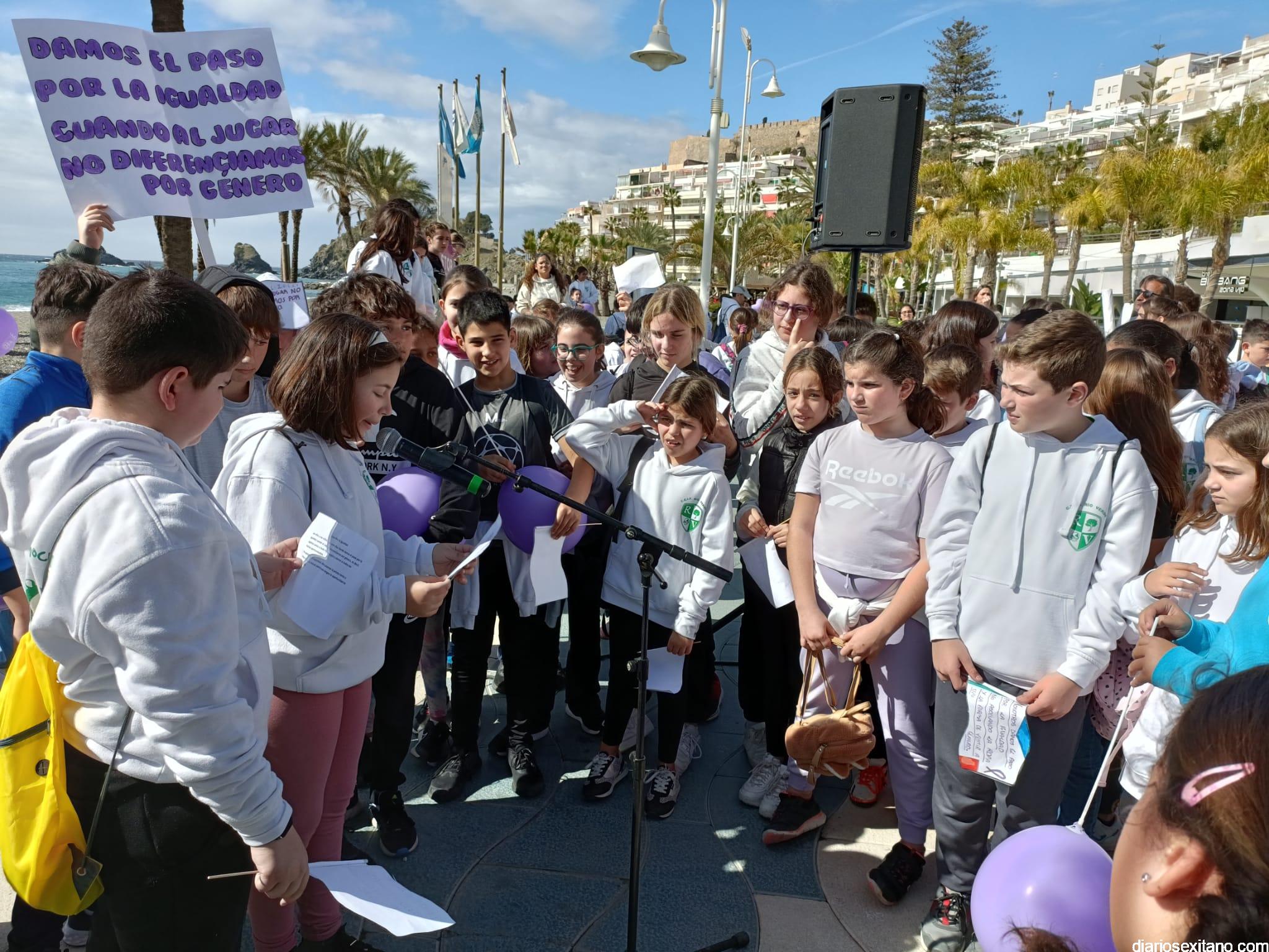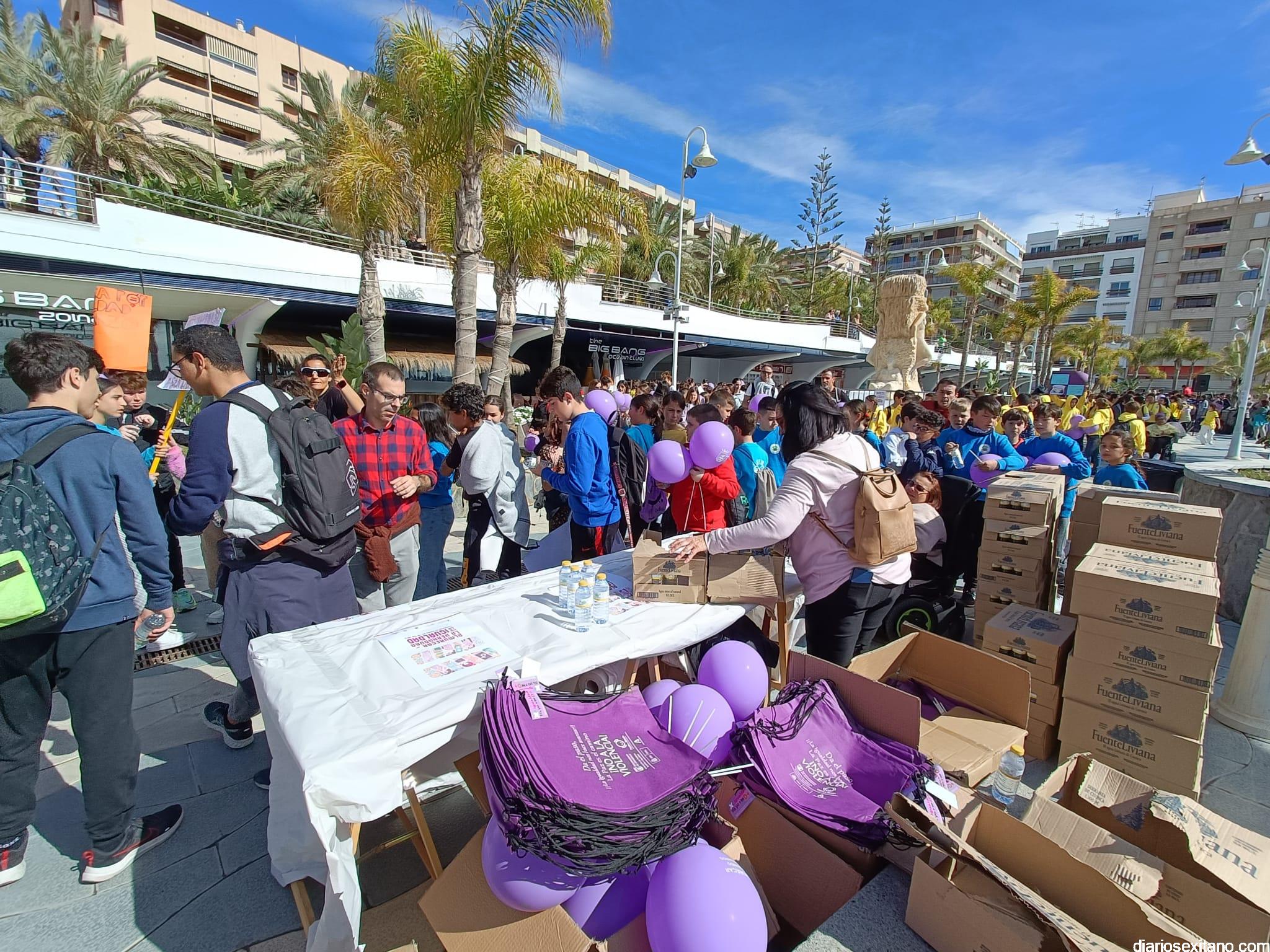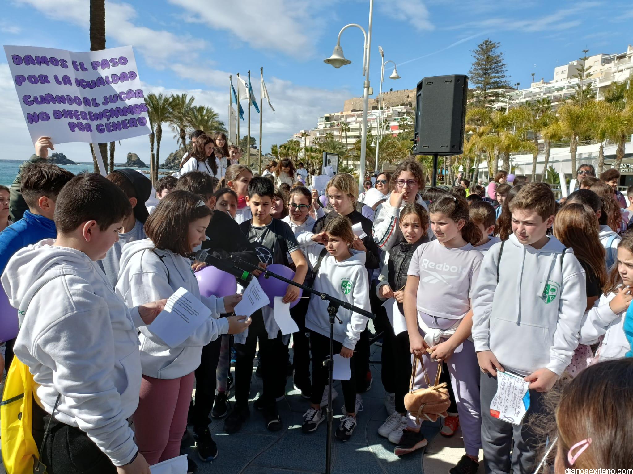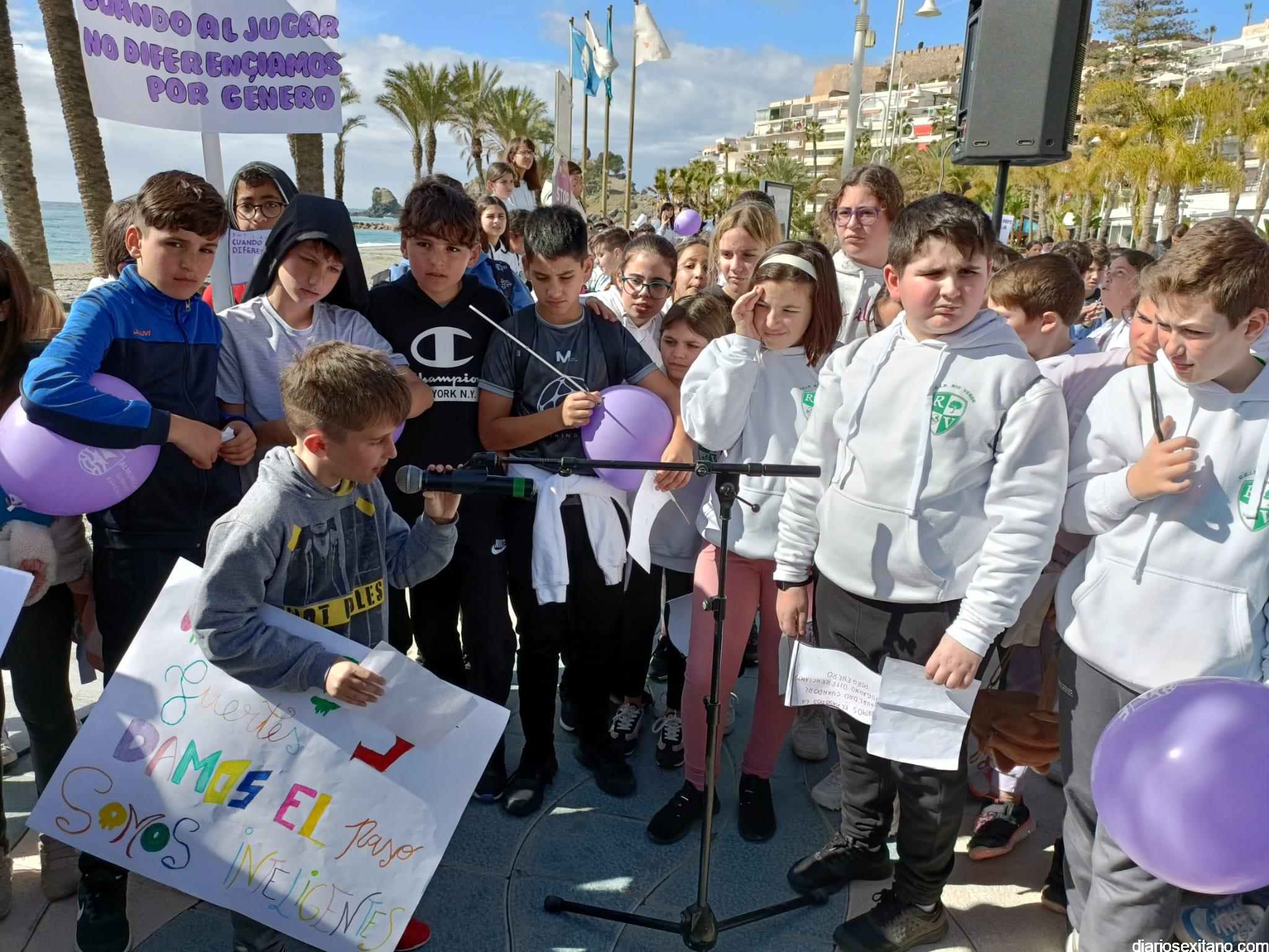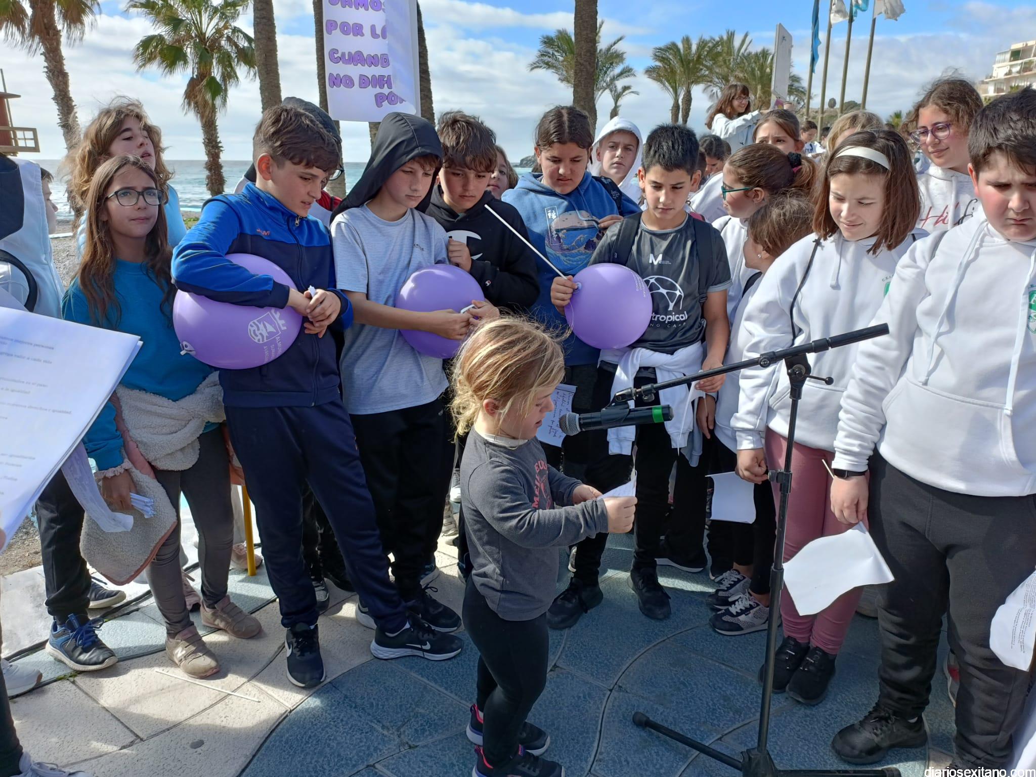 La marcha, que tuvo la salida y meta en la fuente del Paseo del Altillo y recorrió el Paseo Prieto Moreno (Caletilla) y Paseo San Cristóbal hasta Chinasol, ha contado con la participación de una decena de centros educativos de Primaria y Secundaria del municipio sexitano, Centro “Mare Nostrum”, y el apoyo de Policía Local Protección Civil y Cruz Roja, comenzó con unas palabras del alcalde, Juan José Ruiz Joya, en la que tras agradecer la participación de alumnos y profesores, al tiempo que también destacaba “el compromiso con esta iniciativa y educar y concienciar a nuestros hijos para que el día de mañana vivamos en una sociedad más justa y más igualitaria.