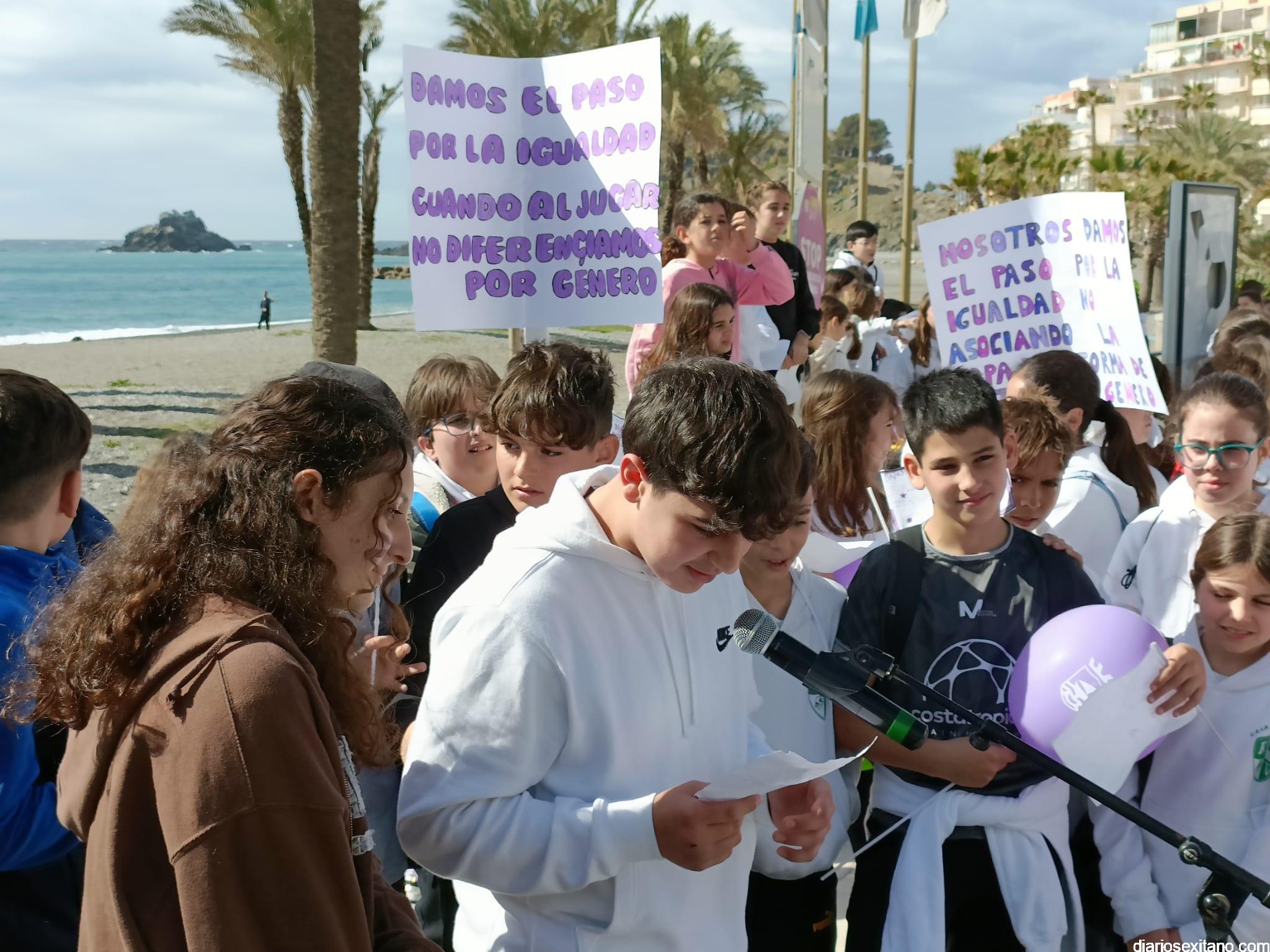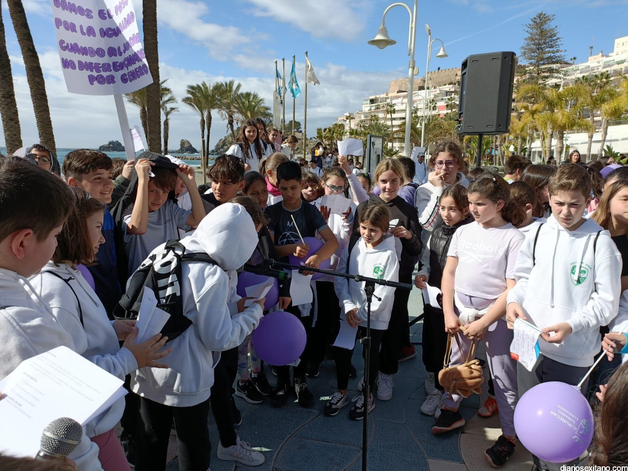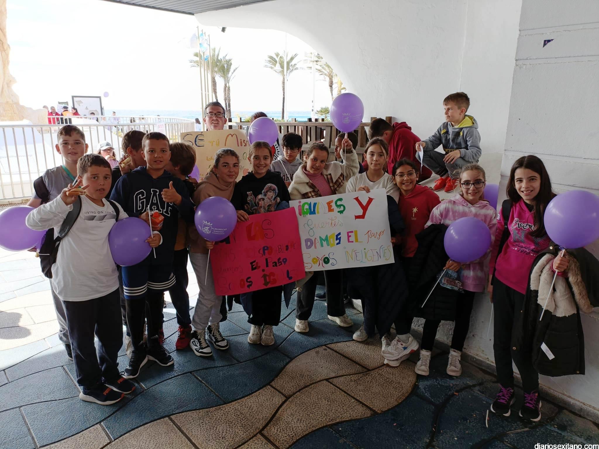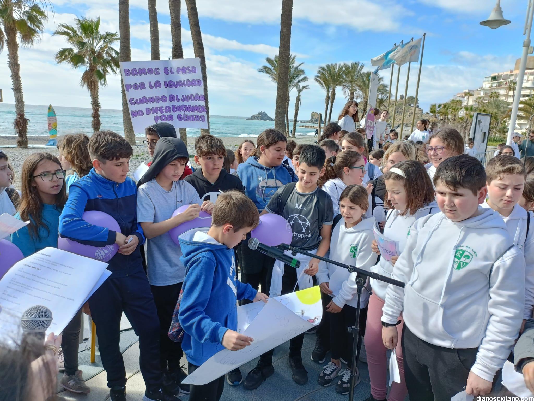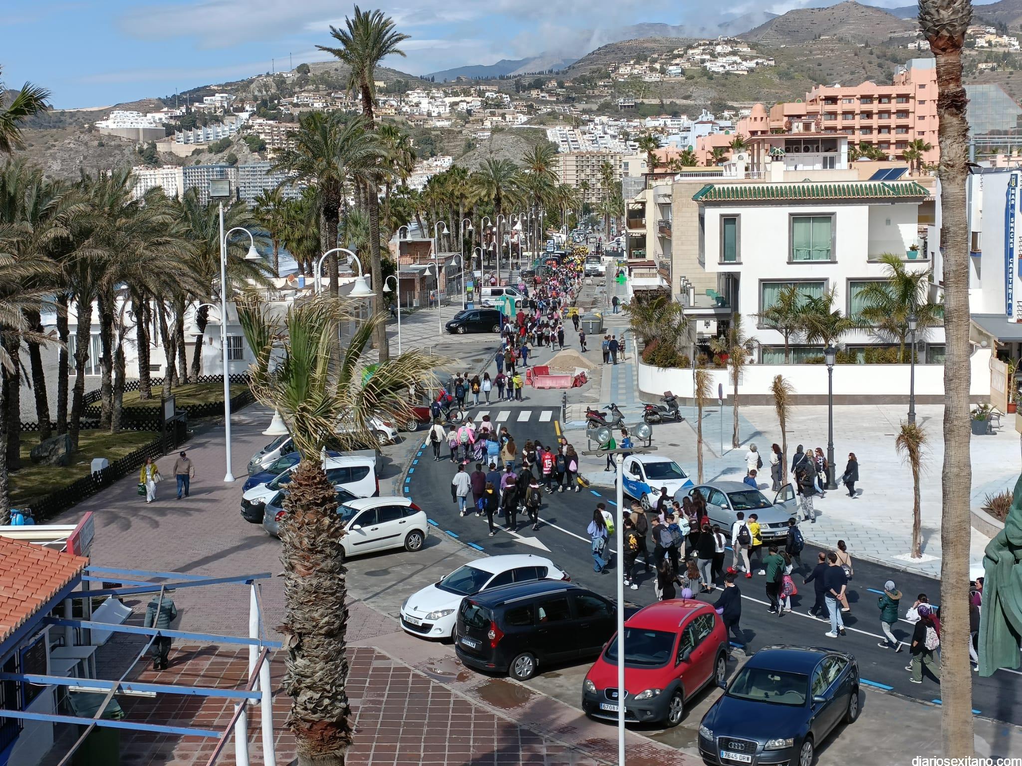 La marcha, que tuvo la salida y meta en la fuente del Paseo del Altillo y recorrió el Paseo Prieto Moreno (Caletilla) y Paseo San Cristóbal hasta Chinasol, ha contado con la participación de una decena de centros educativos de Primaria y Secundaria del municipio sexitano, Centro “Mare Nostrum”, y el apoyo de Policía Local Protección Civil y Cruz Roja, comenzó con unas palabras del alcalde, Juan José Ruiz Joya, en la que tras agradecer la participación de alumnos y profesores, al tiempo que también destacaba “el compromiso con esta iniciativa y educar y concienciar a nuestros hijos para que el día de mañana vivamos en una sociedad más justa y más igualitaria.