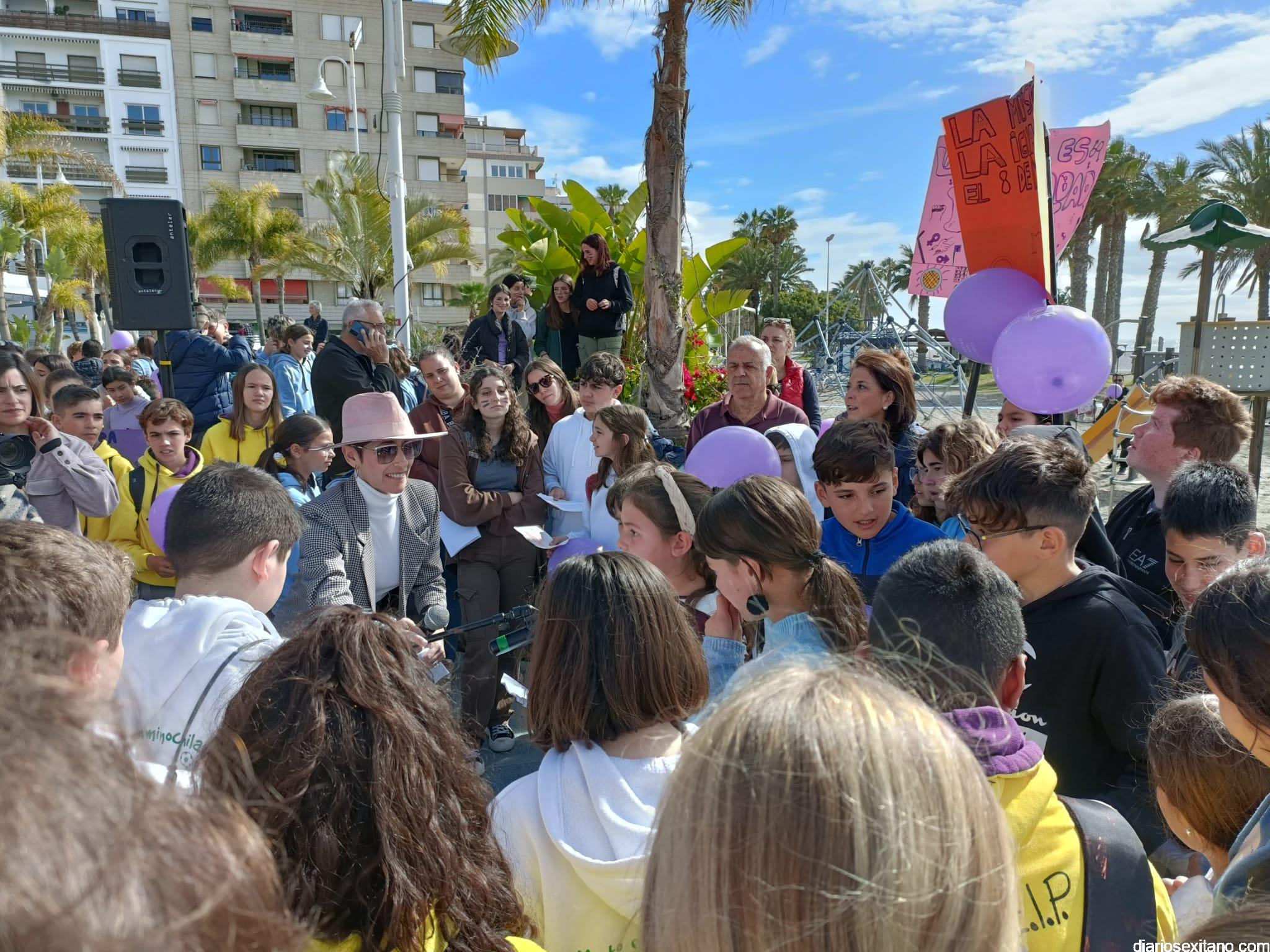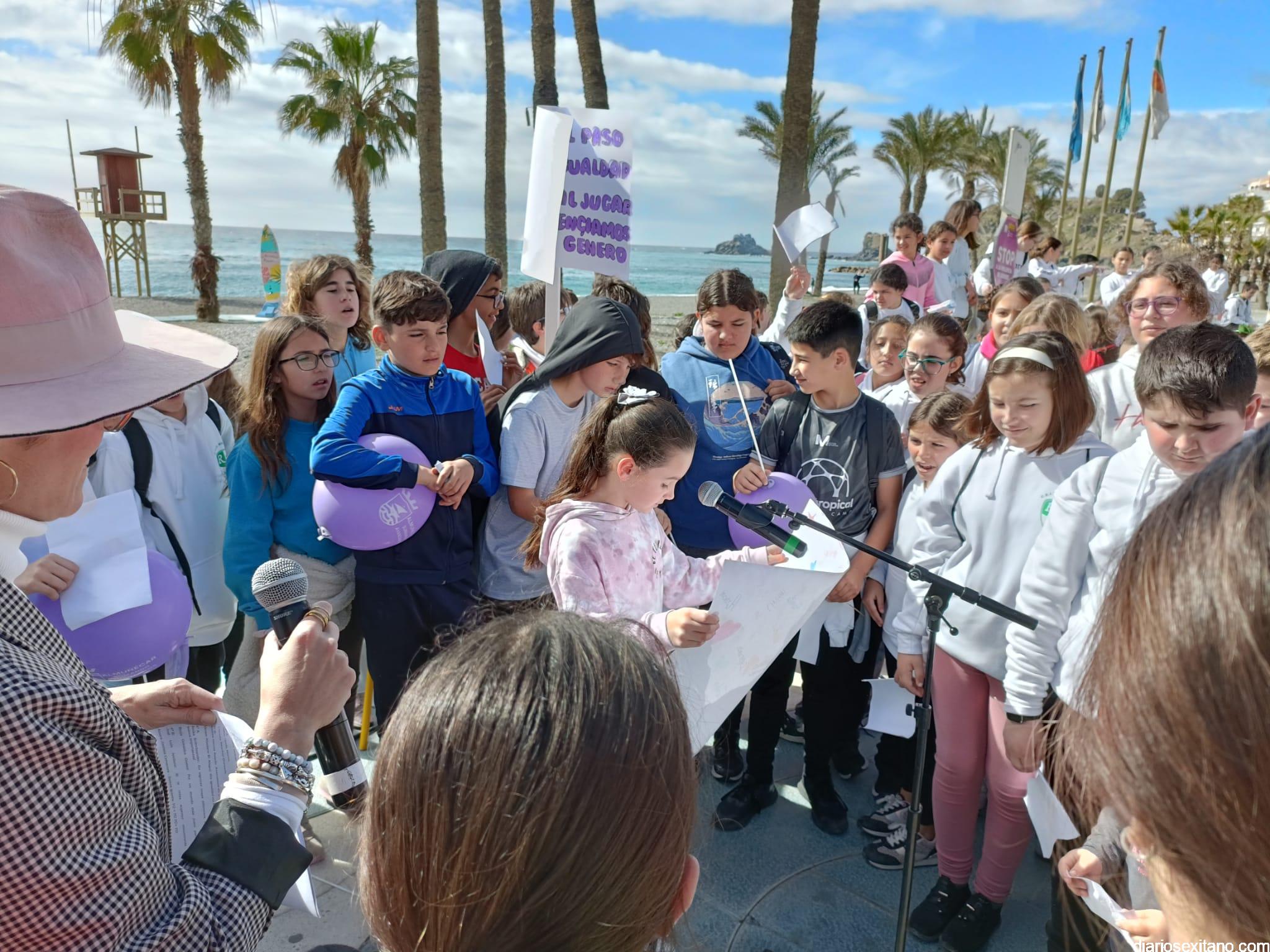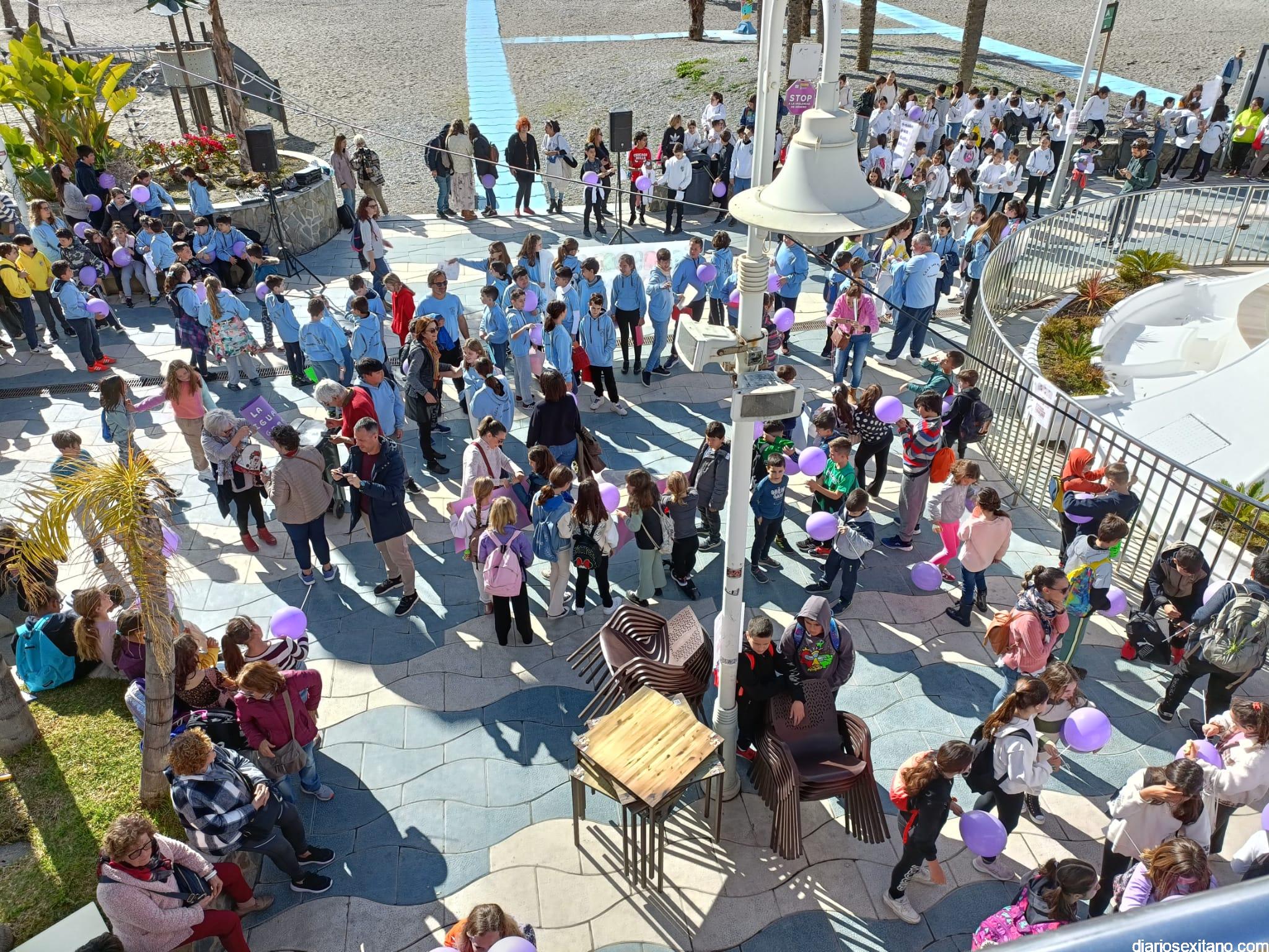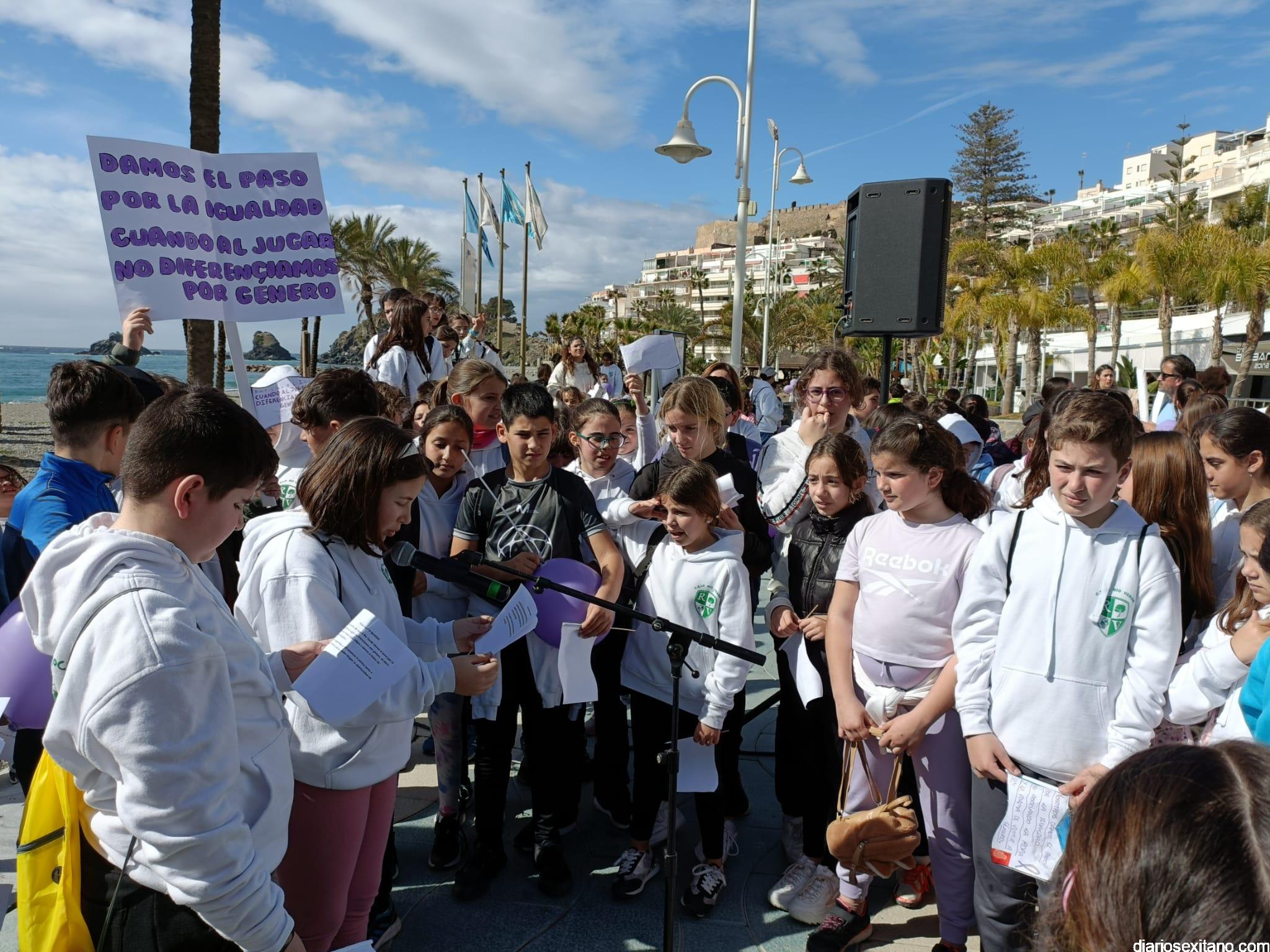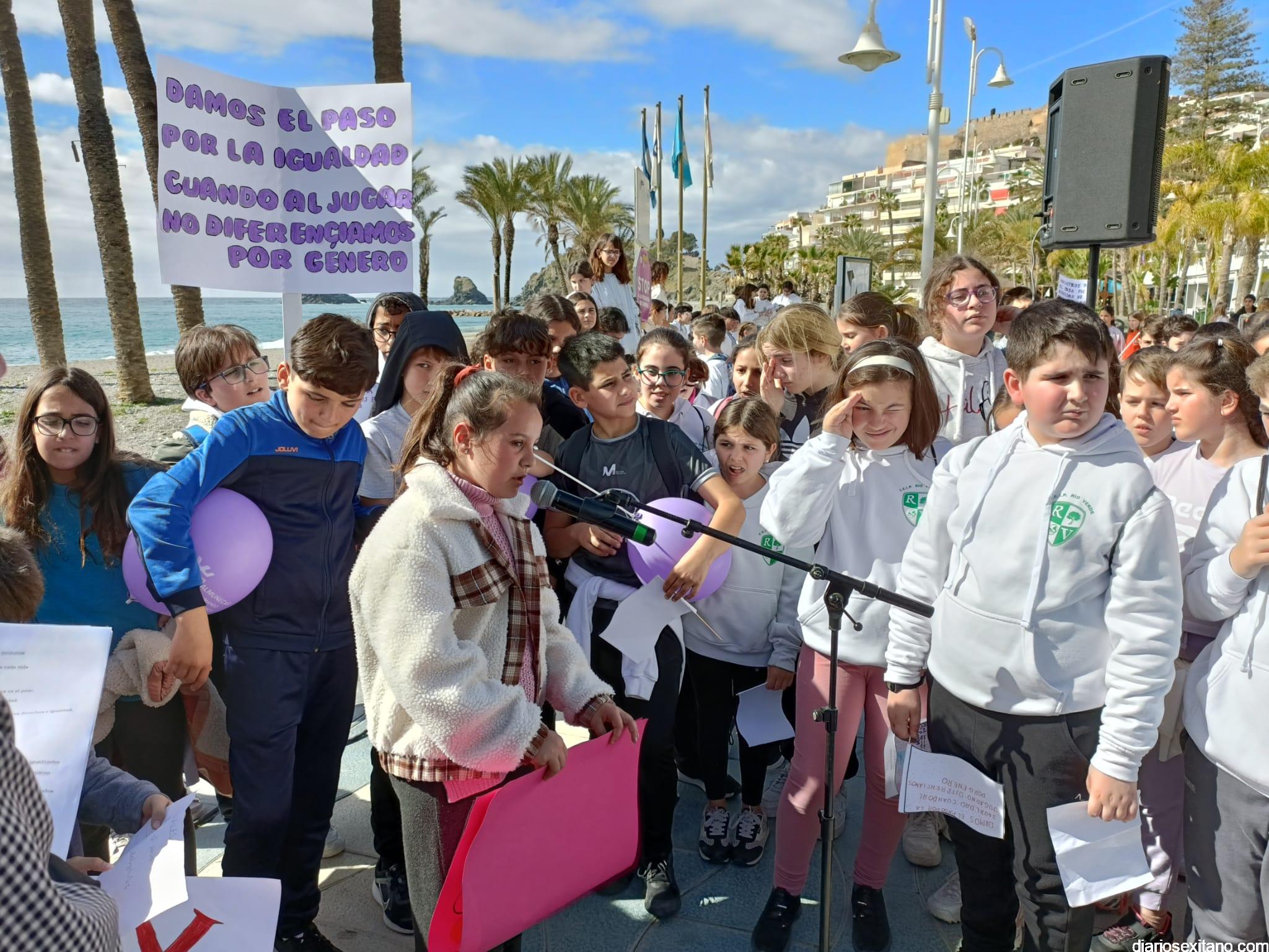 La marcha, que tuvo la salida y meta en la fuente del Paseo del Altillo y recorrió el Paseo Prieto Moreno (Caletilla) y Paseo San Cristóbal hasta Chinasol, ha contado con la participación de una decena de centros educativos de Primaria y Secundaria del municipio sexitano, Centro “Mare Nostrum”, y el apoyo de Policía Local Protección Civil y Cruz Roja, comenzó con unas palabras del alcalde, Juan José Ruiz Joya, en la que tras agradecer la participación de alumnos y profesores, al tiempo que también destacaba “el compromiso con esta iniciativa y educar y concienciar a nuestros hijos para que el día de mañana vivamos en una sociedad más justa y más igualitaria.