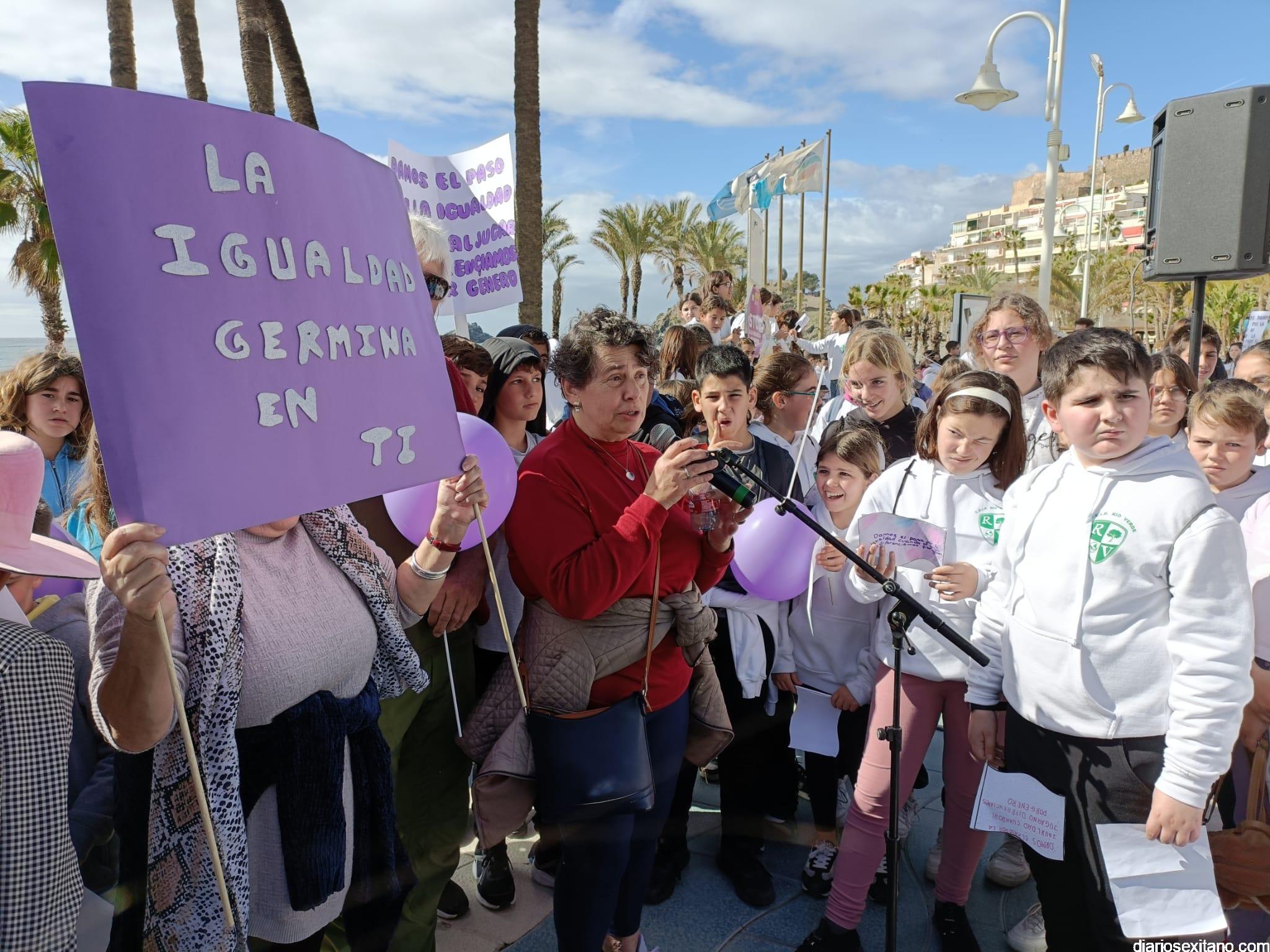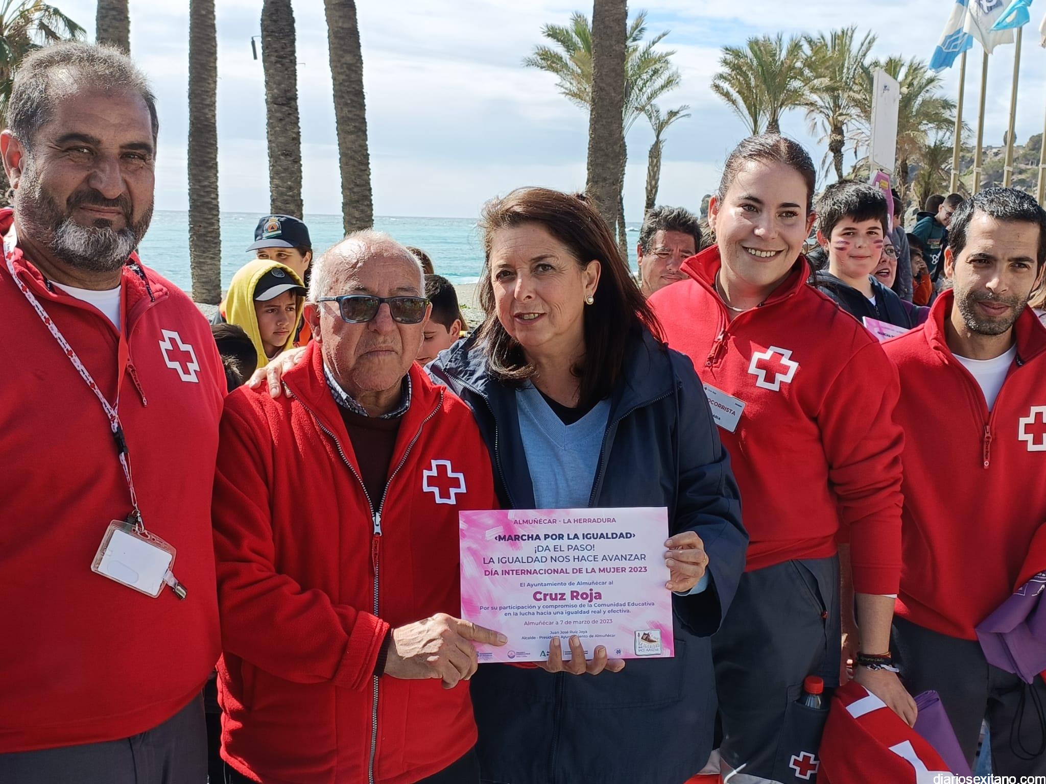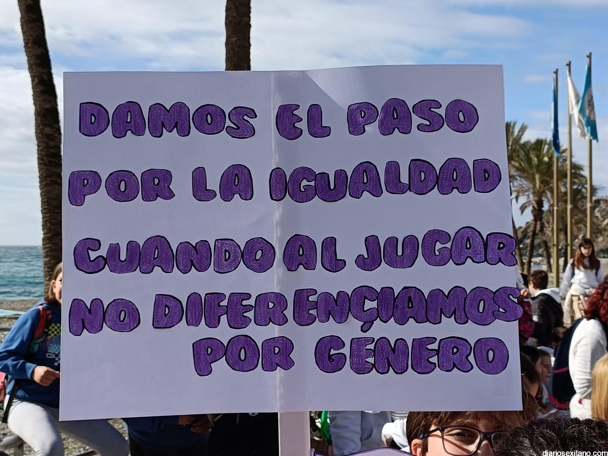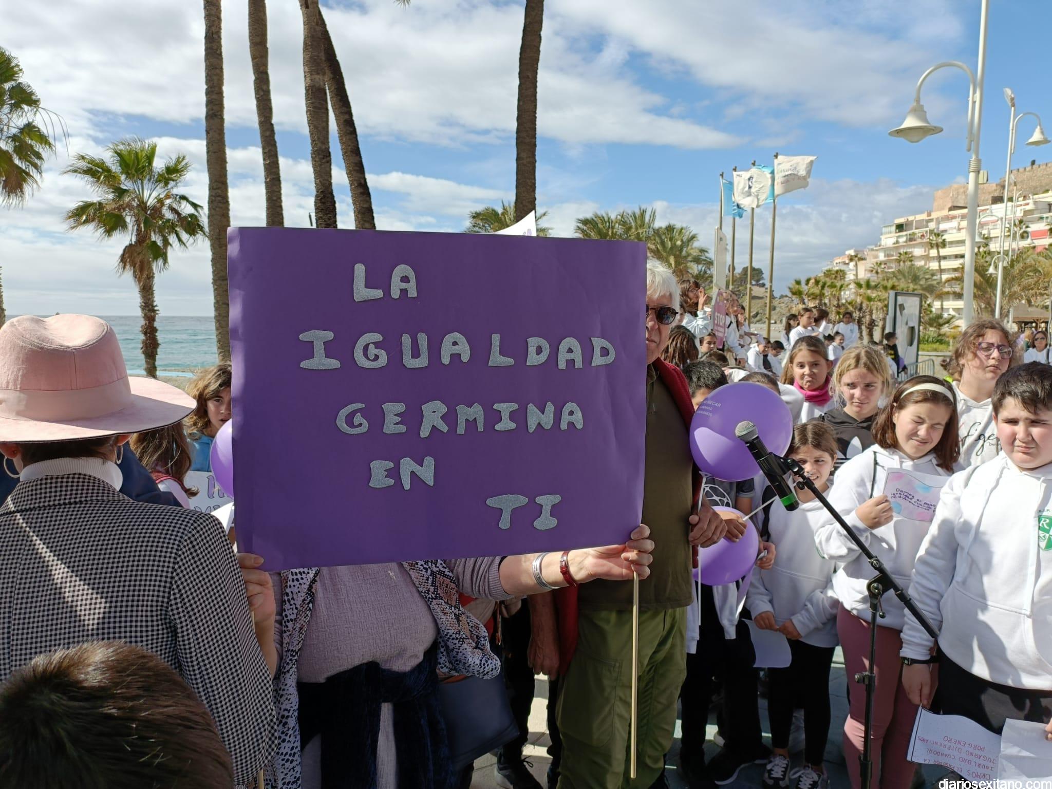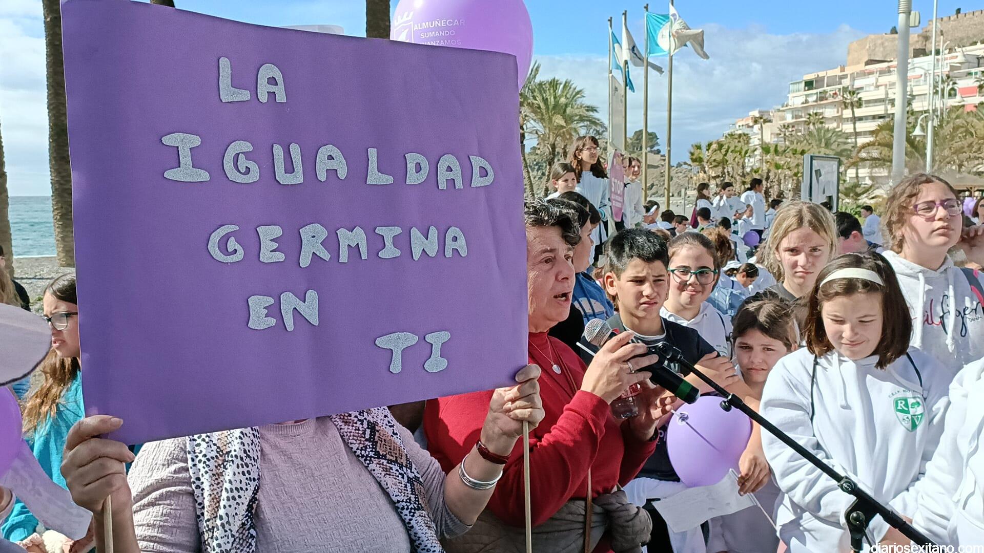 Con la entrega de diplomas a los centros educativos, Policía Local, Protección Civil y Cruz Roja ha concluido la “Marcha por la Igualdad” celebrada en Almuñécar y en la que han participado casi un millar de personas entre estudiantes y profesores. El acto, celebrado este martes bajo la organización del Centro Municipal de la Mujer, dependiente de la Concejalía de Bienestar Sociales e Igualdad del Ayuntamiento Almuñécar, se celebró con motivo del Día Internacional de la Mujer en el municipio sexitano bajo el lema “Almuñécar, sumando avanzamos”.