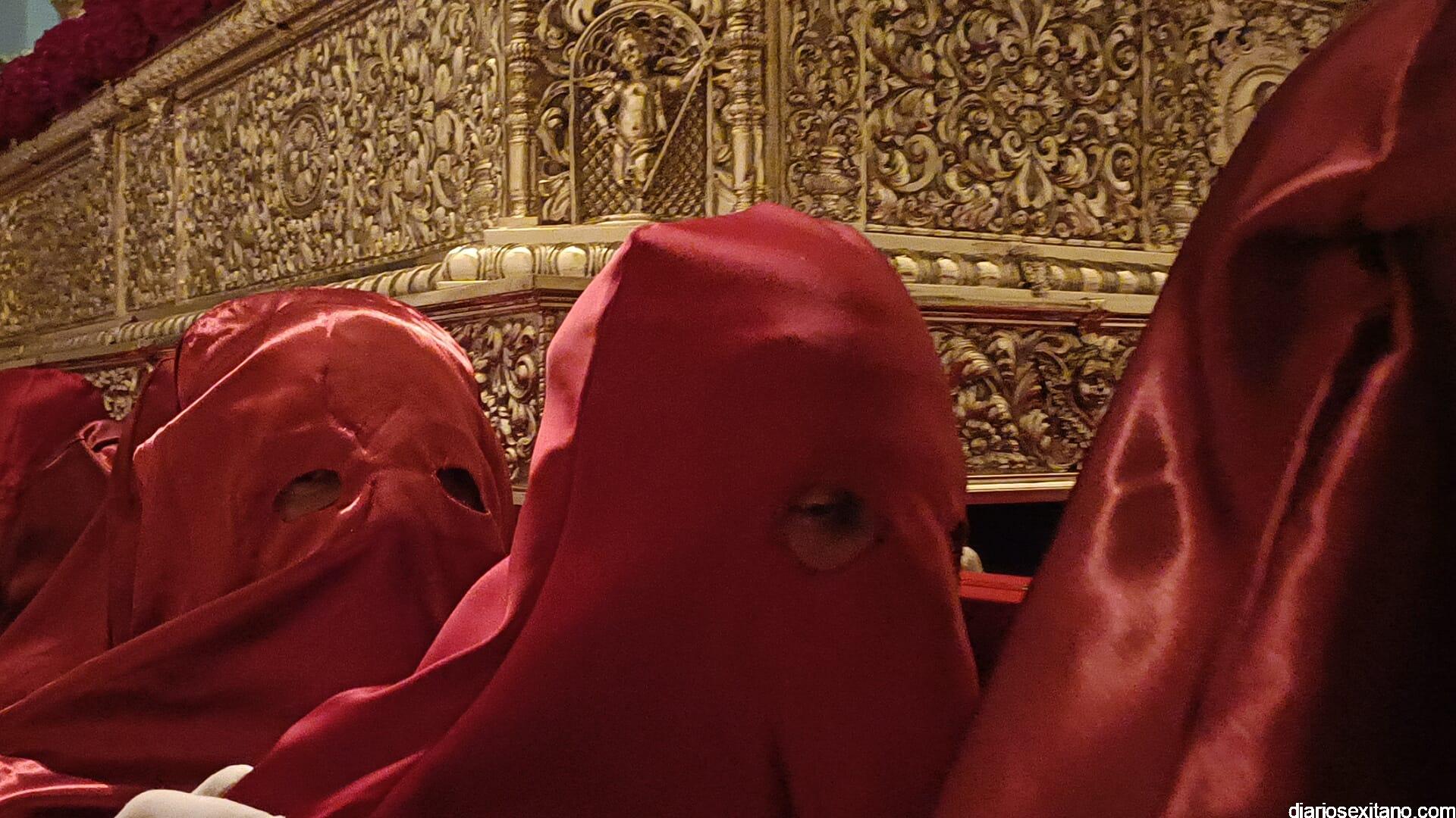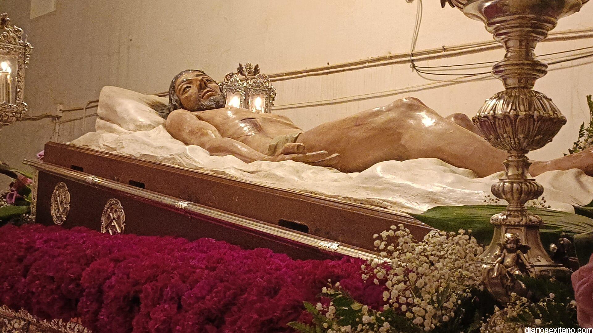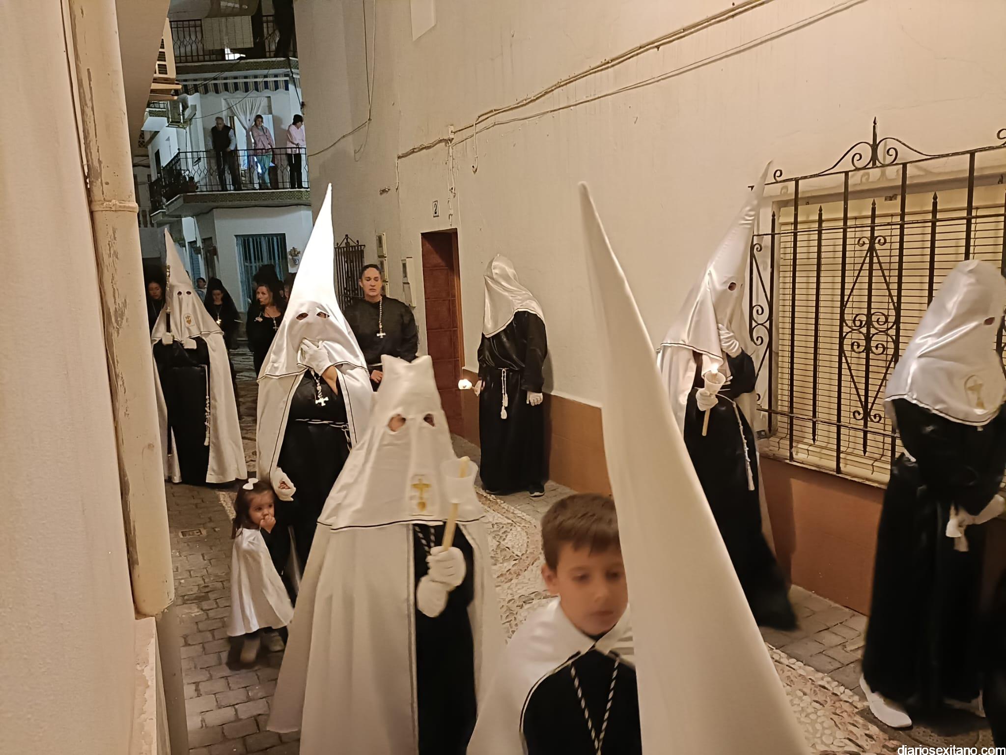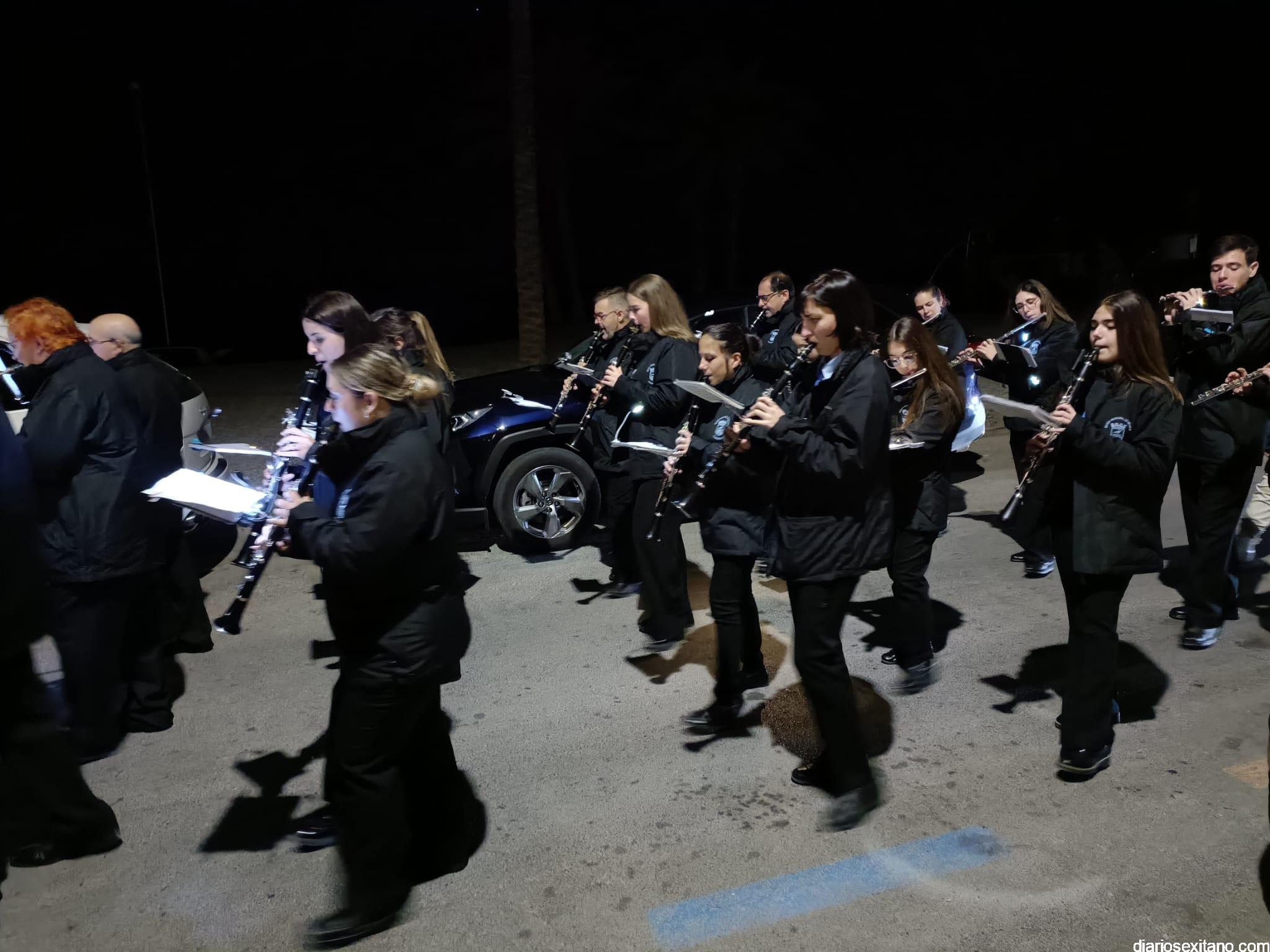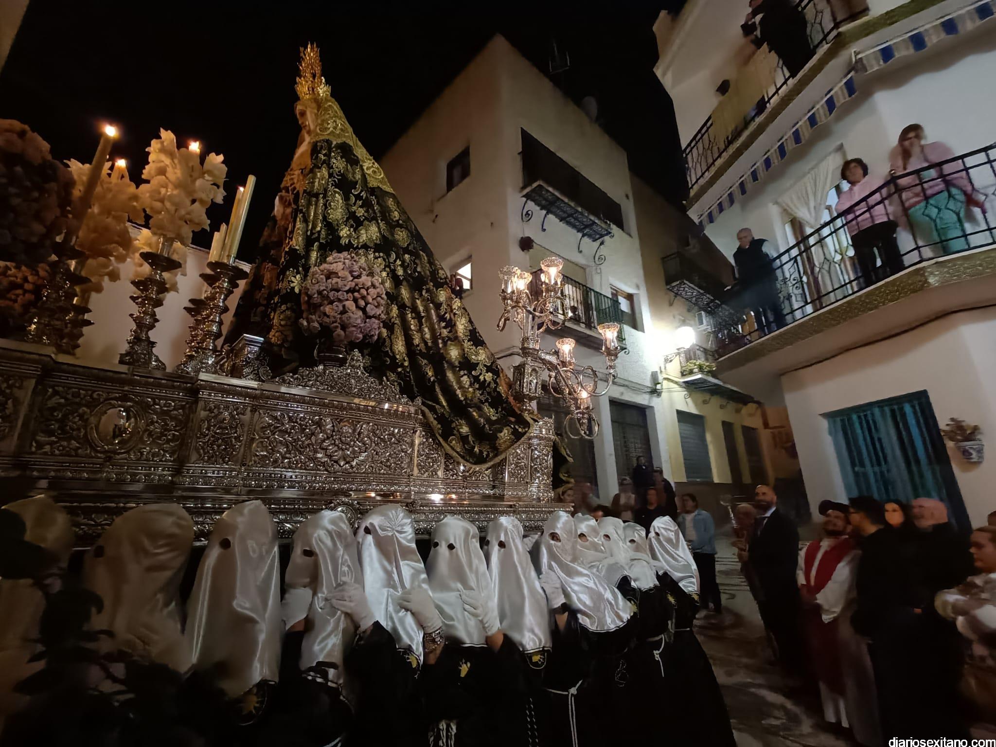 Durante más de dos horas procesionaron los dos pasos que salieron de la Iglesia parroquial de San José pasadas las 9 de la noche. La comitiva, organizada por la Cofradía de La Herradura, que lleva el nombre de los sagrados titulares y que preside Antonio Almanza, estuvo encabezada por el cura párroco Néstor Robledo acompañado por el teniente de alcalde, Daniel Barbero. A los sones de la Banda Municipal de Música de Almuñécar, dirigida por David Pino, y un trío de música de cámara que acompañó al trono del Cristo del Sepulcro, la procesión puso rumbo hacía la calle Canalejas hasta llegar a la calle España para acceder a la calle Real.