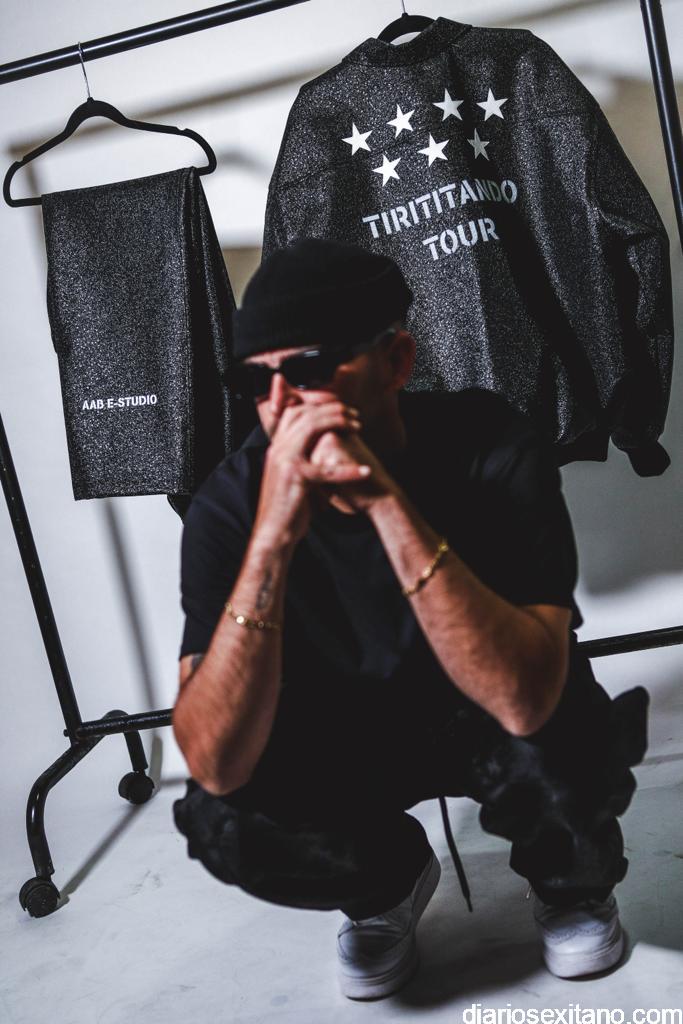 Y agrega: “El segundo traje negro fue para la segunda parte del concierto: un traje inspirado en Madrid, un tejido con el tacto y apariencia del asfalto inspirado en las calles, los barrios y el mundo urbano. Unas estrellas colocadas en la espalda en honor a su bandera, al concierto y a la gente de Madrid. Unos prints (los escritos y logos) hechos con aerógrafo, imitando la técnica del graffiti representando la escena de las firmas en las paredes de Madrid” explica Alonso Barbero.