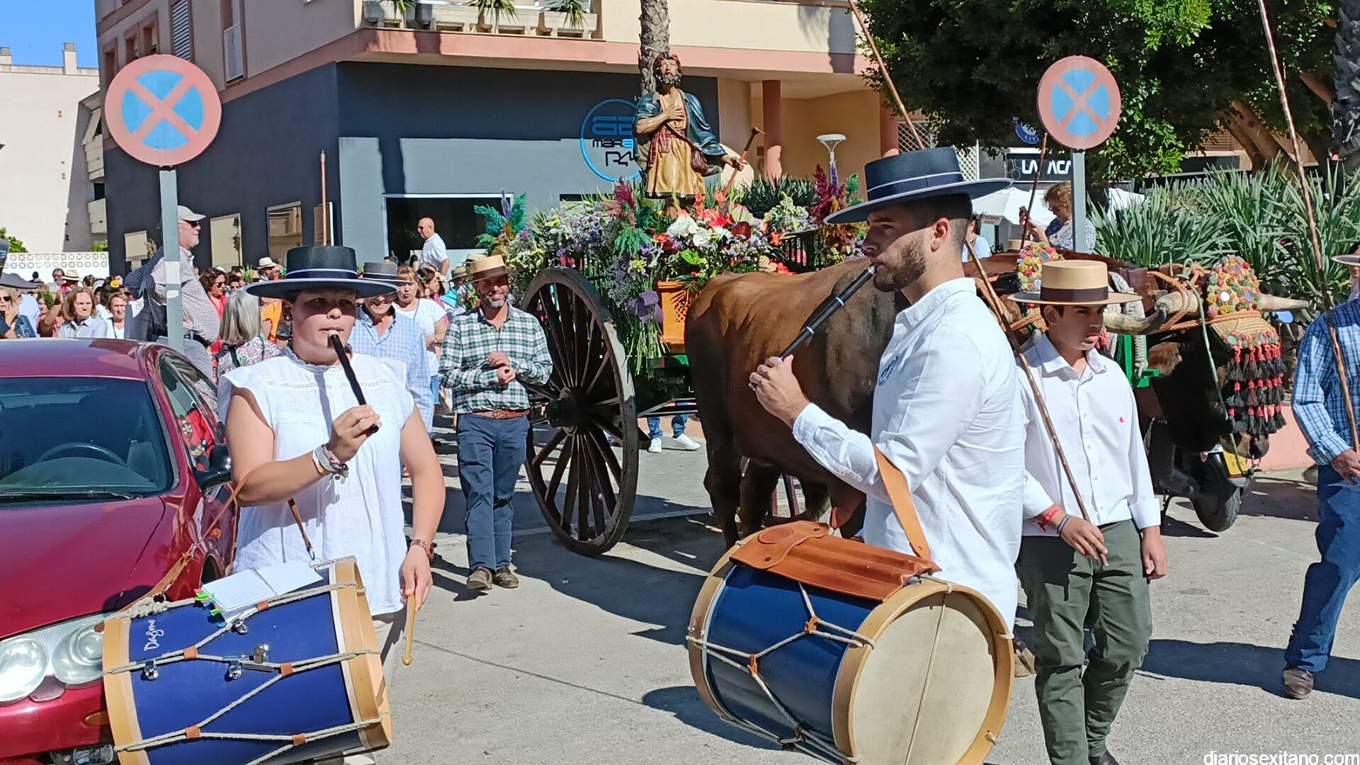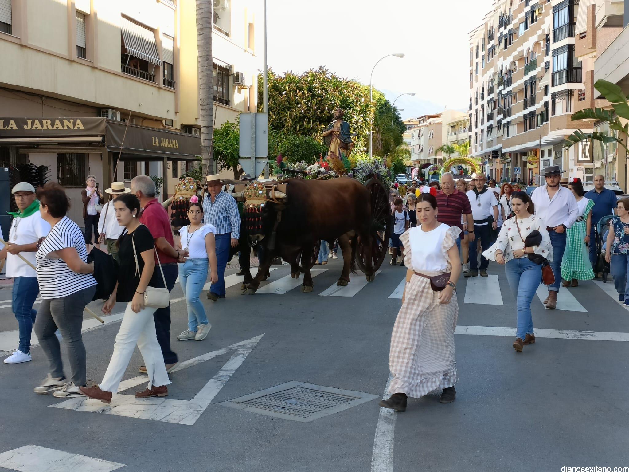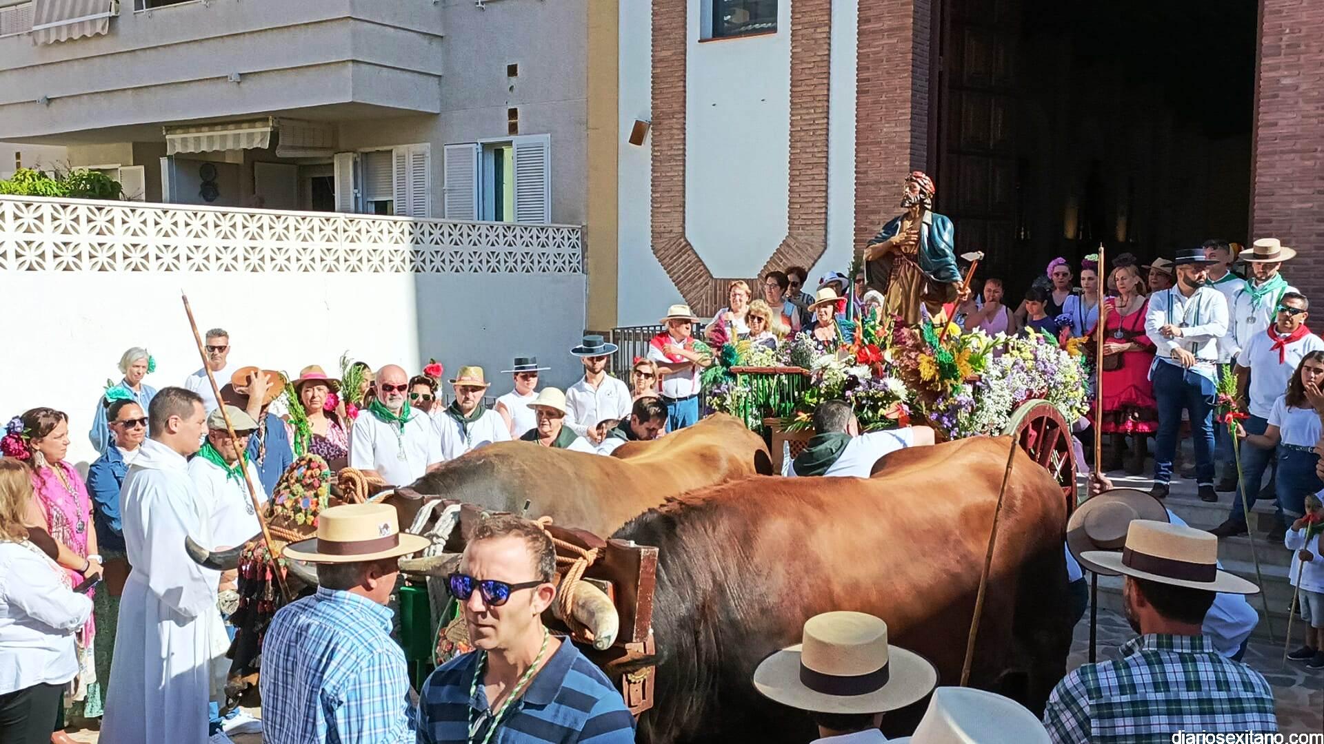 Con la bendición del cura párroco Juan Antonio Arcos a la carreta que portaba a San Isidro Labrador , así como a la yunta de bueyes que tiraban de ella, así como a los romeros que participaron en el cortejo a salida desde el tempo “El Salvador” de Almuñécar, comenzó la X Romería en Honor de San Isidro Labrador, que organizó la Hermandad Virgen Madre San Isidro Labrador de Torrecuevas, preside el Hermano Mayor, Lucas Vallejo, contando con el apoyo del Ayuntamiento sexitano a través del Área de Cultura y Fiestas que dirige Alberto García Gilabert