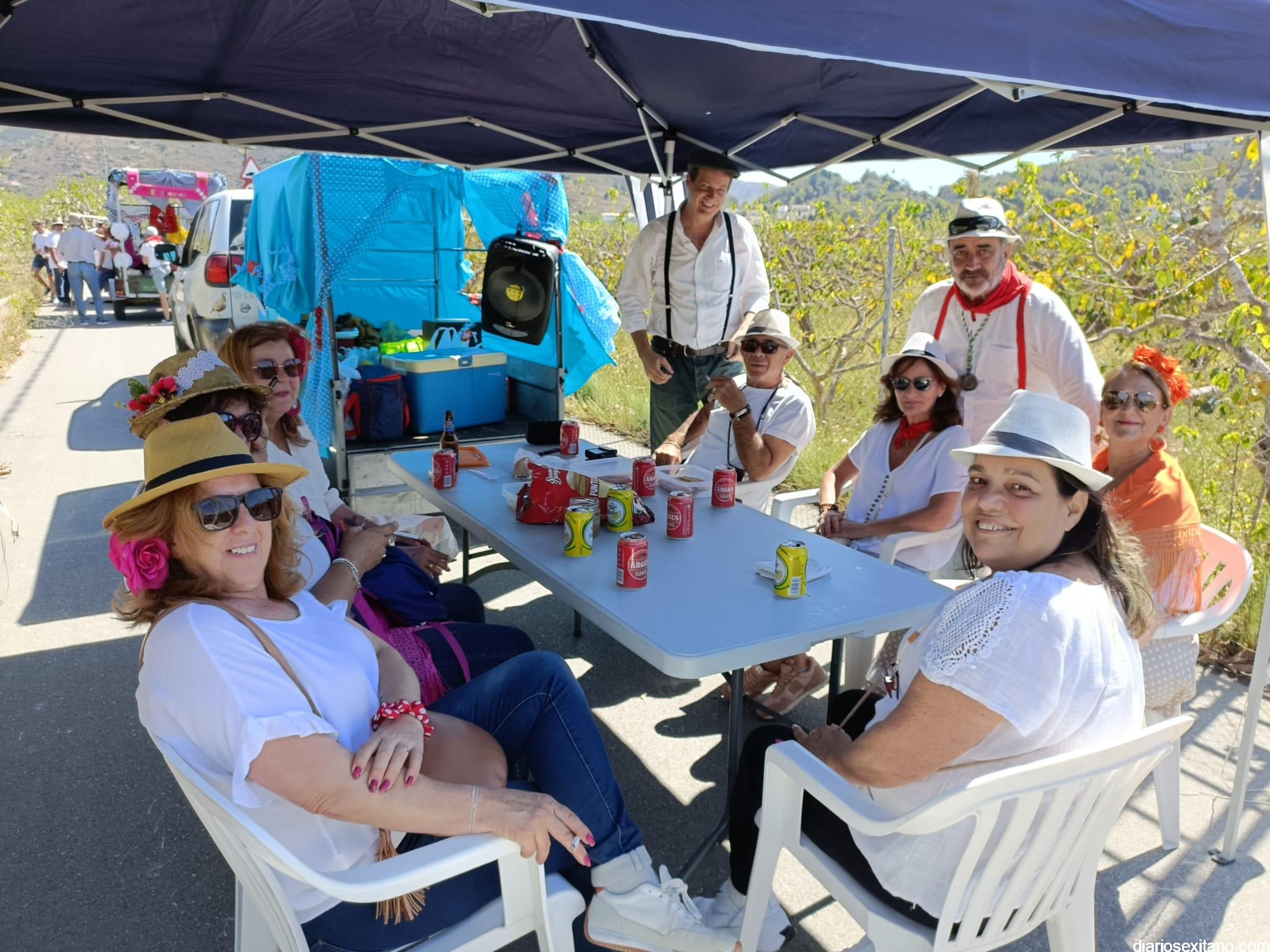 “La gastronomía para reponer fuerzas en el camino es fundamental, todo ello bien regado con las bebidas refrescantes, principalmente”, relataba uno de los componentes de la Peña, mientras no deja de sonar el tamborilero abriendo el camino y la música propia de los romeros donde algunas parejas se atreven a bailar con el mejor voluntad, más que nada.