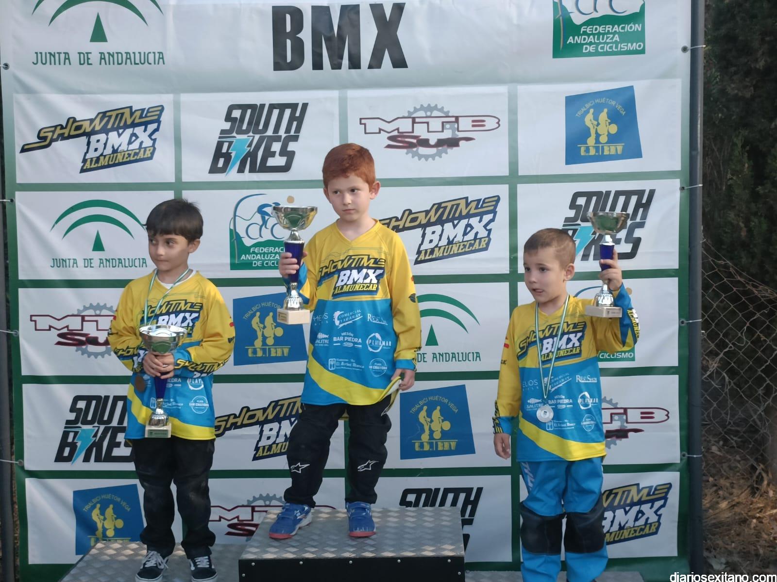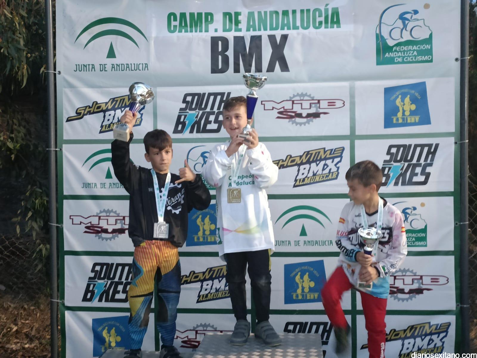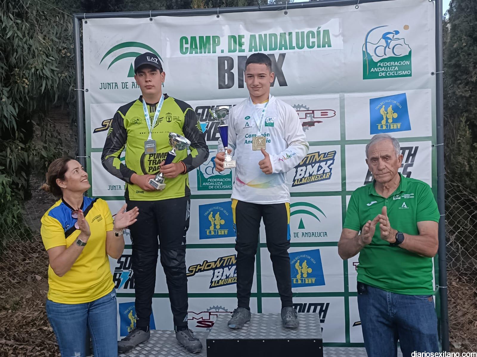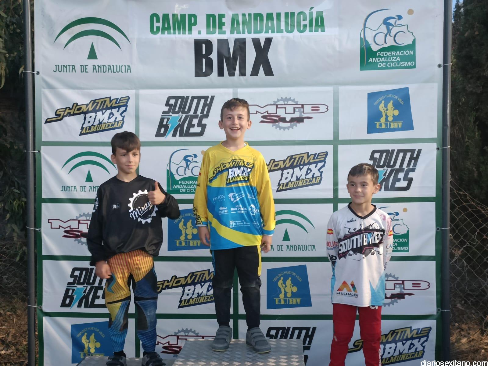 Almuñécar volvió a coronar a los mejores riders, masculino y femenino del BMX andaluz. El circuito permanente “El Pozuelo”, situado cerca de la playa del mismo nombre en el barrio sexitano de Taramay acogió el evento que reunió a 60 riders procedentes de los clubes andaluces y donde casi la mitad estaban enrolados en el CD Show Time BMX de Almuñécar, organizador de la prueba, junto con la Federación Andaluza de Ciclismo y el apoyo del Área de Deportes del Ayuntamiento almuñequero.