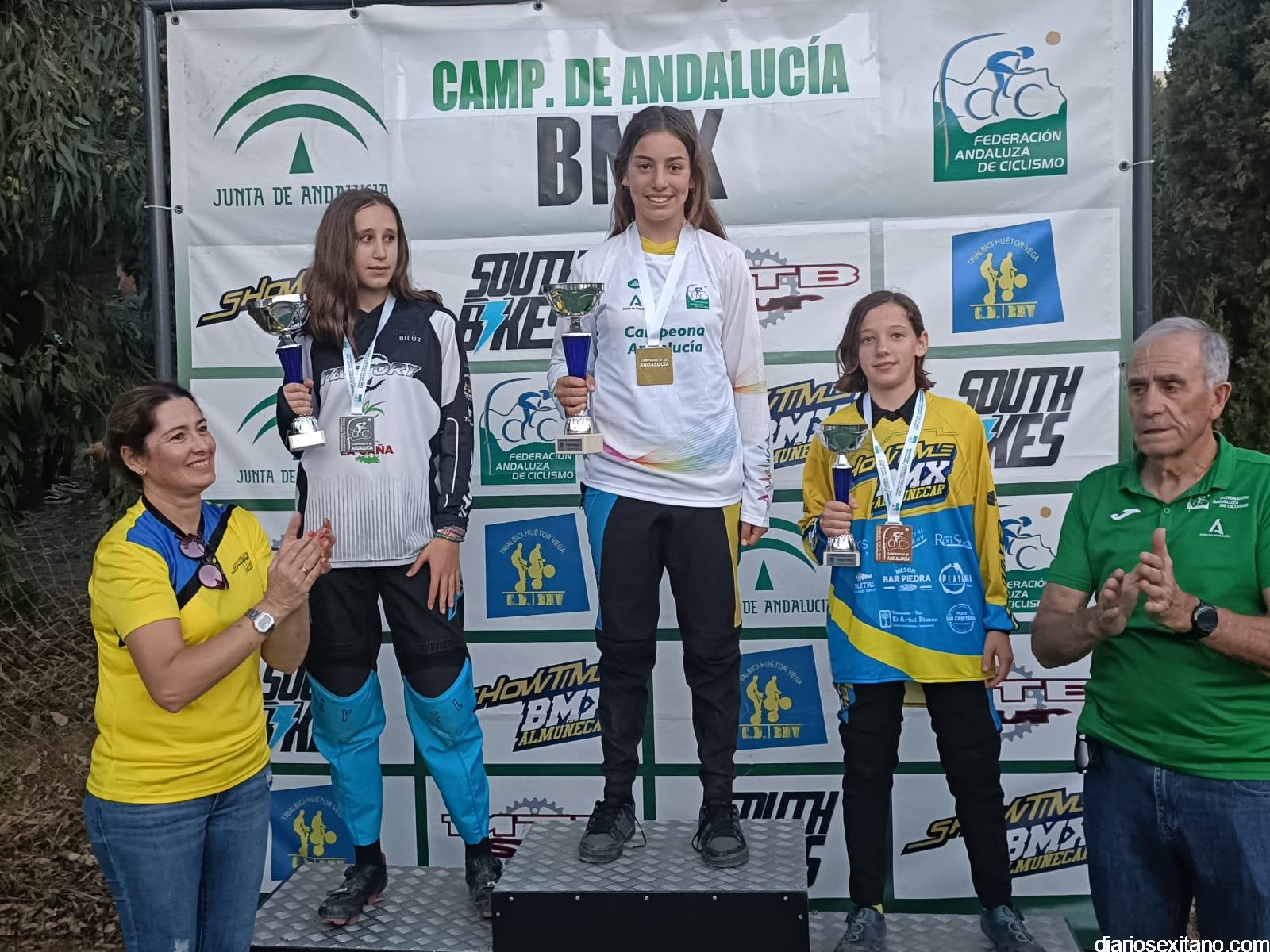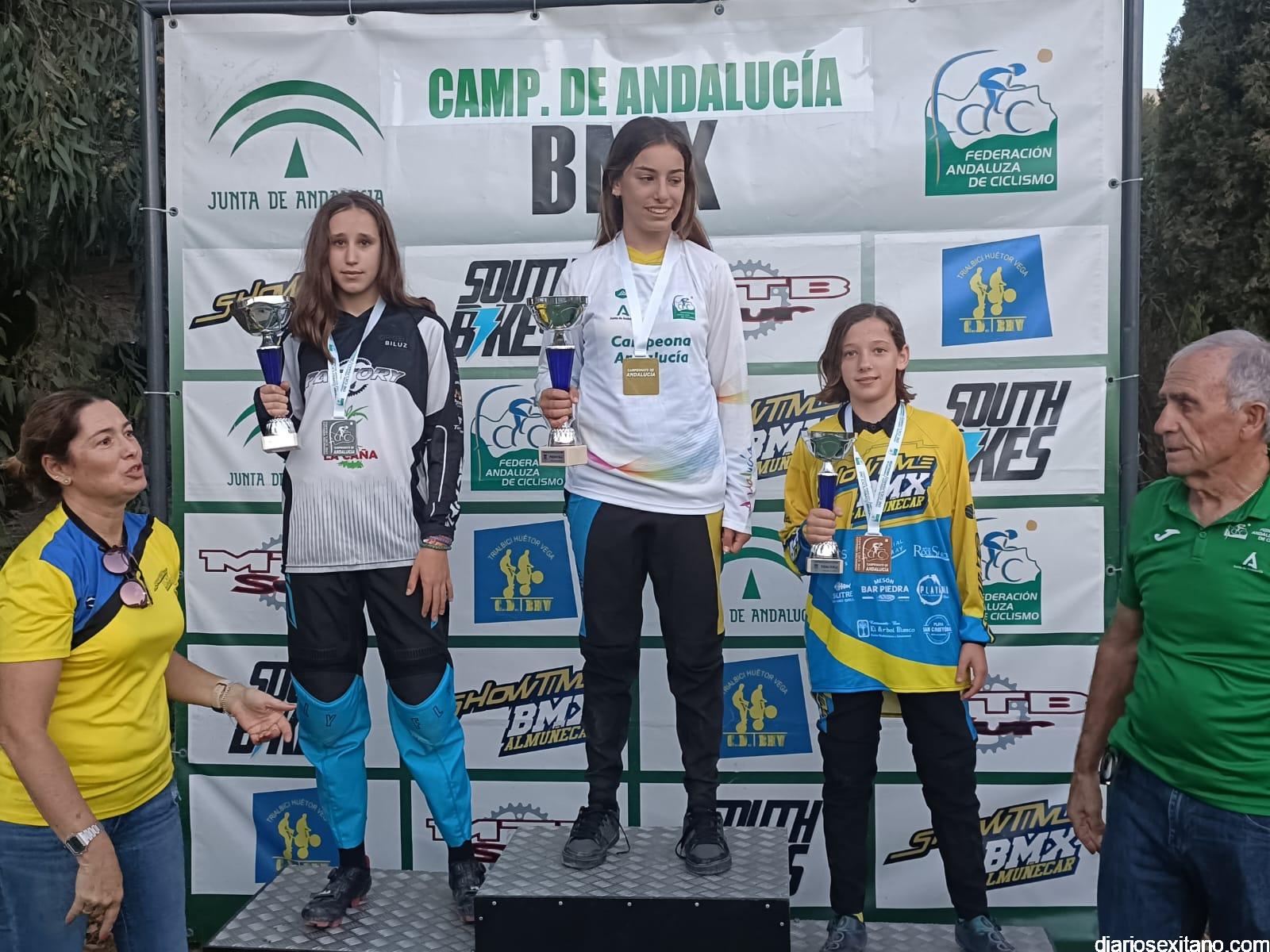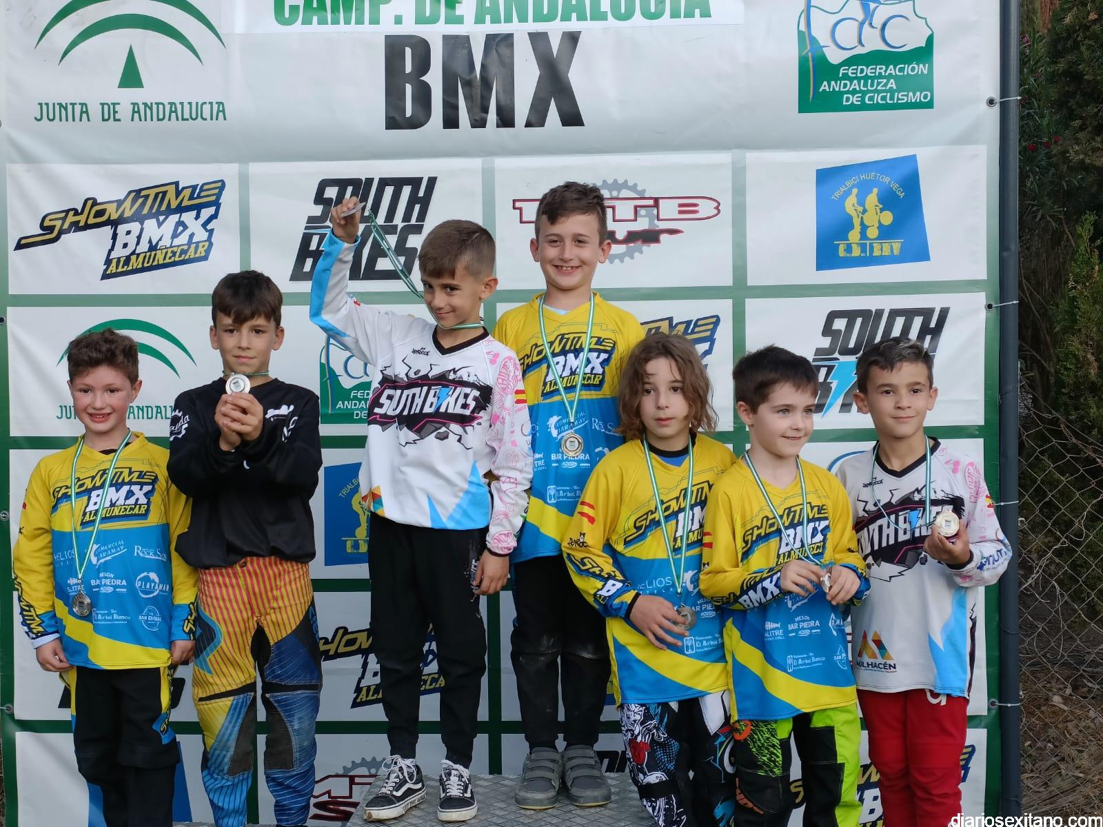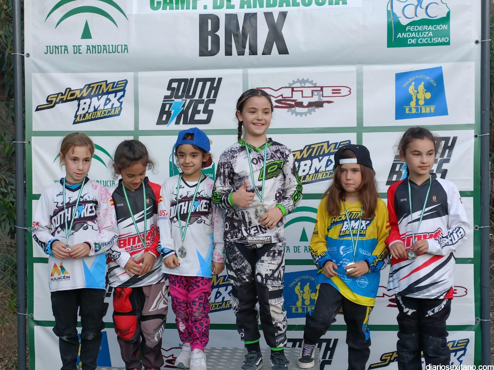 Almuñécar volvió a coronar a los mejores riders, masculino y femenino del BMX andaluz. El circuito permanente “El Pozuelo”, situado cerca de la playa del mismo nombre en el barrio sexitano de Taramay acogió el evento que reunió a 60 riders procedentes de los clubes andaluces y donde casi la mitad estaban enrolados en el CD Show Time BMX de Almuñécar, organizador de la prueba, junto con la Federación Andaluza de Ciclismo y el apoyo del Área de Deportes del Ayuntamiento almuñequero.