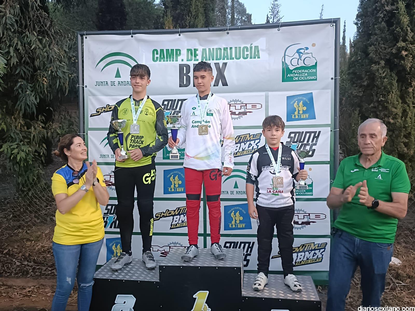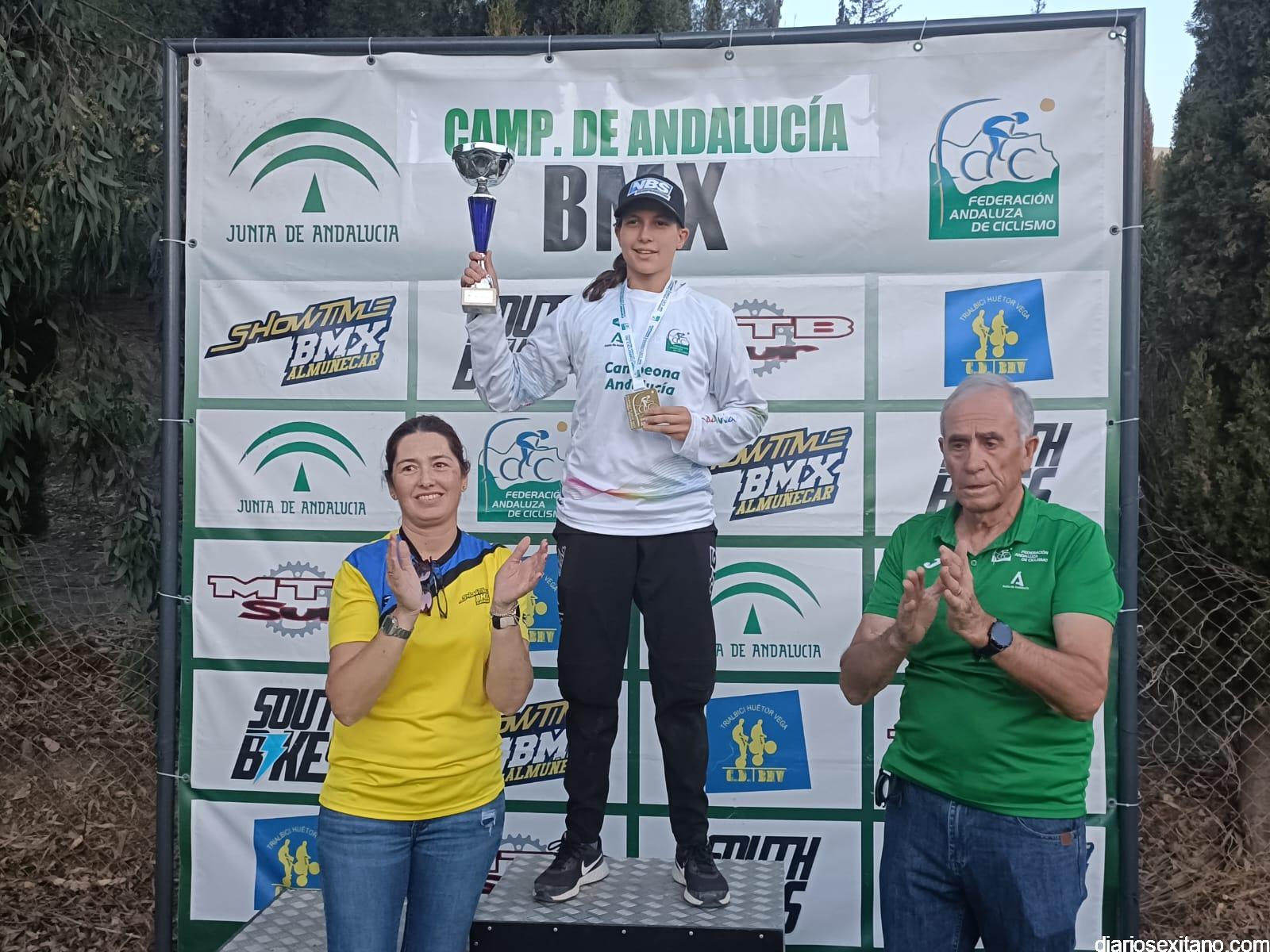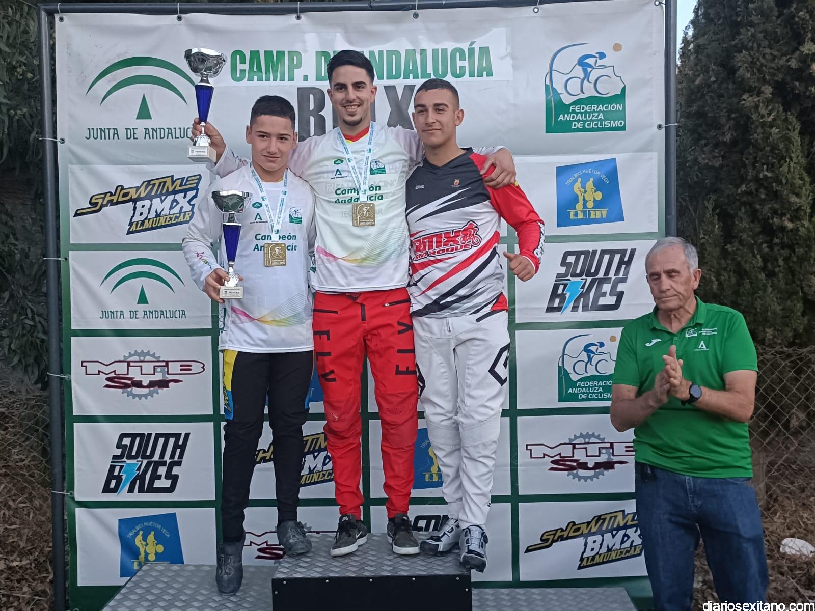 Campeones de Andalucía BMX 2023: Promesa 5 y 6 años: Julio López (C.D. Show Time BMX) y Nicolle Cipollone (C.D. South Bikes). Promesa 7 y 8 años: Luis Mata (C.D. Show Time BMX) y Priscila Álvarez (C.D. BMX Ciudad de Motril). Principiante: Aitor Rivera. Alevín: Vincent Maximus Horszwald (C.D. Factory 14) y Rosa María Fernández (C.D. Show Time BMX). Infantil: Iván Corral (C.D. BMX San Roque) y Ana Valderrama (C.D. Show Time BMX).Cadete: Álvaro Valderrama (C.D. Show Time BMX) e Irene García (Dlabuela Actrion Torre del Mar).Hombres y Mujeres Pro 17años: Luis Miguel Vargas (C.D. BMX San Roque) e Inés Chinchilla (C.D. The AJ46 Project). Challenger 17 a 29 años: Alejandro Pereira (C.D. Trialbici Huétor Vega).Máster 30: José María Hernández (C.D. Viking Bike Torremolinos).Máster 40: Julio Escañuela (C.D. BMX Ciudad de Motril).Mujeres 13 a 16 años: María Pérez (C.D. Factory 14). Hombres y Mujeres 30 a 39 años: Alejandro Lozano (C.D. Factory 14) y Carmen Martín (DLabuela Actrion Torre del Mar). Hombres y Mujeres 40 a 49 años: Julio Escañuela (C.D. BMX Ciudad de Motril) y Montserrat López (C.D. Dirtybike)