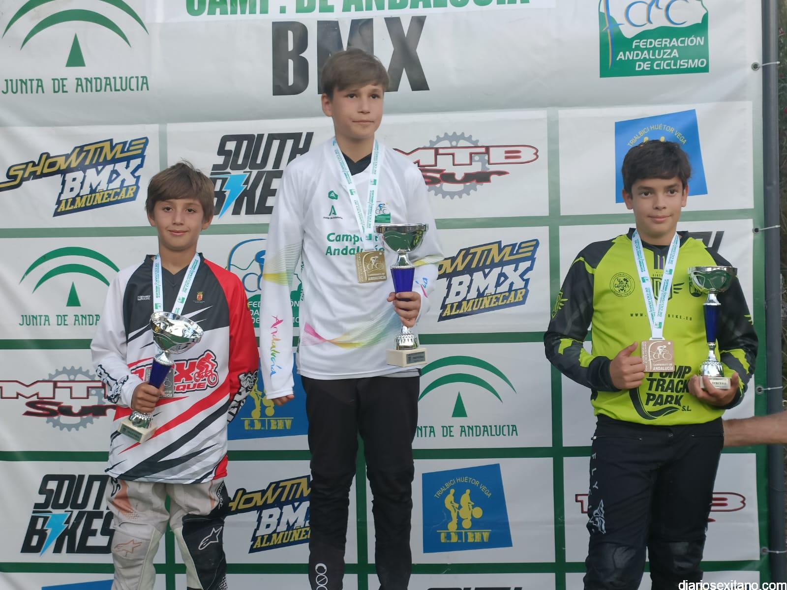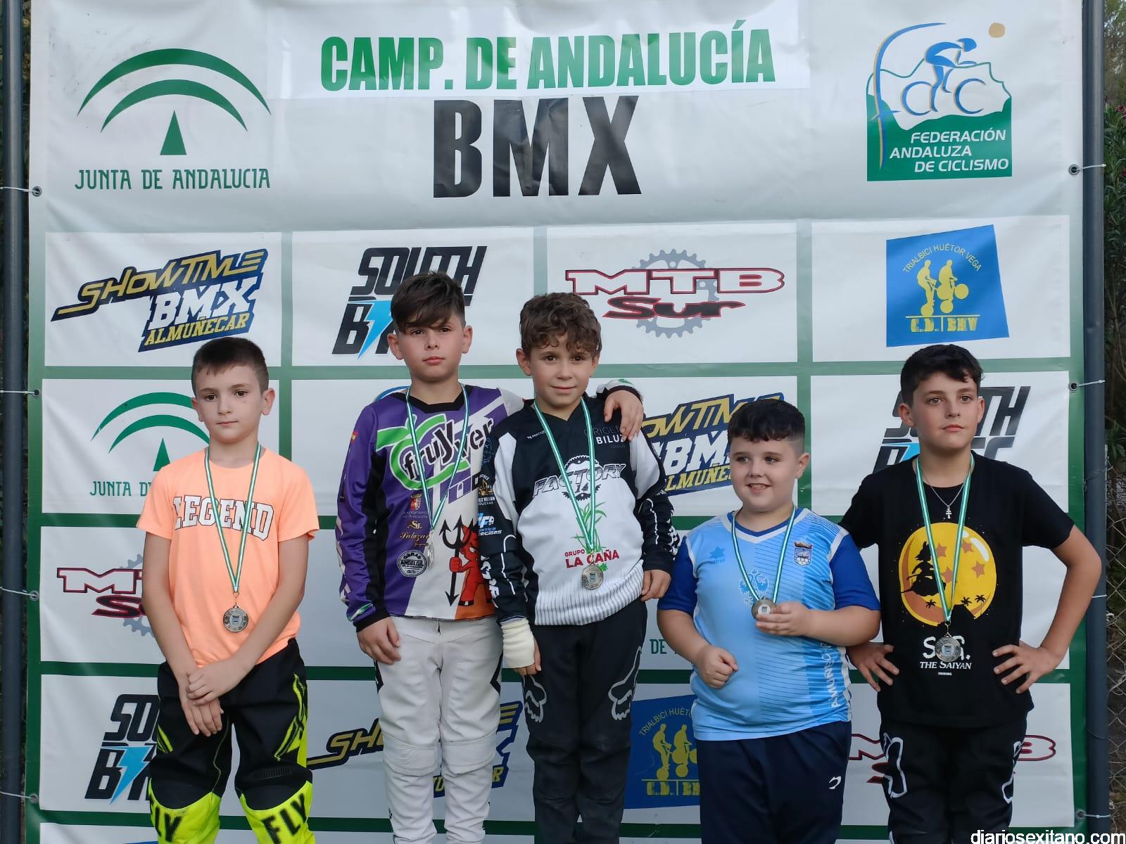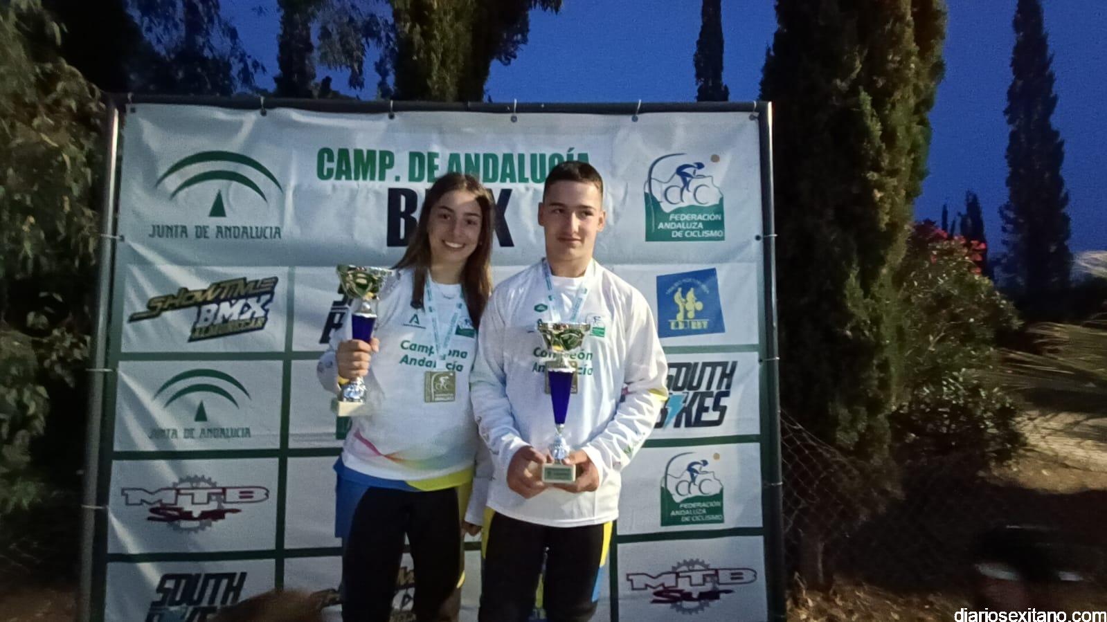Campeones de Andalucía BMX 2023: Promesa 5 y 6 años: Julio López (C.D. Show Time BMX) y Nicolle Cipollone (C.D. South Bikes). Promesa 7 y 8 años: Luis Mata (C.D. Show Time BMX) y Priscila Álvarez (C.D. BMX Ciudad de Motril). Principiante: Aitor Rivera. Alevín: Vincent Maximus Horszwald (C.D. Factory 14) y Rosa María Fernández (C.D. Show Time BMX). Infantil: Iván Corral (C.D. BMX San Roque) y Ana Valderrama (C.D. Show Time BMX).Cadete: Álvaro Valderrama (C.D. Show Time BMX) e Irene García (Dlabuela Actrion Torre del Mar).Hombres y Mujeres Pro 17años: Luis Miguel Vargas (C.D. BMX San Roque) e Inés Chinchilla (C.D. The AJ46 Project). Challenger 17 a 29 años: Alejandro Pereira (C.D. Trialbici Huétor Vega).Máster 30: José María Hernández (C.D. Viking Bike Torremolinos).Máster 40: Julio Escañuela (C.D. BMX Ciudad de Motril).Mujeres 13 a 16 años: María Pérez (C.D. Factory 14). Hombres y Mujeres 30 a 39 años: Alejandro Lozano (C.D. Factory 14) y Carmen Martín (DLabuela Actrion Torre del Mar). Hombres y Mujeres 40 a 49 años: Julio Escañuela (C.D. BMX Ciudad de Motril) y Montserrat López (C.D. Dirtybike)