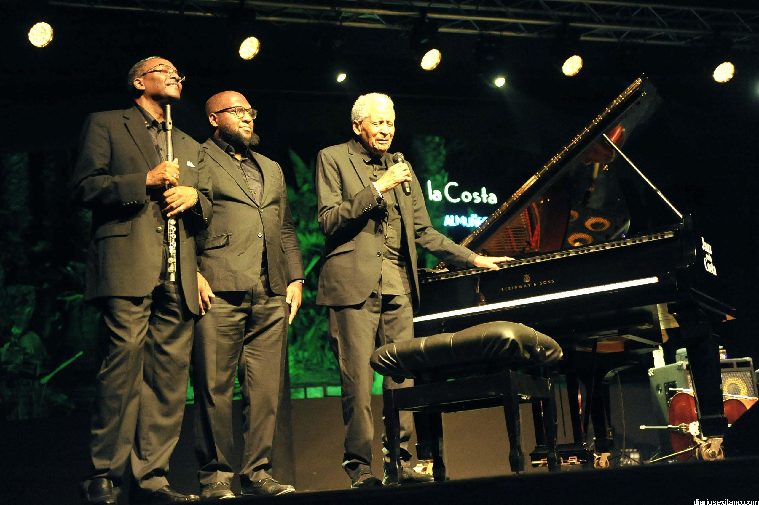 El veterano pianista sudafricano Abdullah Ibrahim ofreció un concierto “muy íntimo y evocador” en la cuarta noche del 36º Festival Internacional de Jazz en la Costa de Almuñécar que acoge el auditorio del parque «El Majuelo». Abdullah Ibrahim, antes conocido como Dollar Brand, a sus 88 años fue homenajeado por el Ayuntamiento de Almuñécar que, junto a Diputación Provincial, organiza el evento, recibiendo la medalla de la ciudad de manos del alcalde, Juan José Ruiz Joya, y descubriendo su firma en el «Bulevar del Jazz».
