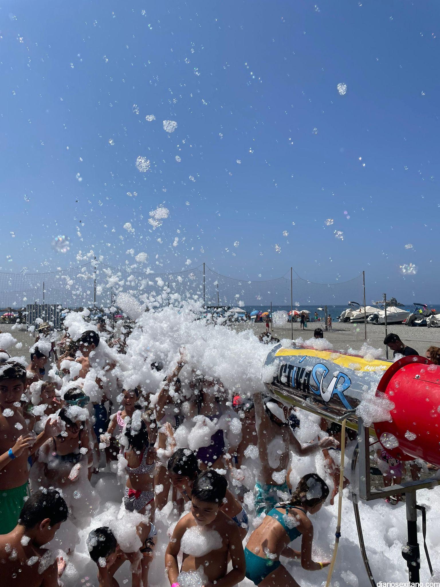 La mañana de este viernes ha vuelto a centrar la atención en la playa Puerta del Mar con las actividades infantiles y muy especialmente el Certamen de Castillos de Arena y la Fiesta de la Espuma donde decenas de pequeños y mayores han disfrutado intensamente.