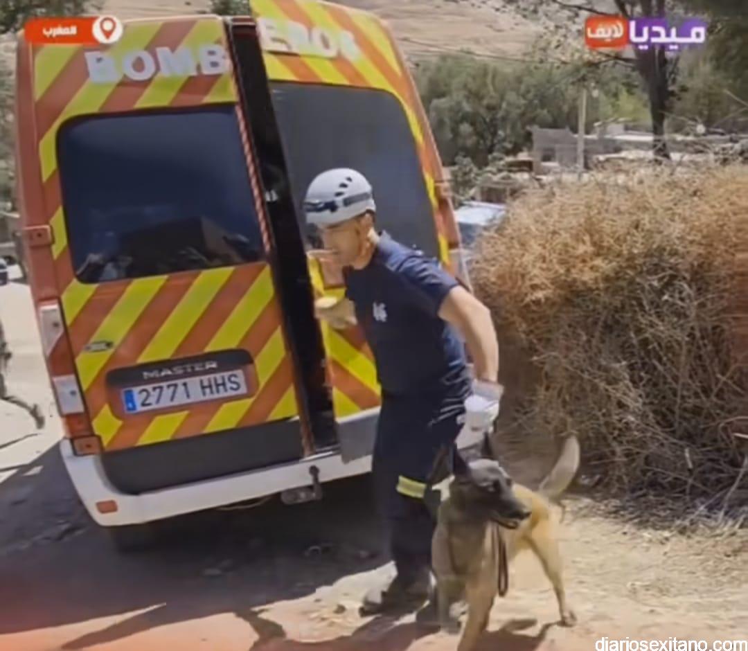 Precisamente el canal de televisión marroquí Media live ha sido testigo de la actuación de los bomberos sexitanos con los canes en la citada zona.