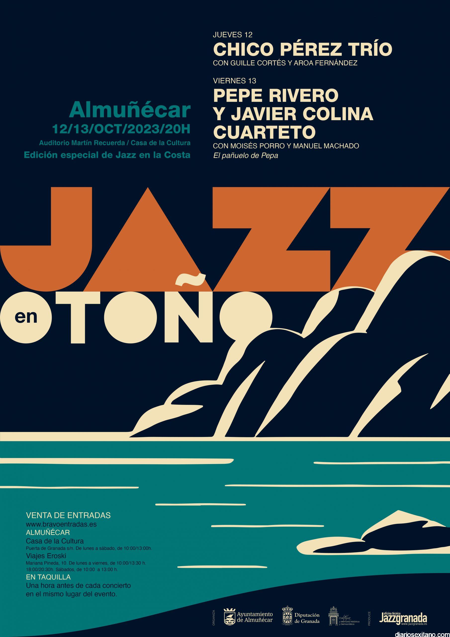 El concejal de Cultura en el Ayuntamiento de Almuñécar, Alberto García Gilabert, ha dado a conocer la programación cultural del mes de octubre que tendrá la ciudad sexitana, con una propuesta que supera la veintes de actividades, donde abarca, en el apartado musical, el Festival de “Jazz en Otoño” que por cuarto año consecutivo podrán disfrutarlos amantes de esta música durante dos jornadas en la Casa de la Cultura, días 12 y 13 de octubre, teniendo como protagonista a Chico Pérez Trío y Pepe Rivero y Javier Colma. Las entradas anticipadas ya se pueden adquirir en el portal www.bravoentradas .es.
