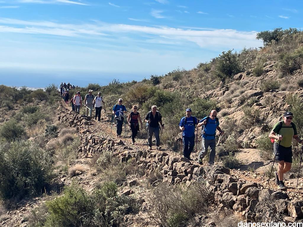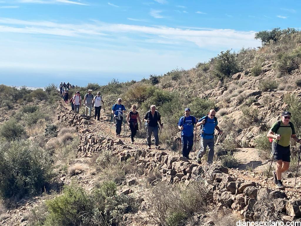 Medio centenar de senderistas participaron este domingo en la ruta propuesta por el Área Municipal de Deportes (AMD) de Almuñécar por la Sierra de Gádor de Almería. Un recorrido de 17 kilómetros que comenzó desde el sendero Las Palomas, pasando por la galería Los Lobos, cuevas y acequias medievales.