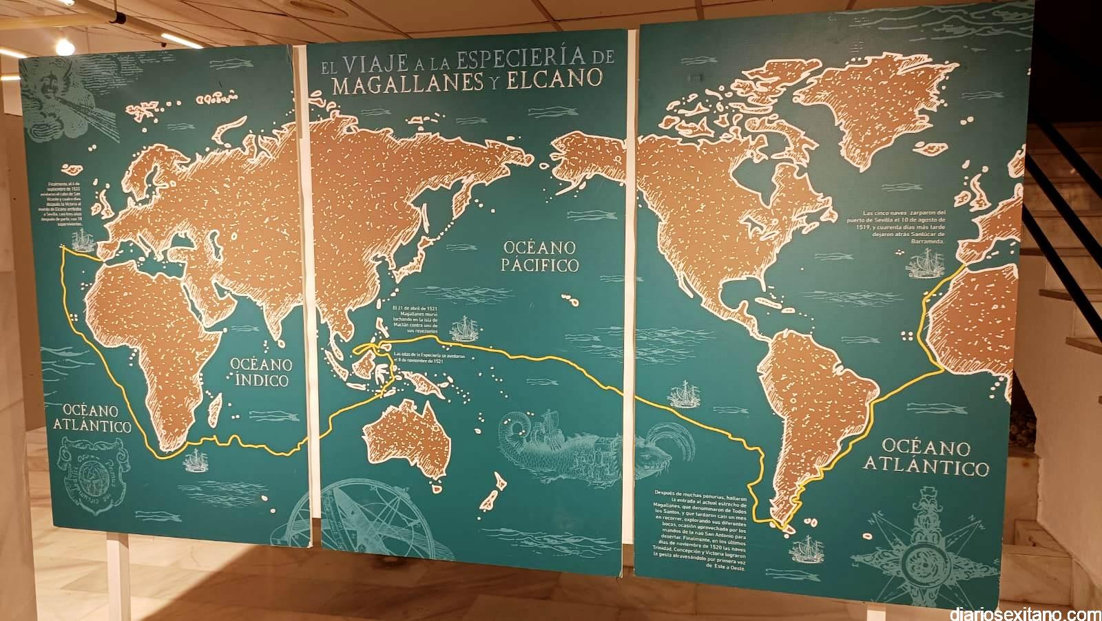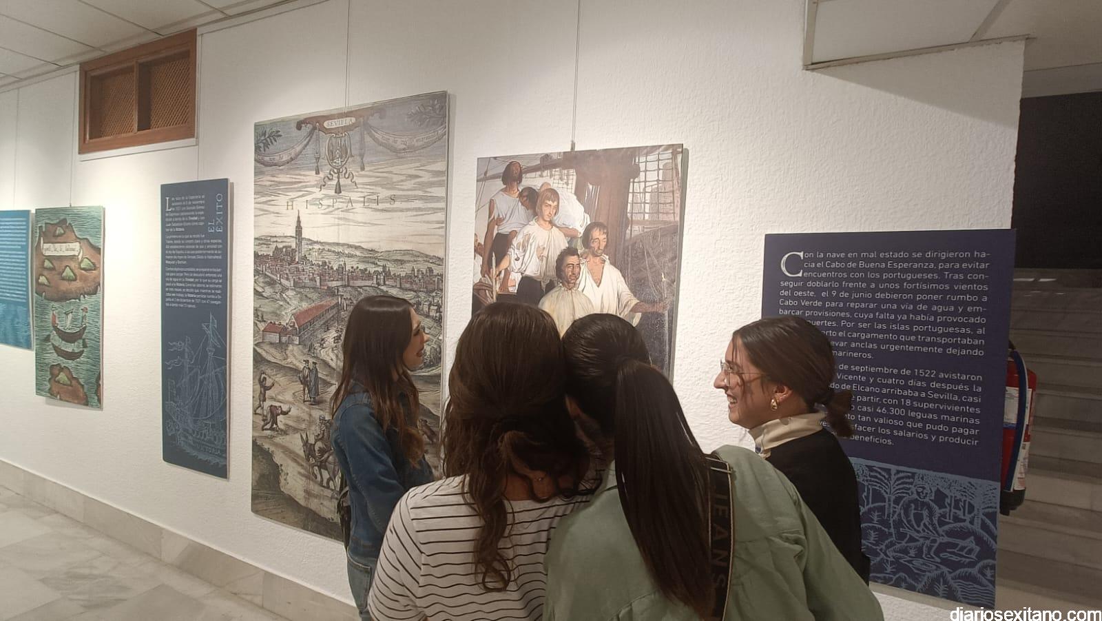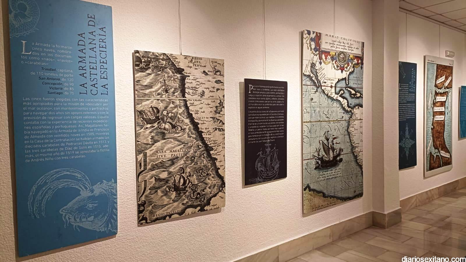 La exposición hace un recorrido por esta hazaña española con paneles informativos que incluyen reproducciones de mapas del Museo Naval de la Armada y otros documentos, trasladando al visitante al siglo XVI.