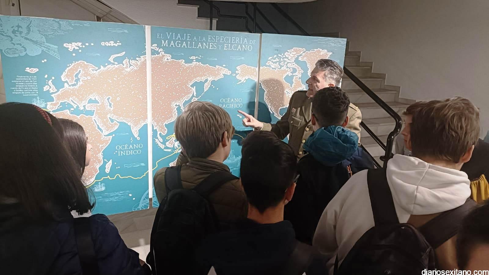 El Subdelegado del Gobierno de Defensa en Granada, Federico Emilio González Vico, fue el encargado de impartir de la conferencia inaugural de la exposición aportando y explicando todos los detalles que tuvo el viaje a la especiería de Magallanes y Elcano y que fue seguida con atención e interés por los asistentes, entre ellos los responsables locales de la Guardia Civil y Policía Local de Almuñécar, asi como estudiantes del IES La Zafra de Motril, quienes aprovecharon la visita a la localidad sexitana dentro del programa “Un mar de historias” que lleva a cabo el Área de Cultura y Educación, a través del departamento de Arqueología. Tras la conferencia inaugural giraron visita a la exposición.