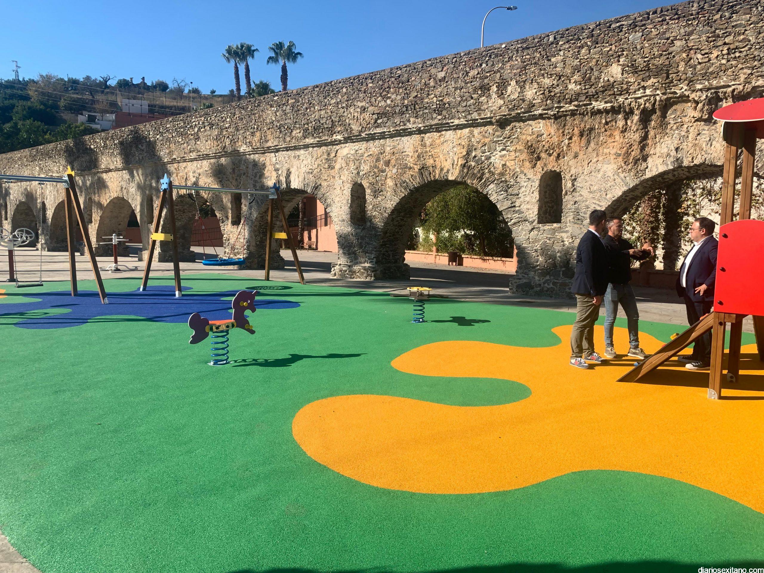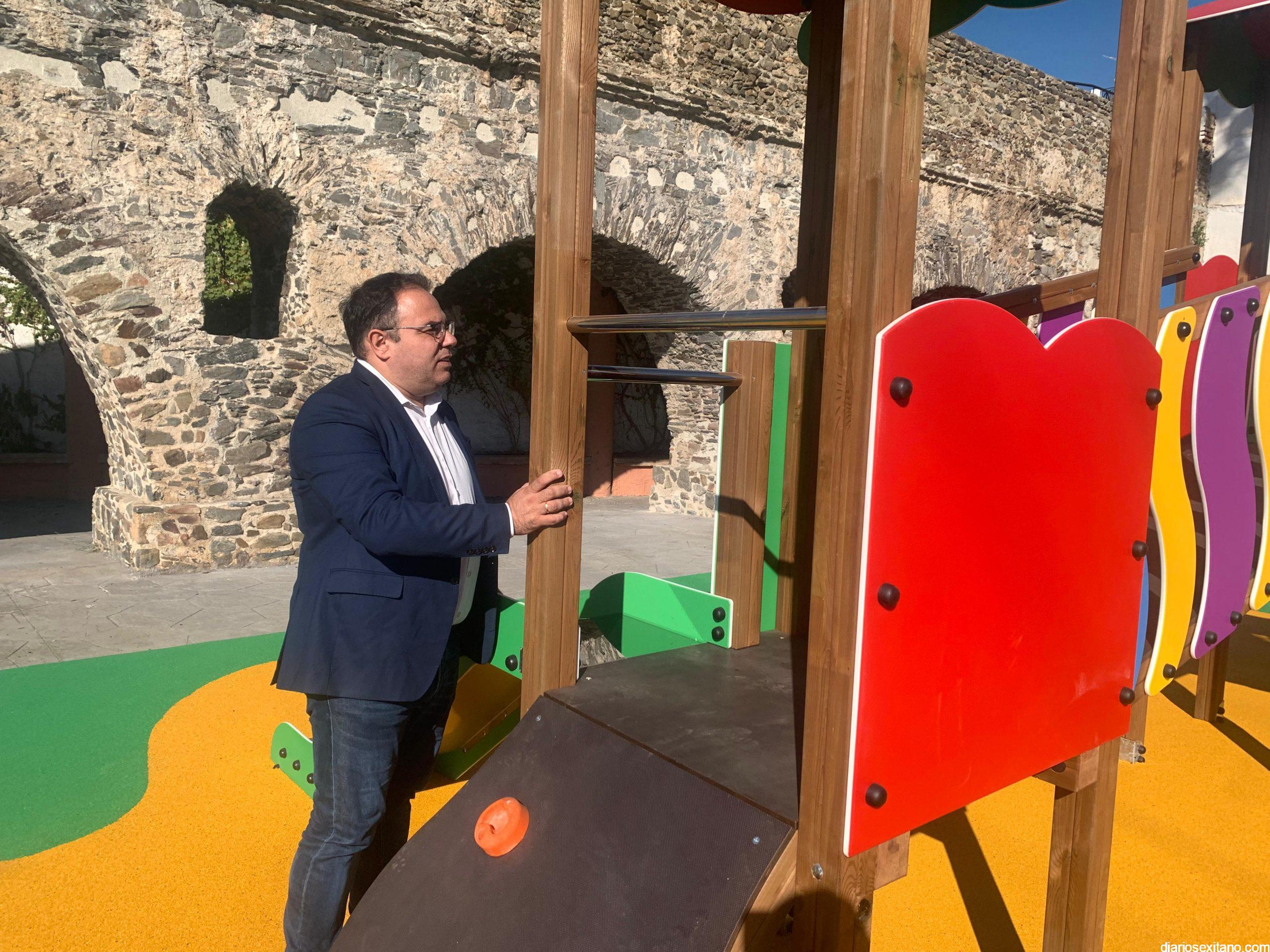En el parque infantil el regidor sexitano, acompañado también del técnico municipal director de los trabajos, ha podido comprobar cómo ha quedado el recinto tras las obras de remodelación.