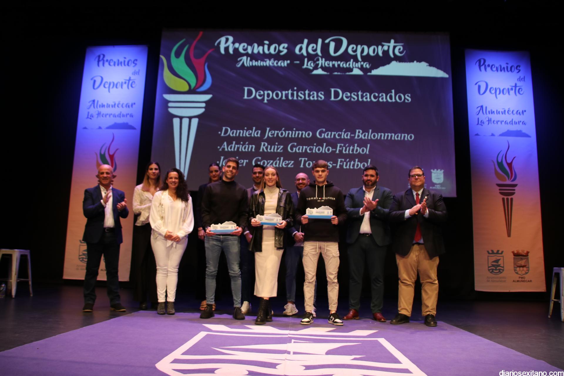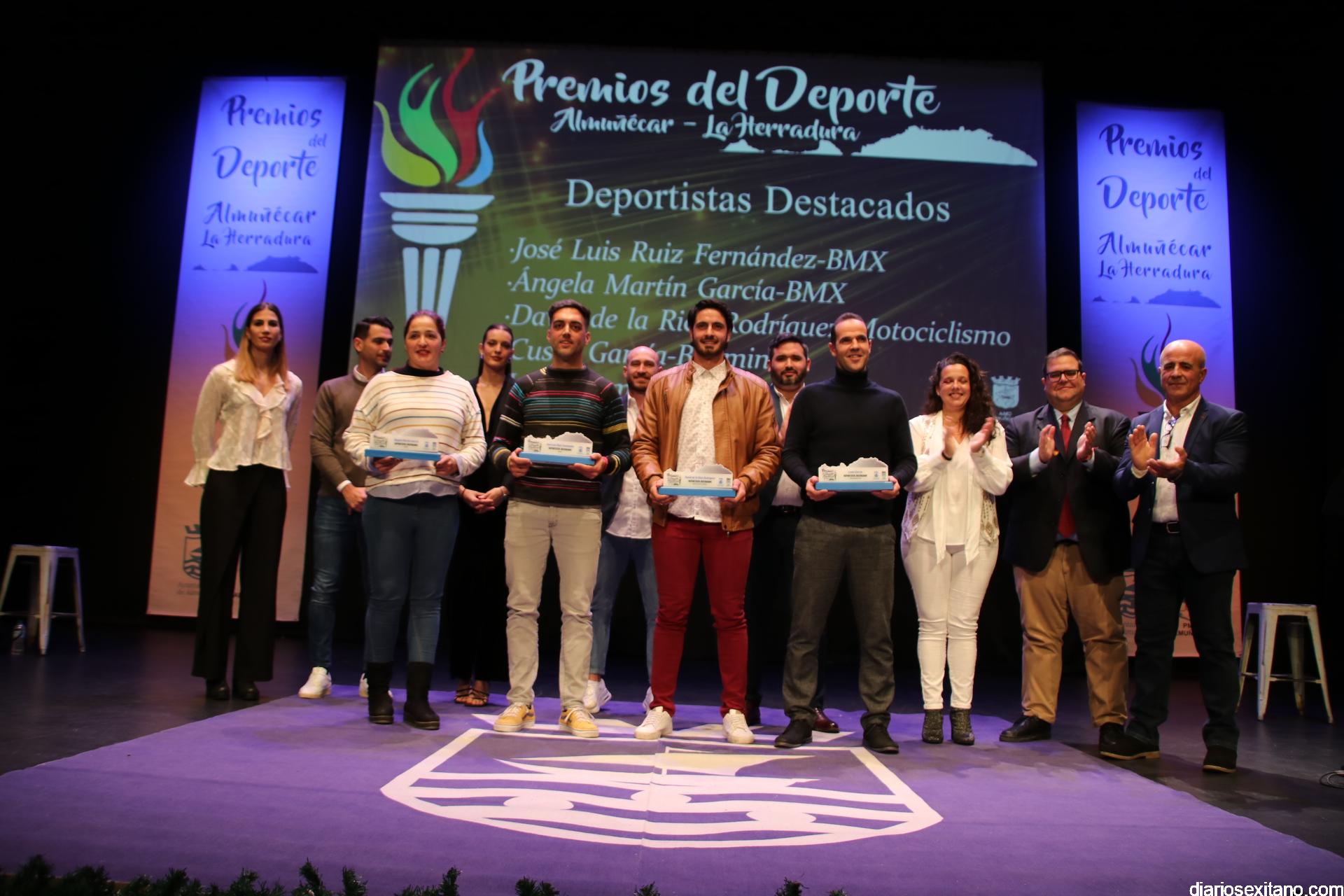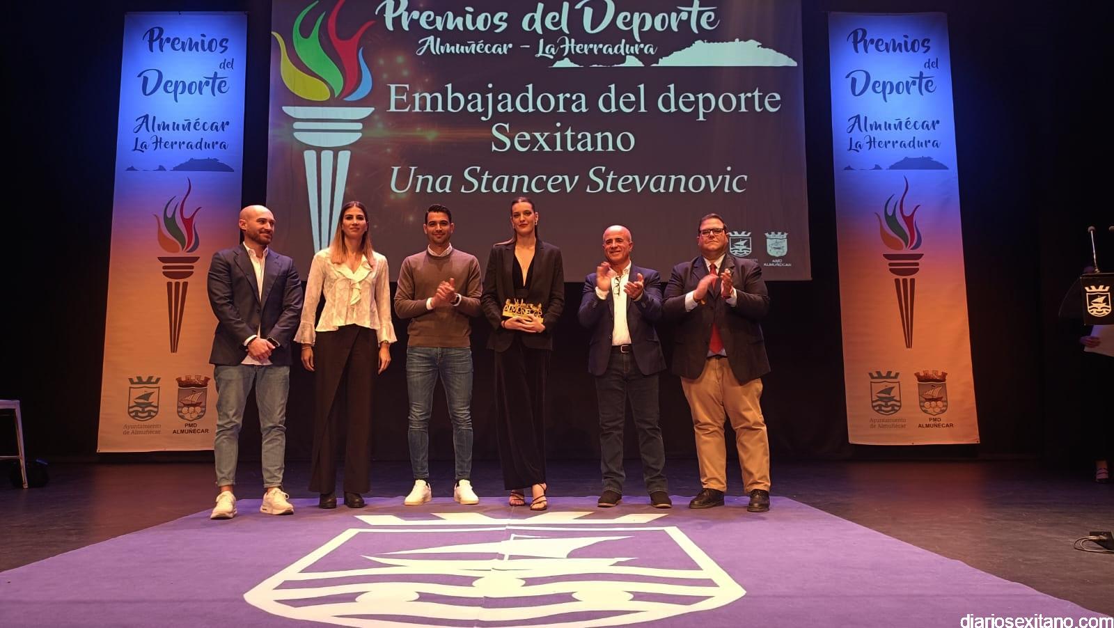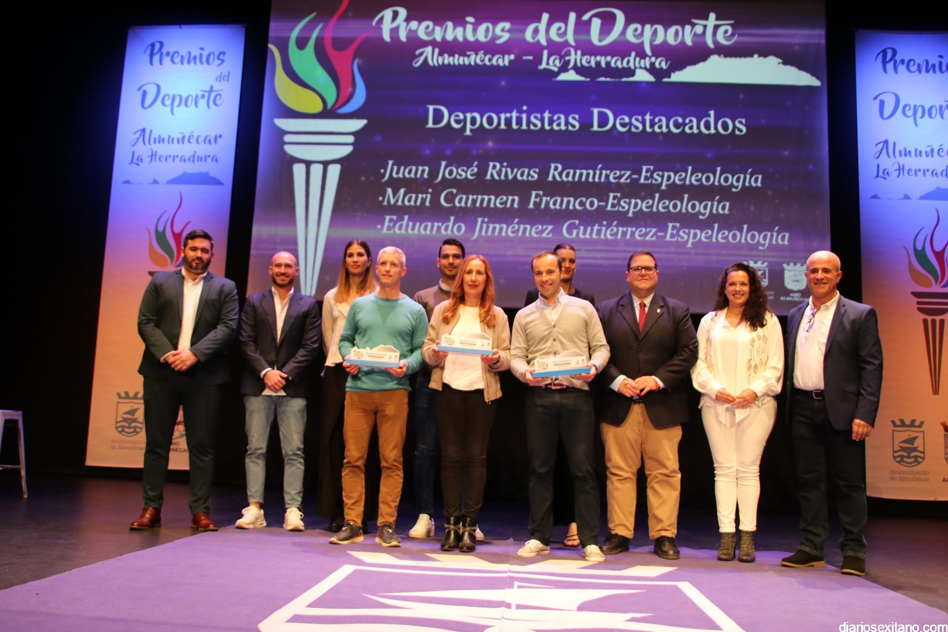 El reconocimiento del “deportista del año” fue para Carlos Rodríguez, que por motivos familiares no pudo asistir. En cuanto al “club del año”, el galardón fue para el Club de Tenis Almuñécar, liderado por Rafael Marín Linares. En cuanto al apartado de “embajadores” del deporte sexitano los galardones fueron para la atleta Una Stancev y el entrenador de fútbol Carlos González. Como “deportista de oro sexitanos” recibieron este reconocimiento Irene Espínola , ex jugadora internacional de balonmano) y el futbolista Andy Rodríguez Gaitán