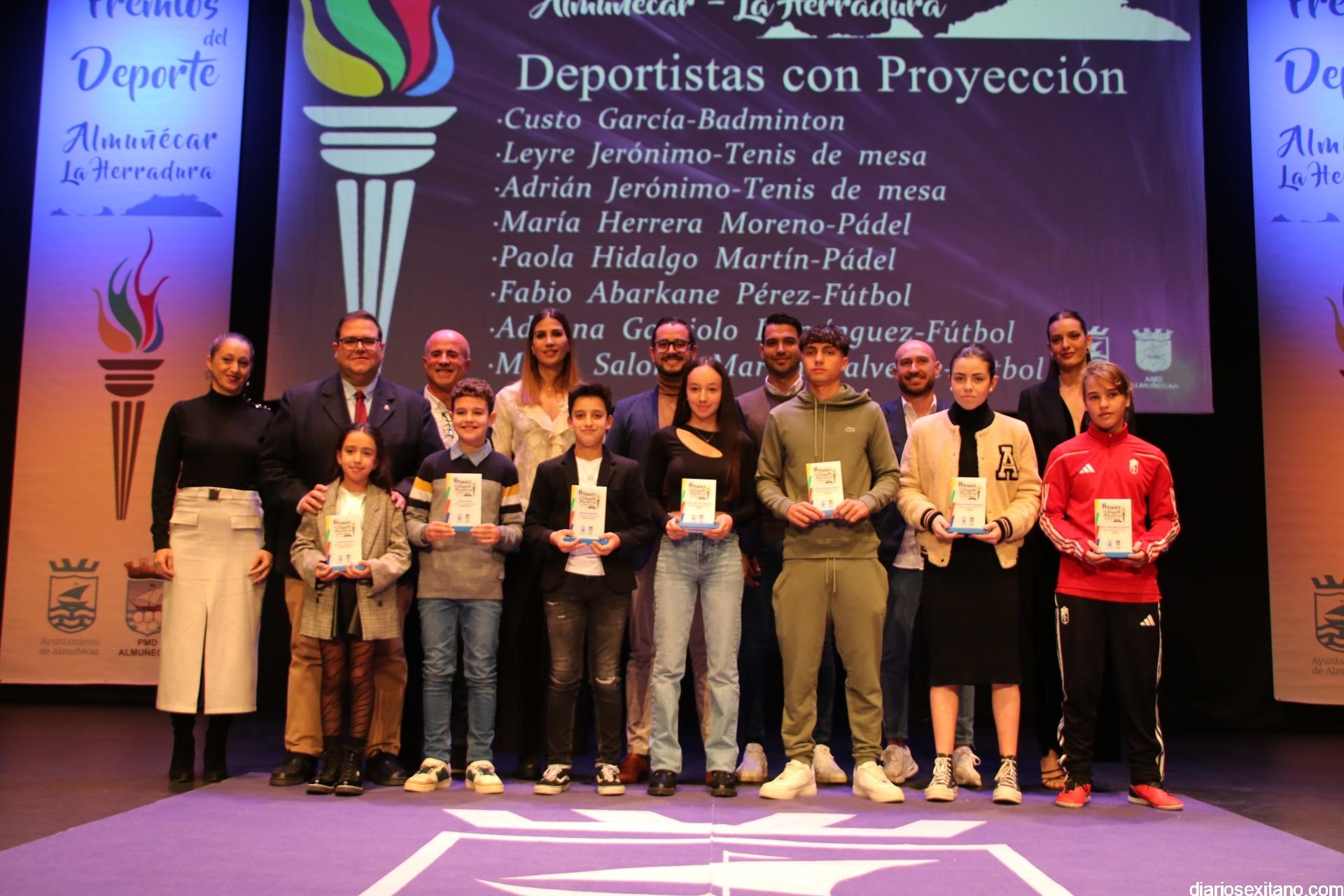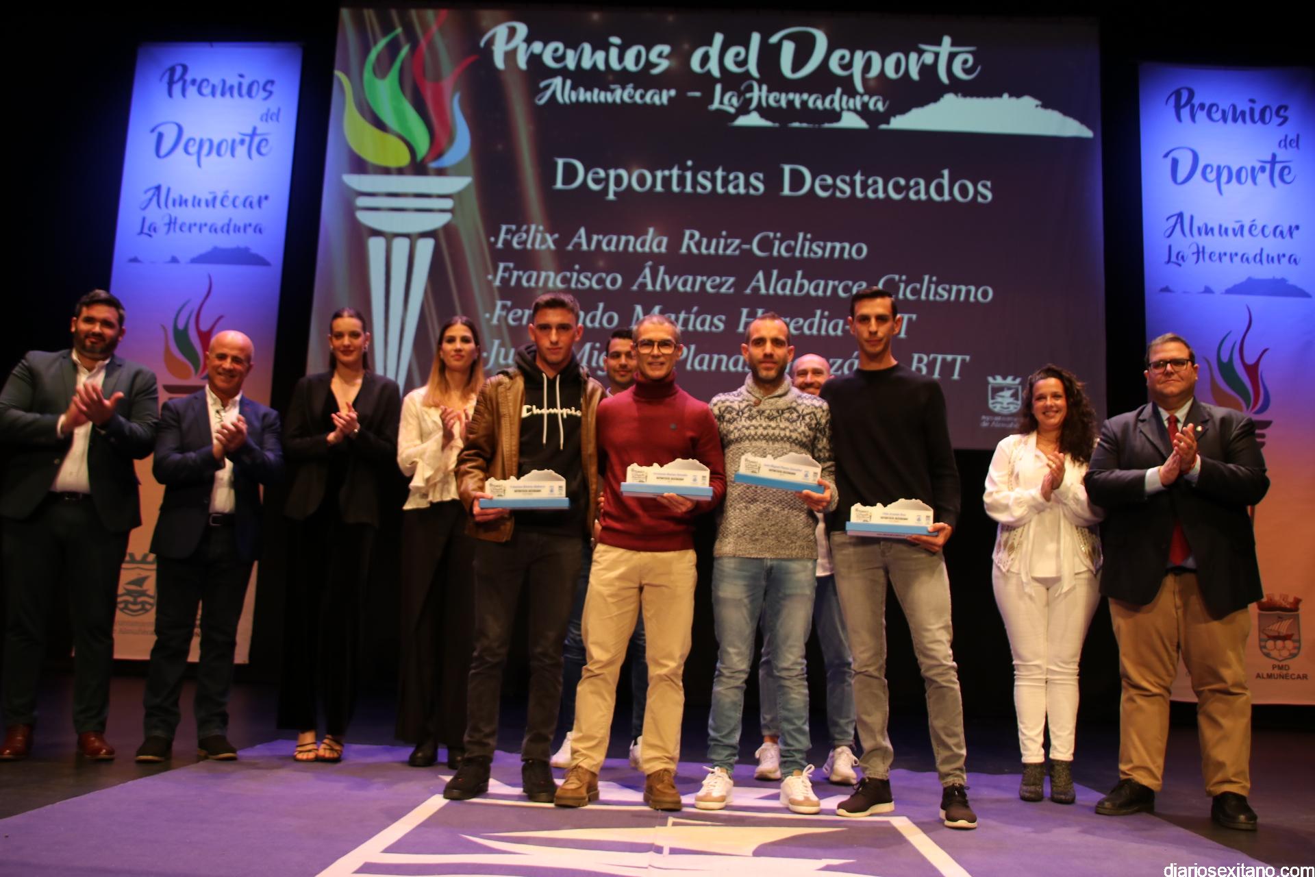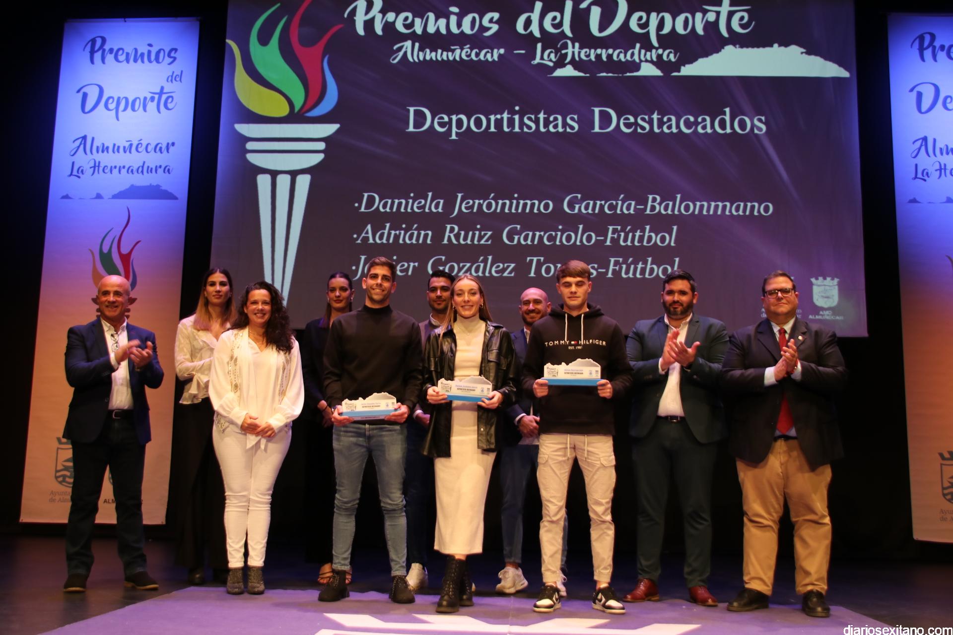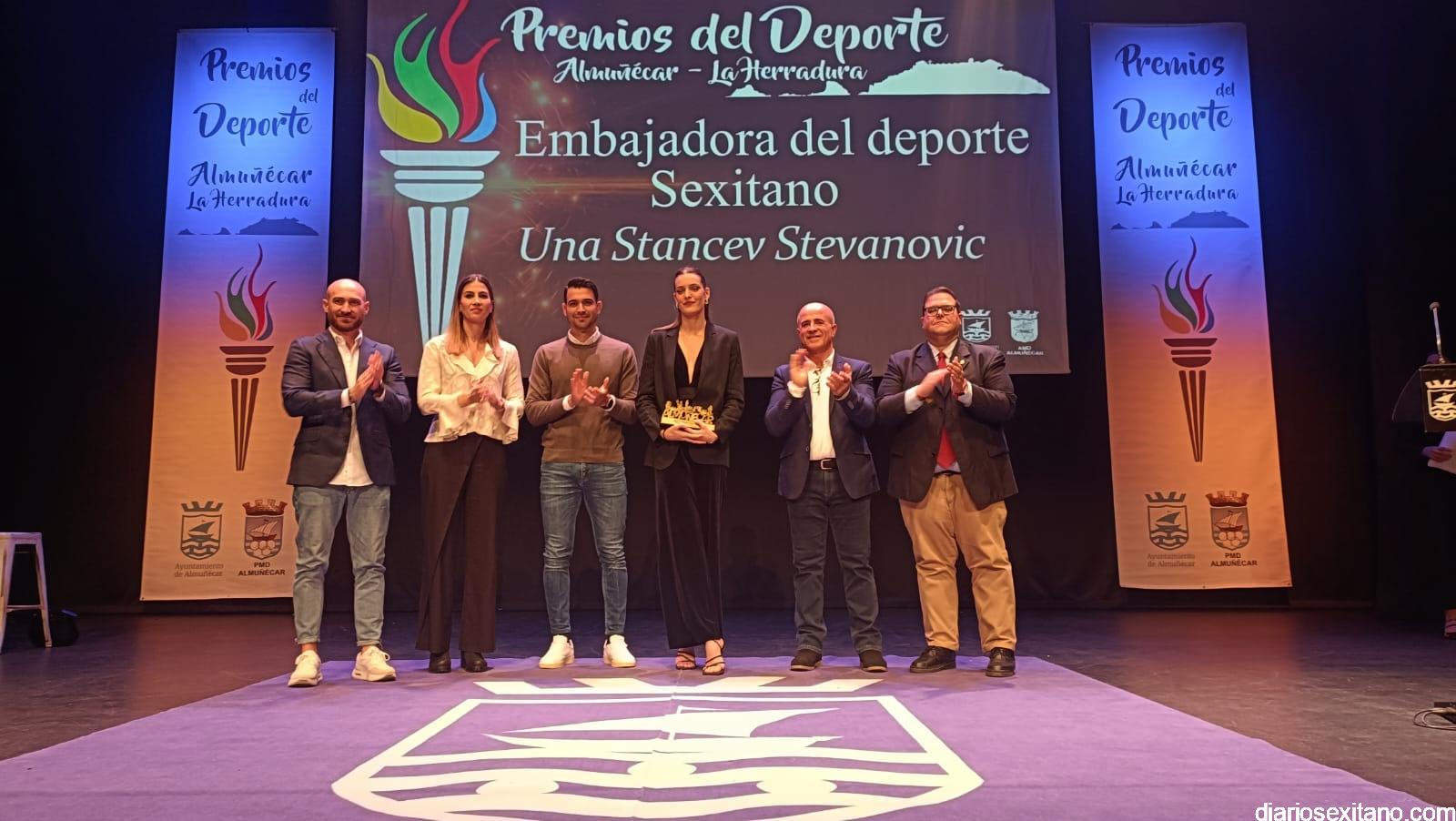 El reconocimiento del “deportista del año” fue para Carlos Rodríguez, que por motivos familiares no pudo asistir. En cuanto al “club del año”, el galardón fue para el Club de Tenis Almuñécar, liderado por Rafael Marín Linares. En cuanto al apartado de “embajadores” del deporte sexitano los galardones fueron para la atleta Una Stancev y el entrenador de fútbol Carlos González. Como “deportista de oro sexitanos” recibieron este reconocimiento Irene Espínola , ex jugadora internacional de balonmano) y el futbolista Andy Rodríguez Gaitán