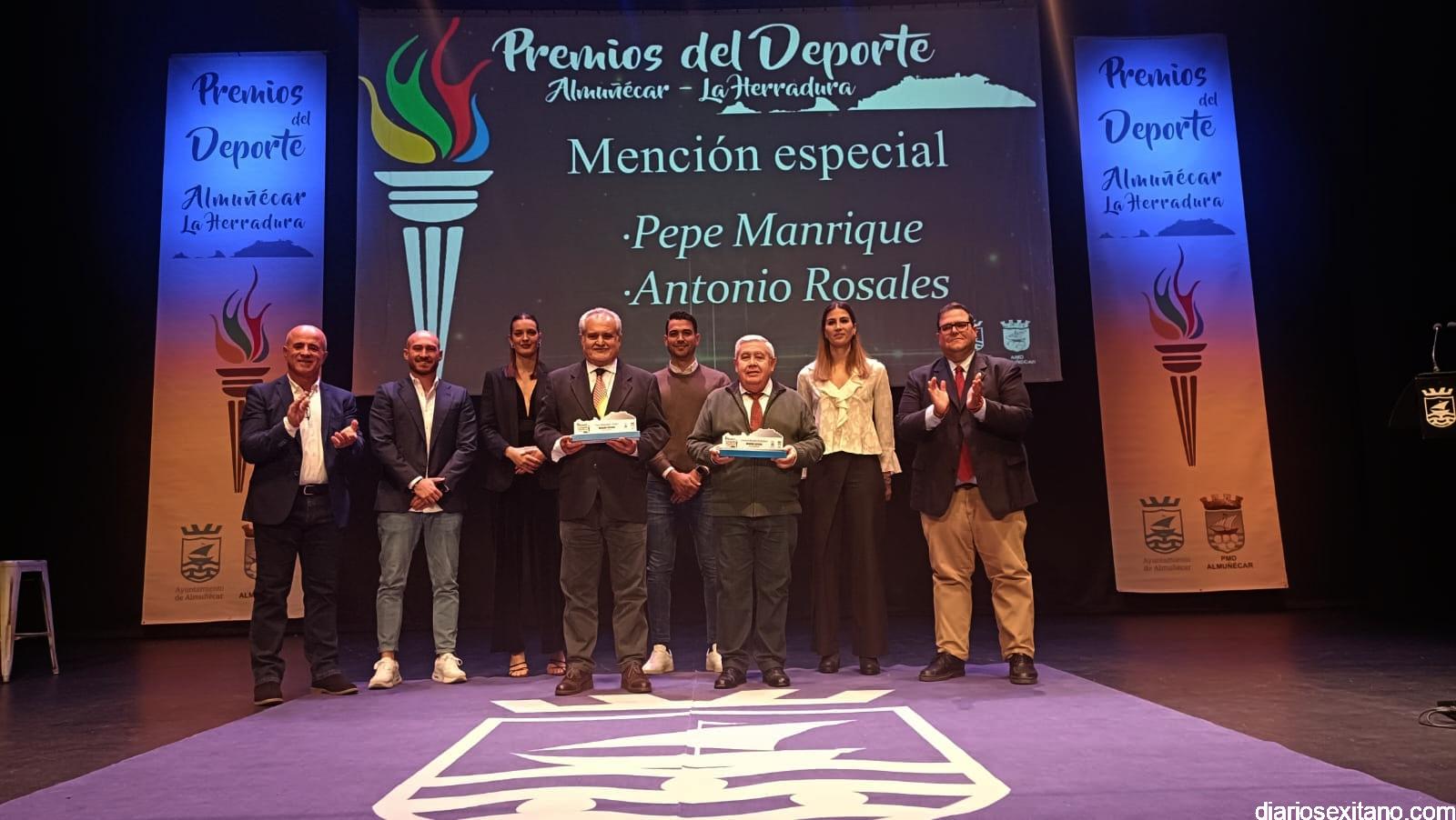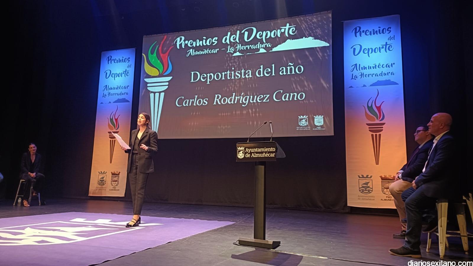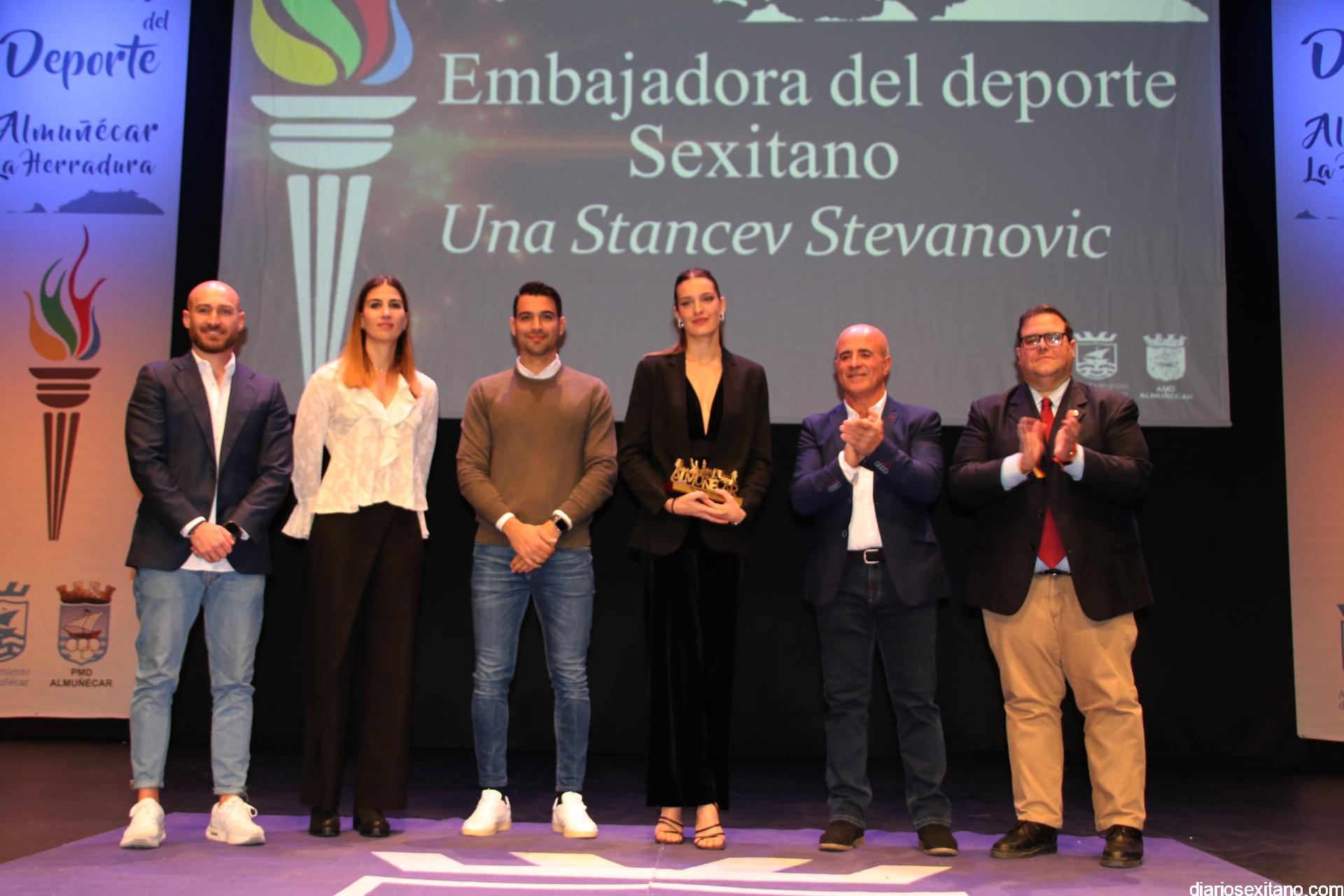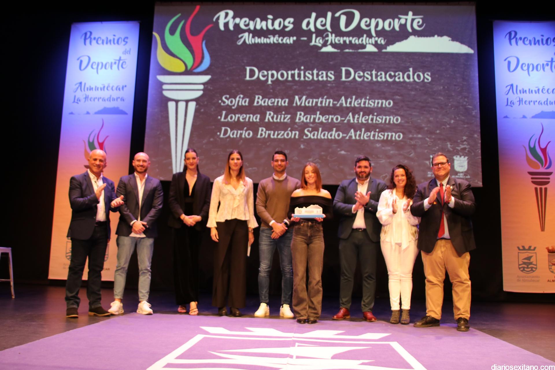 El reconocimiento del “deportista del año” fue para Carlos Rodríguez, que por motivos familiares no pudo asistir. En cuanto al “club del año”, el galardón fue para el Club de Tenis Almuñécar, liderado por Rafael Marín Linares. En cuanto al apartado de “embajadores” del deporte sexitano los galardones fueron para la atleta Una Stancev y el entrenador de fútbol Carlos González. Como “deportista de oro sexitanos” recibieron este reconocimiento Irene Espínola , ex jugadora internacional de balonmano) y el futbolista Andy Rodríguez Gaitán