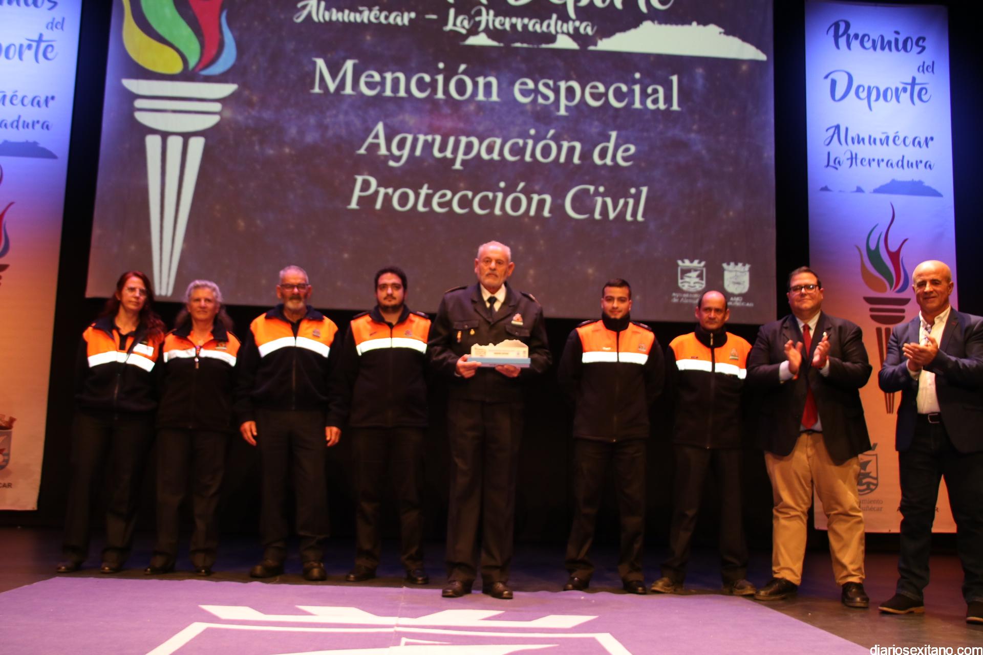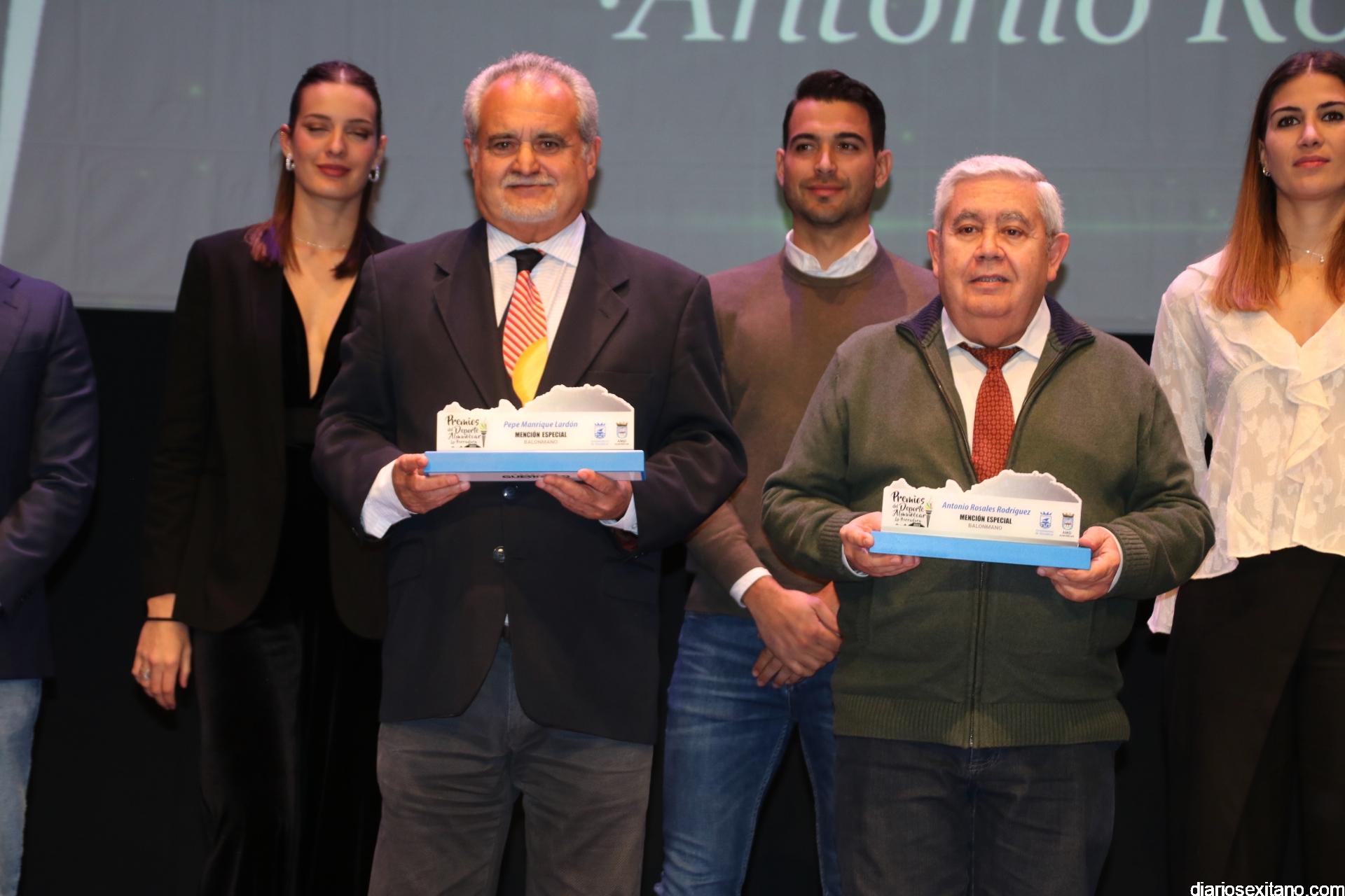 El AMD Almuñécar entregó “menciones especiales” a Antonio Rosales Rodríguez, expresidente de la Federación Andaluza de Balonmano y José Manrique Lardón, ex delegado provincial de balonmano. A ellos se sumaron Carlos Pérez, representante del Club La Herradura 2005, y la Agrupación Local de Protección Civil con su coordinador, Cecilio Fajardo, al frente.
