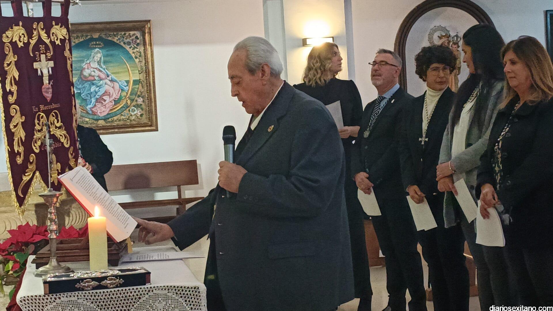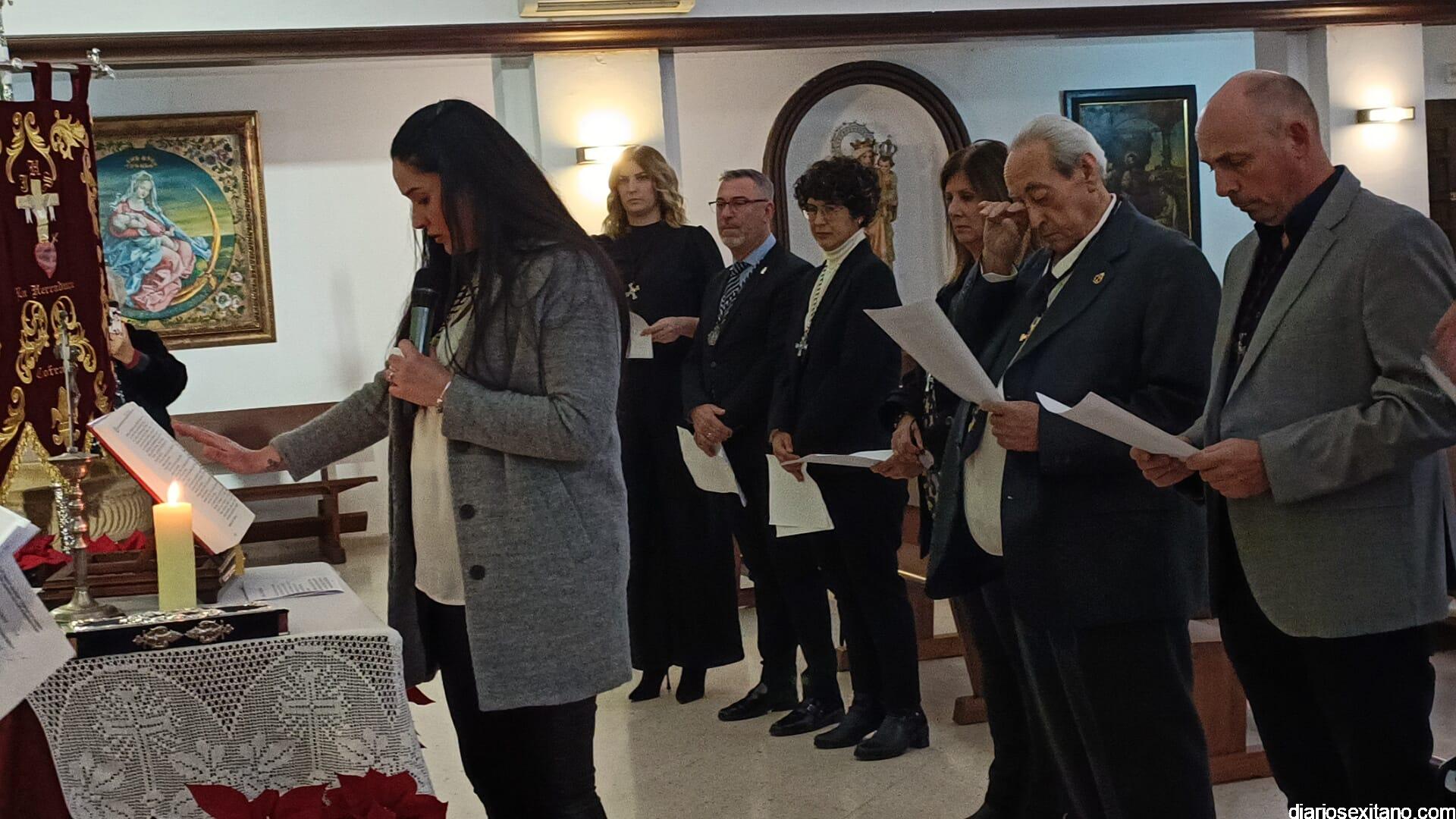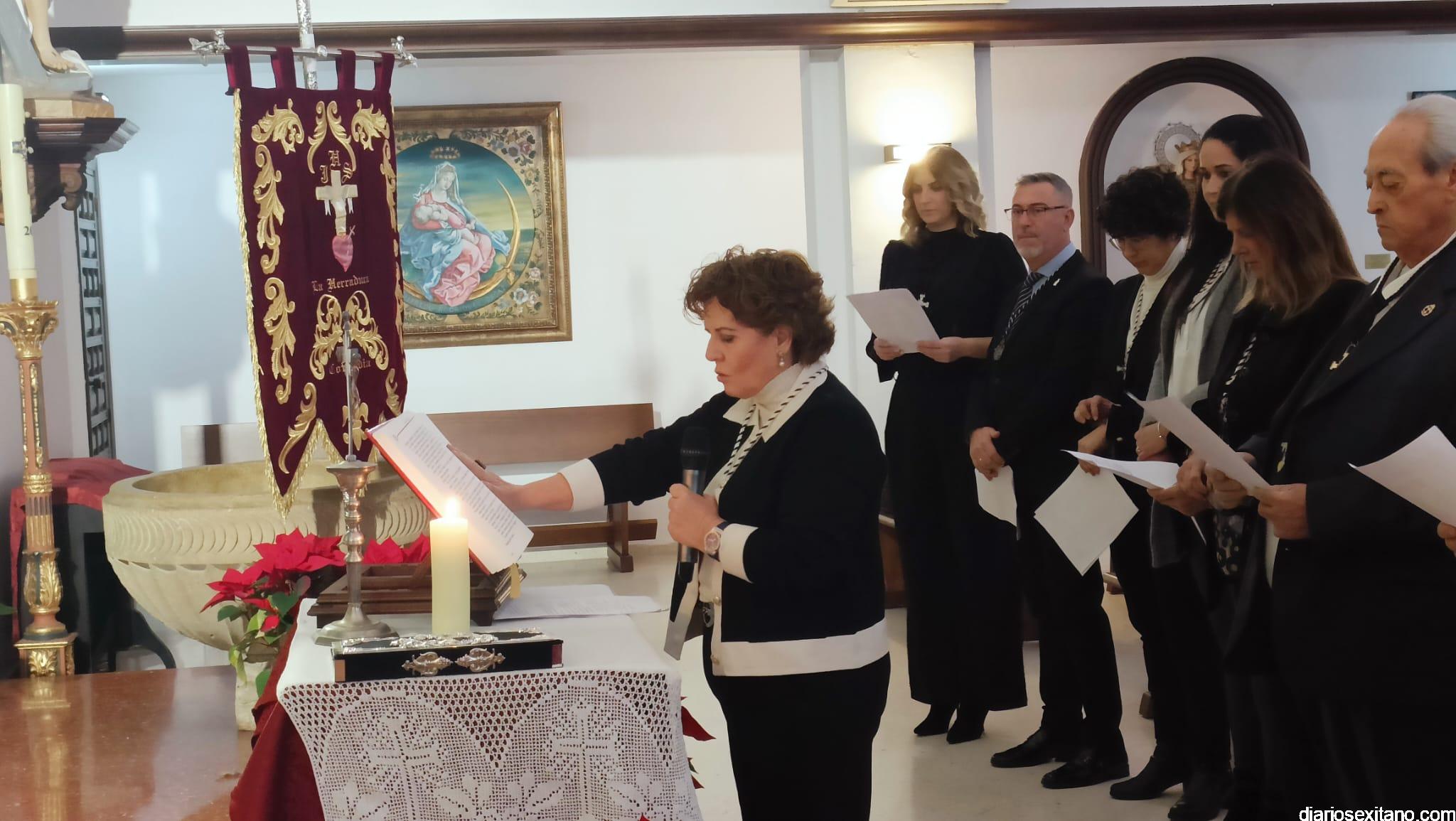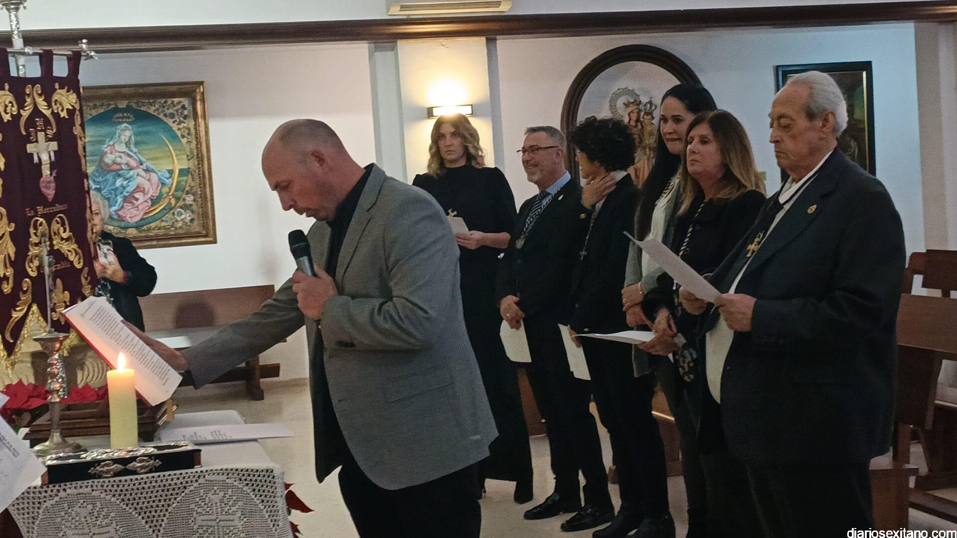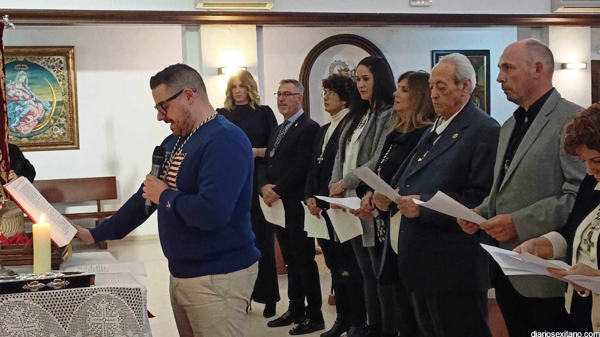 Fue la secretaria de la Cofradía, Teresa Sánchez Tello, la que juró el cargo ante el párroco, Néstor Robledo, y, posteriormente, convocó a la nueva Hermana Mayor, Ana Belén Salado Martín, a realizar el juramento y relevo en el cargo, así como al resto de componentes de la Junta de Gobierno formada, además de citada secretaria, Teresa Sánchez, Inmaculada Garciolo, Christian Barbero, Armando Barbero, Luis J. Barbero, Yolanda Valderrama, Luis Cabrera, Adoración Ruiz, Eva Salado, María Elena Parra, Antonio Almanza, Nuria Barbero, Antonio J. Barbero y Carmen Trujillo y Noemí Almanza
