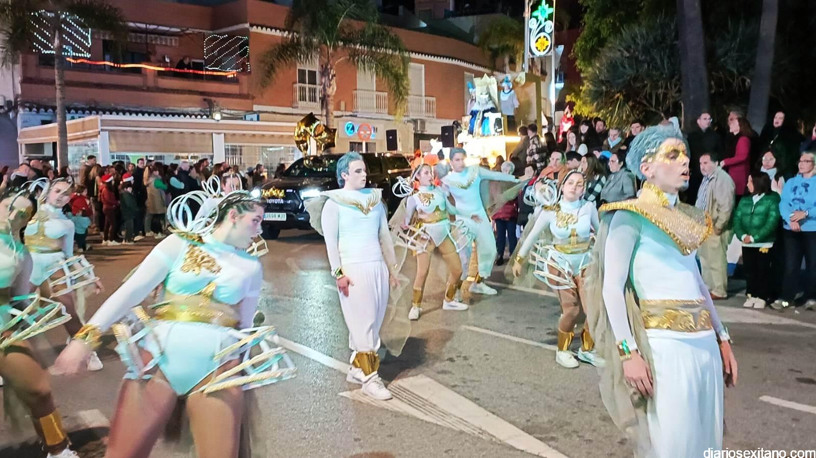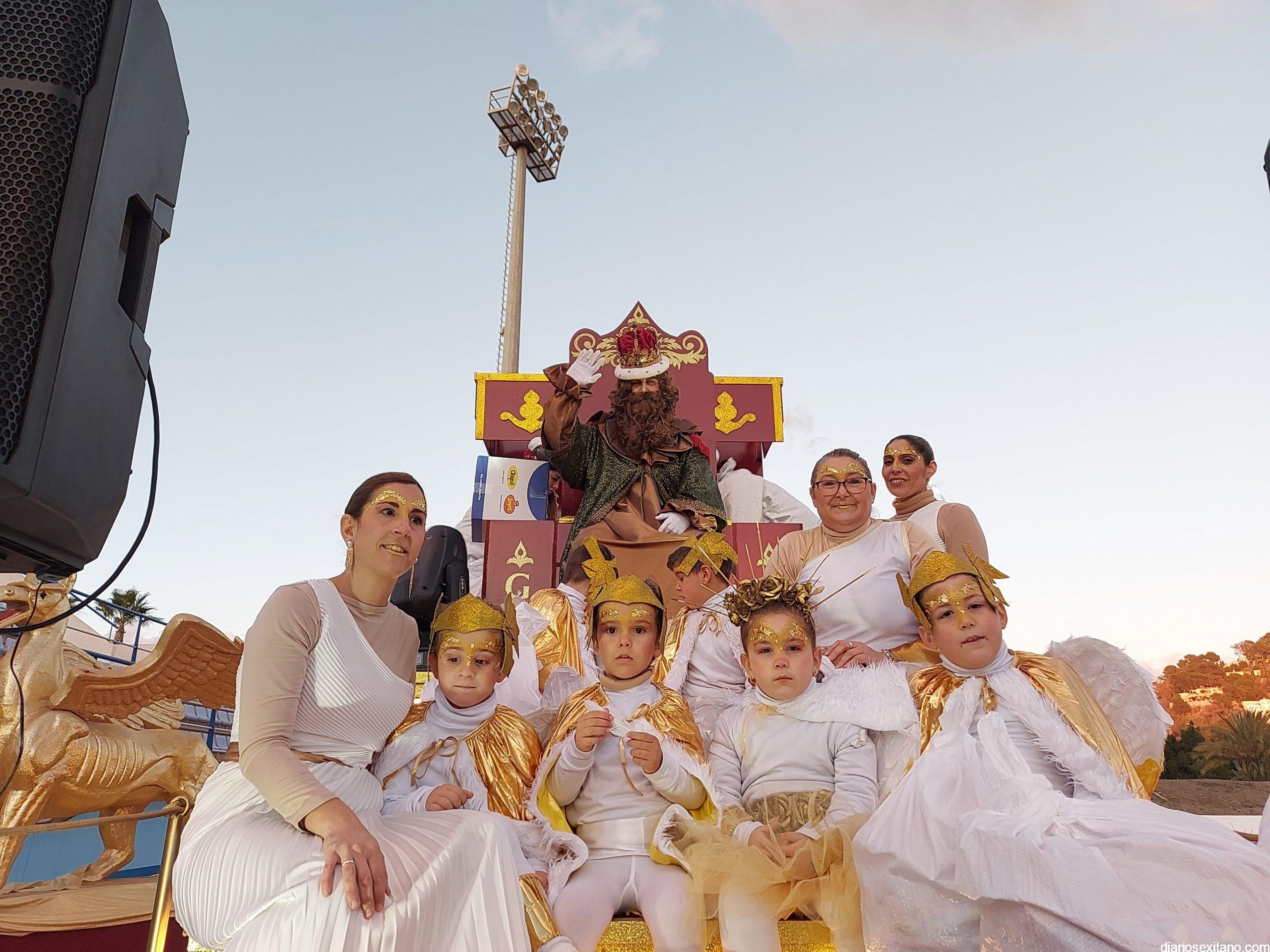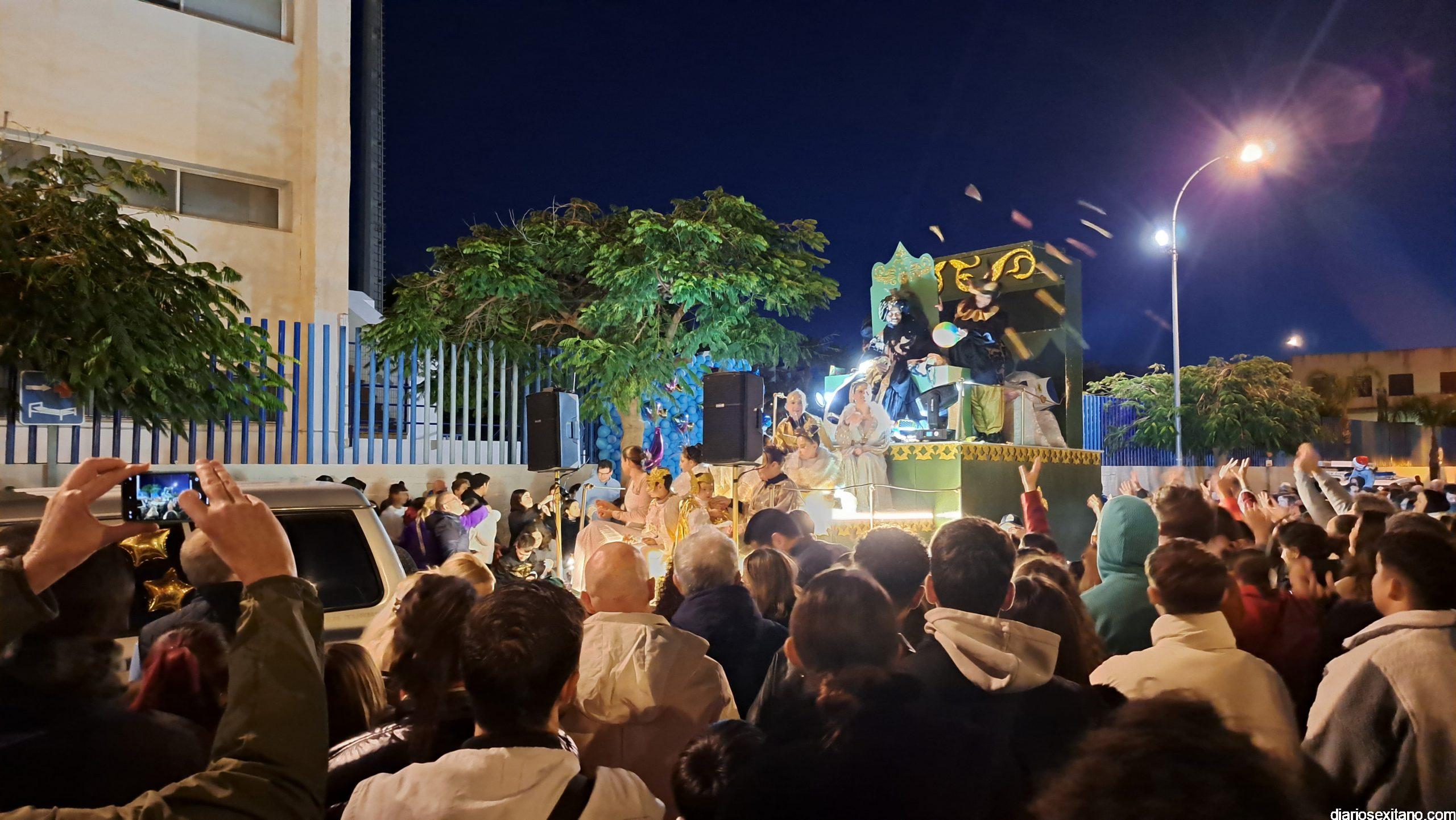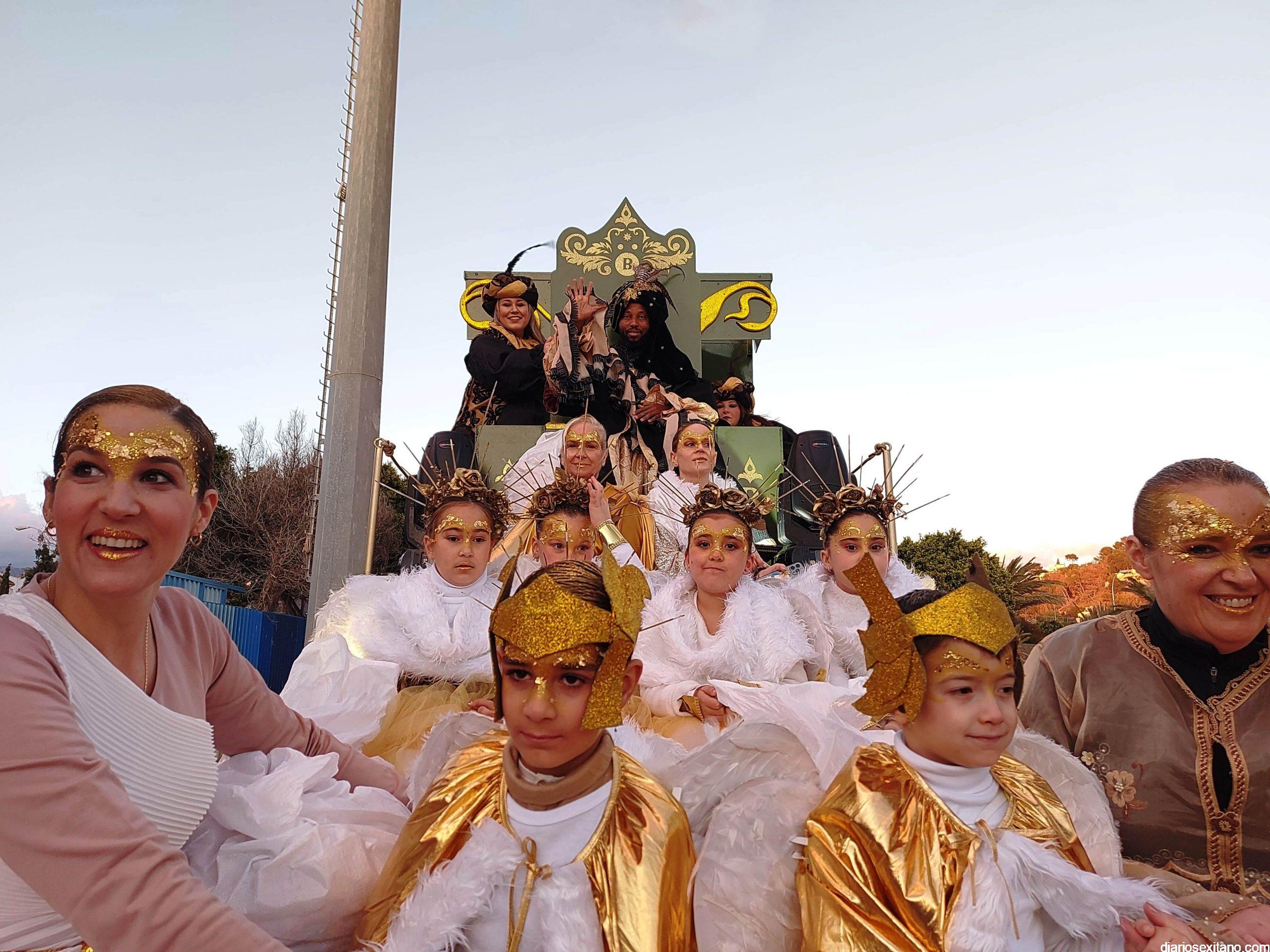 Los Reyes Magos de Oriente, Melchor, Gaspar y Baltasar, que han designado a sus representantes en Almuñécar, en las personas del alcalde sexitano, Juan José Ruiz Joya, en el joven empresario local, Joaquín Montes Ruiz y en el senegalés y sexitano de adopción, Khadim Sene, han llegado a Almuñécar y han desfilado en una cabalgata compuesta por 9 carrozas y 6 plataformas temáticas, en las que acompañaban a Sus Majestades de Orientes más de 300 personas, que han repartido 3.000 kg de caramelos, 5.800 globos, 4.500 juguetes y 2.200 pelotas