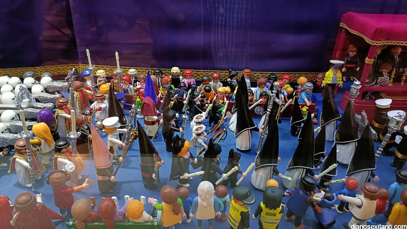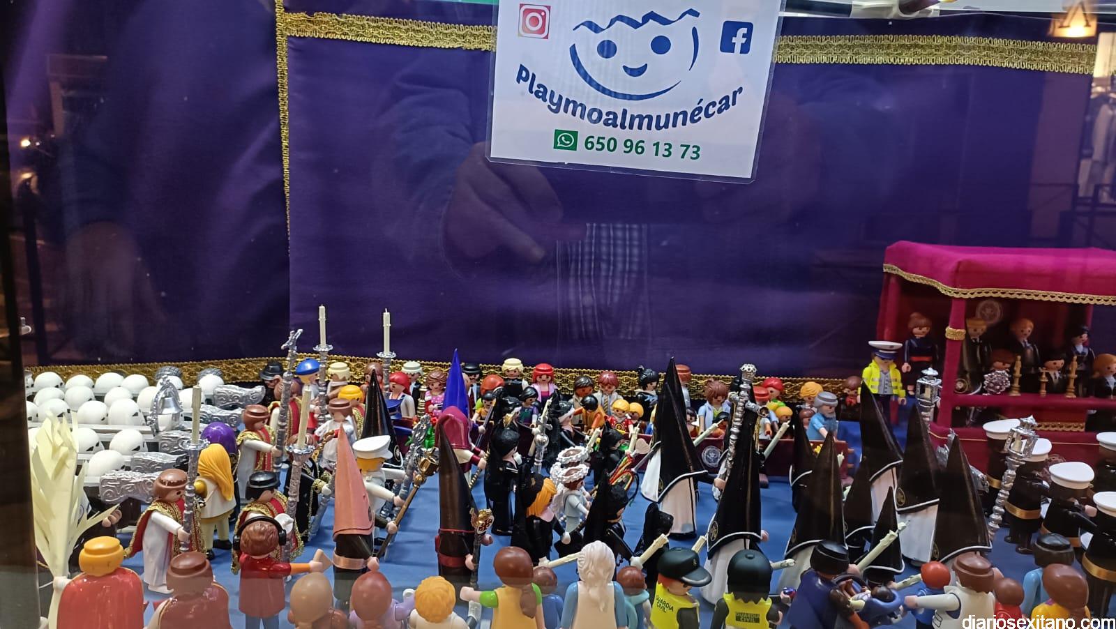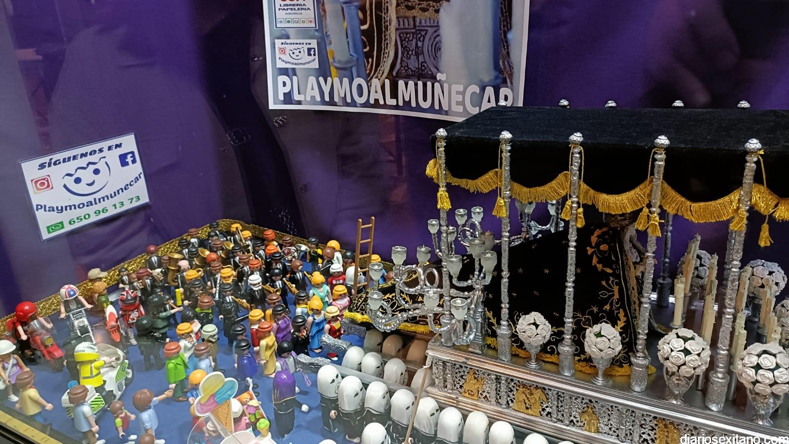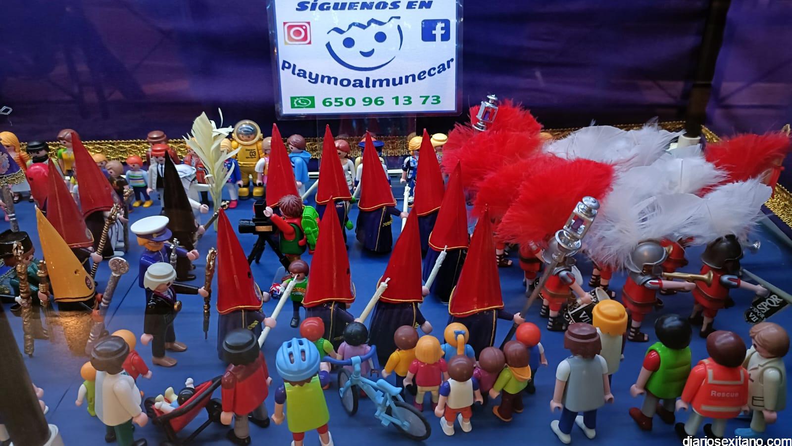 Desde hace cinco años lo que fue un trabajo extraescolar y una decoración de escaparate en Semana Santa por parte de la familia Ruiz Gamarra se ha convertido en todo un atractivo para los amantes del Playmobil y la Semana Santa a su paso por Librería Jofi.