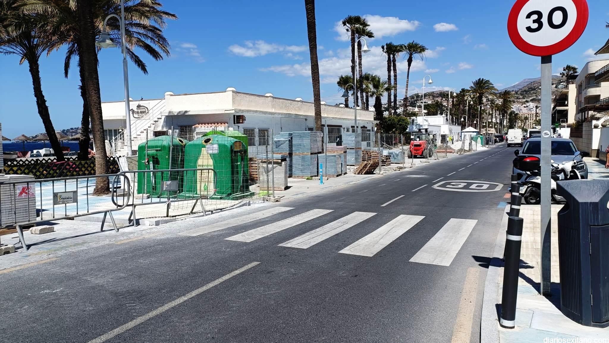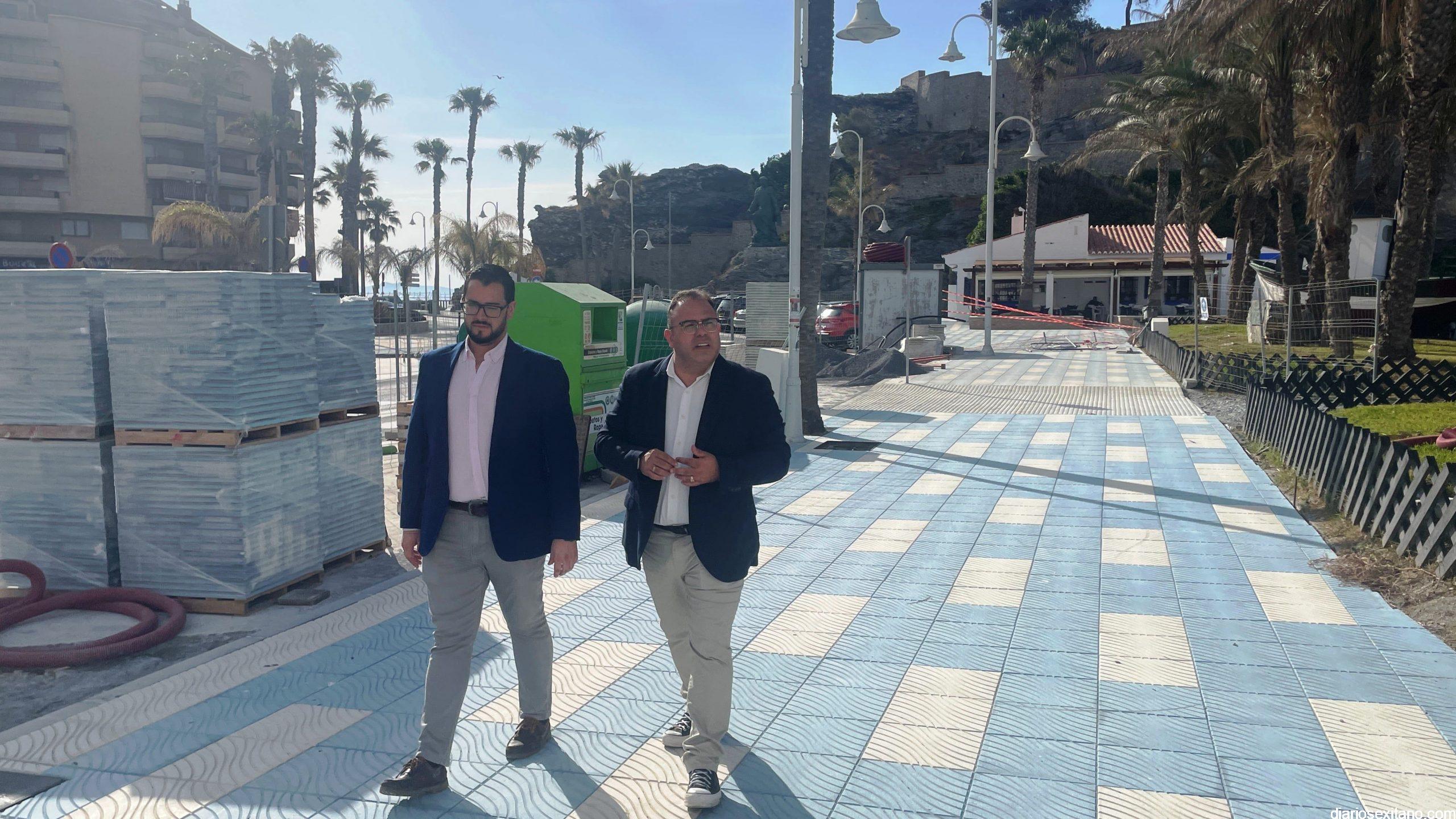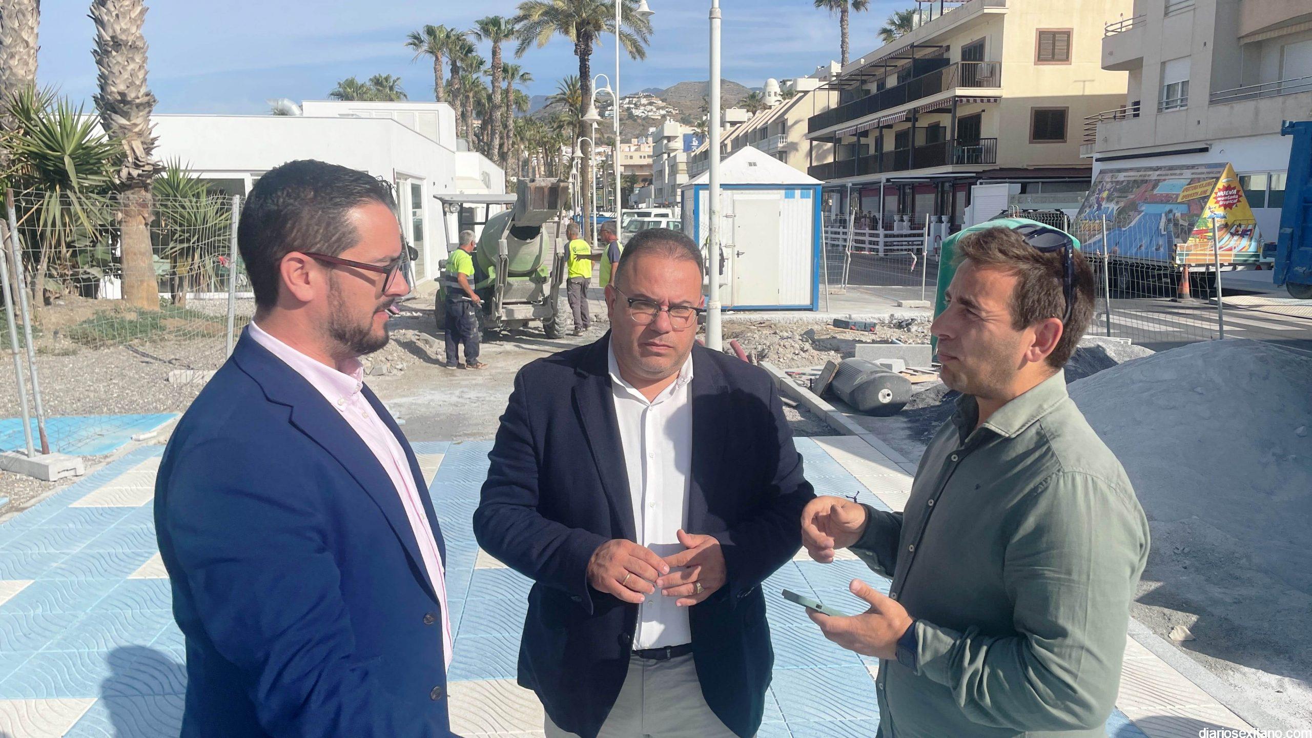 El alcalde de Almuñécar y el concejal de Obras y Mantenimiento han visitado los trabajos que abarcan desde el Peñón del Santo hasta el restaurante Vizcaya. Después del verano continuará la siguiente fase