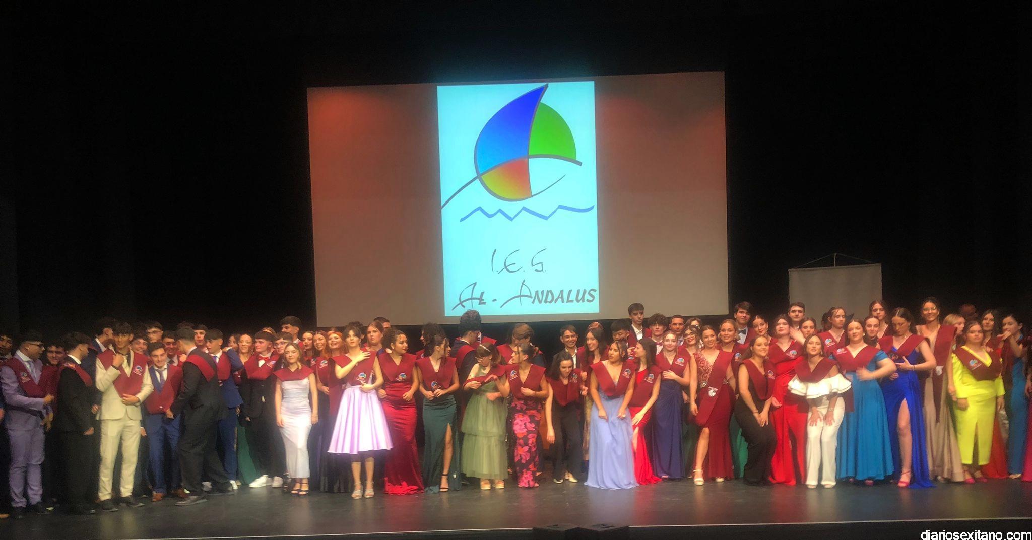 Brillante, emotiva y animada estuvo la graduación de Bachillerato y Ciclo de Informática del IES Al Andalus en el auditorio de la Casa de la Cultura de Almuñécar. Un total de 82 los alumnos de Bachillerato recibieron su orla y cinco de ellos también Matrículas de Honor. A ellos se sumaron 10 alumnos del Ciclo de Informática, según el director Javier Morales.