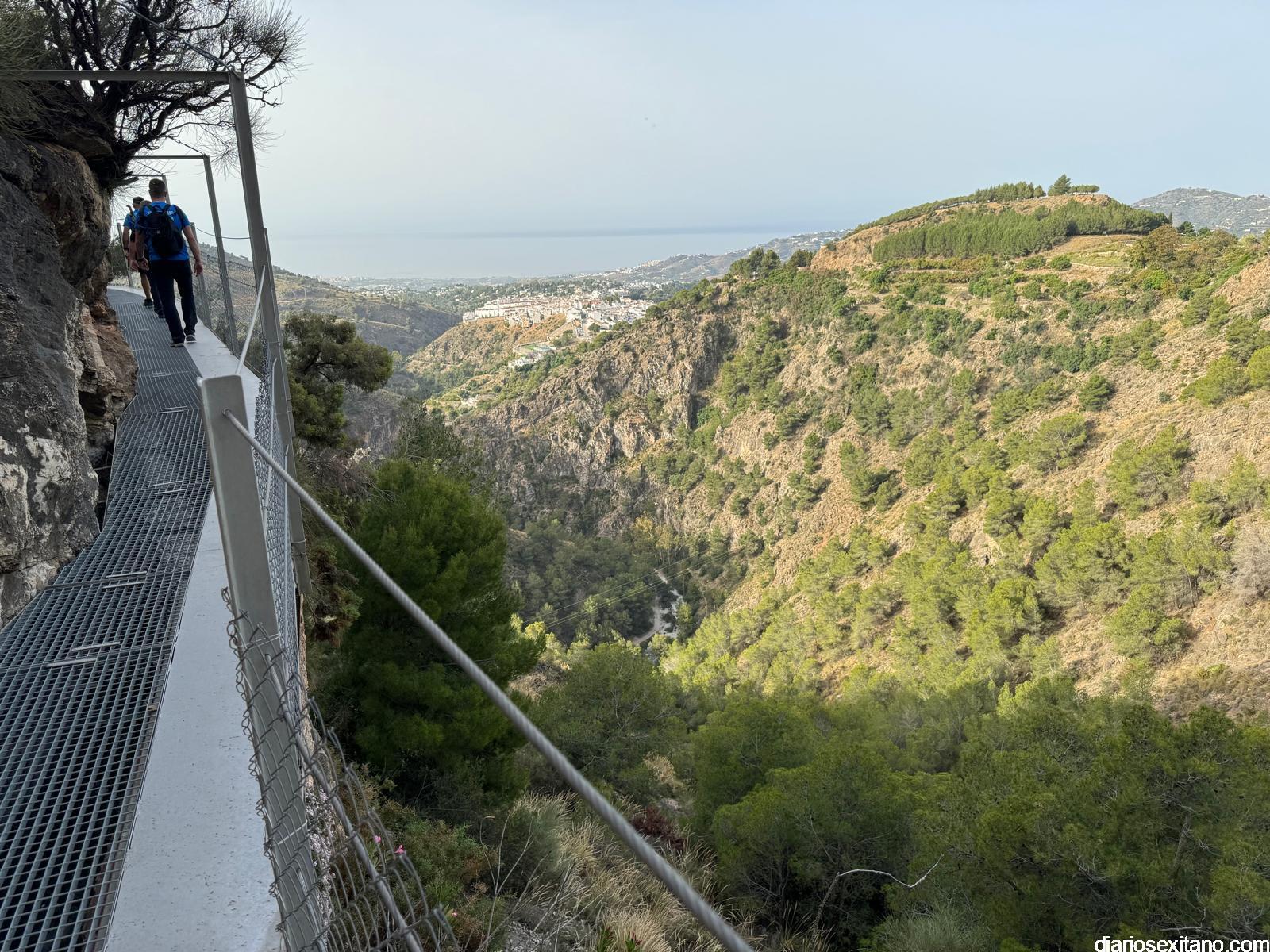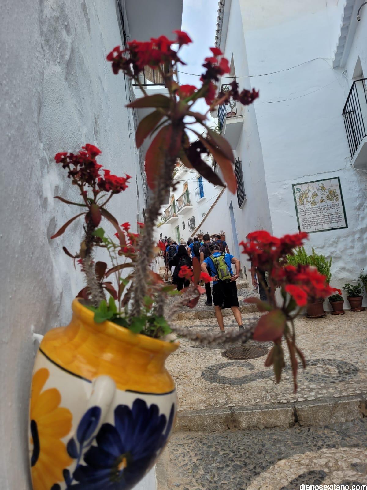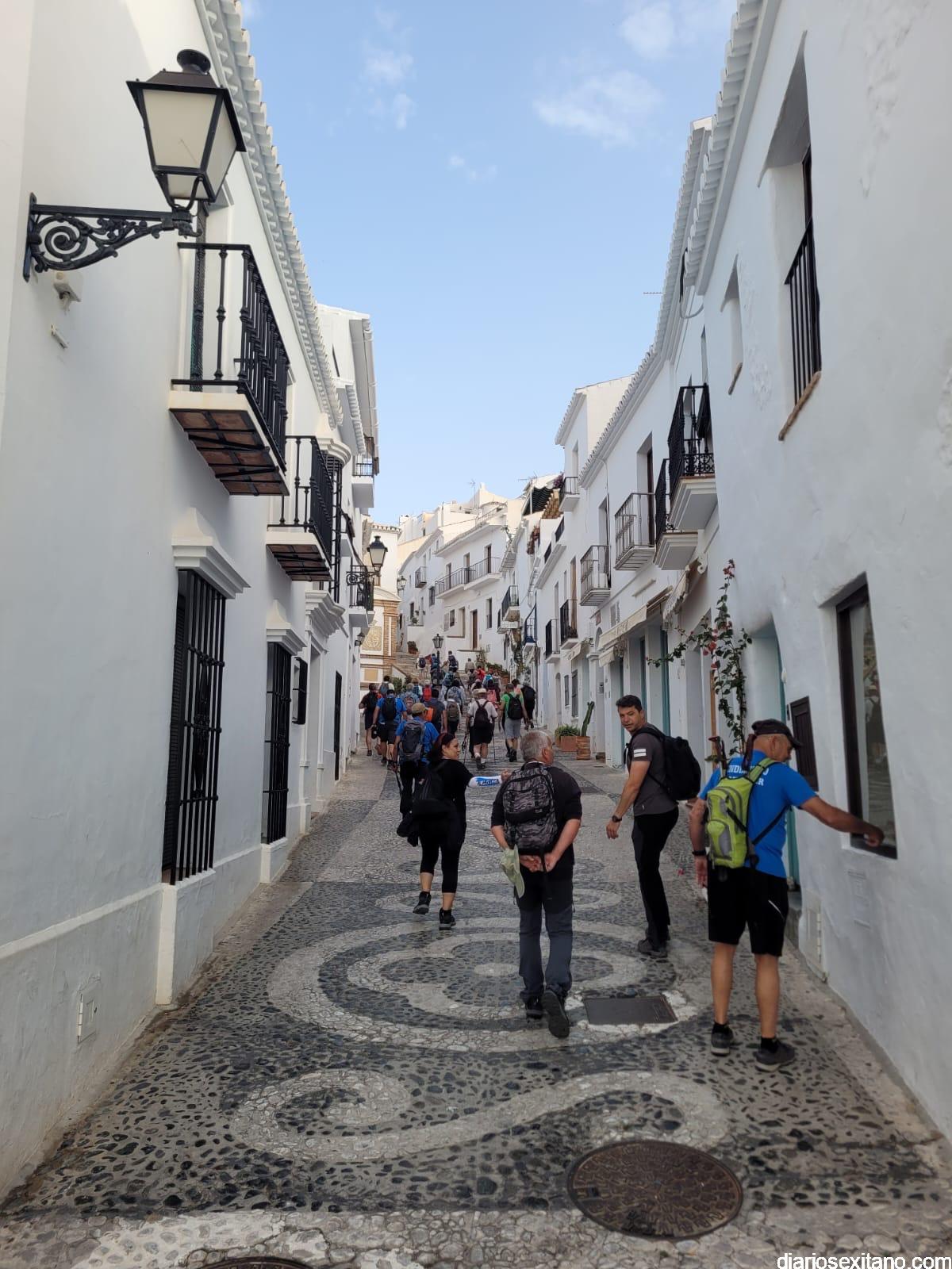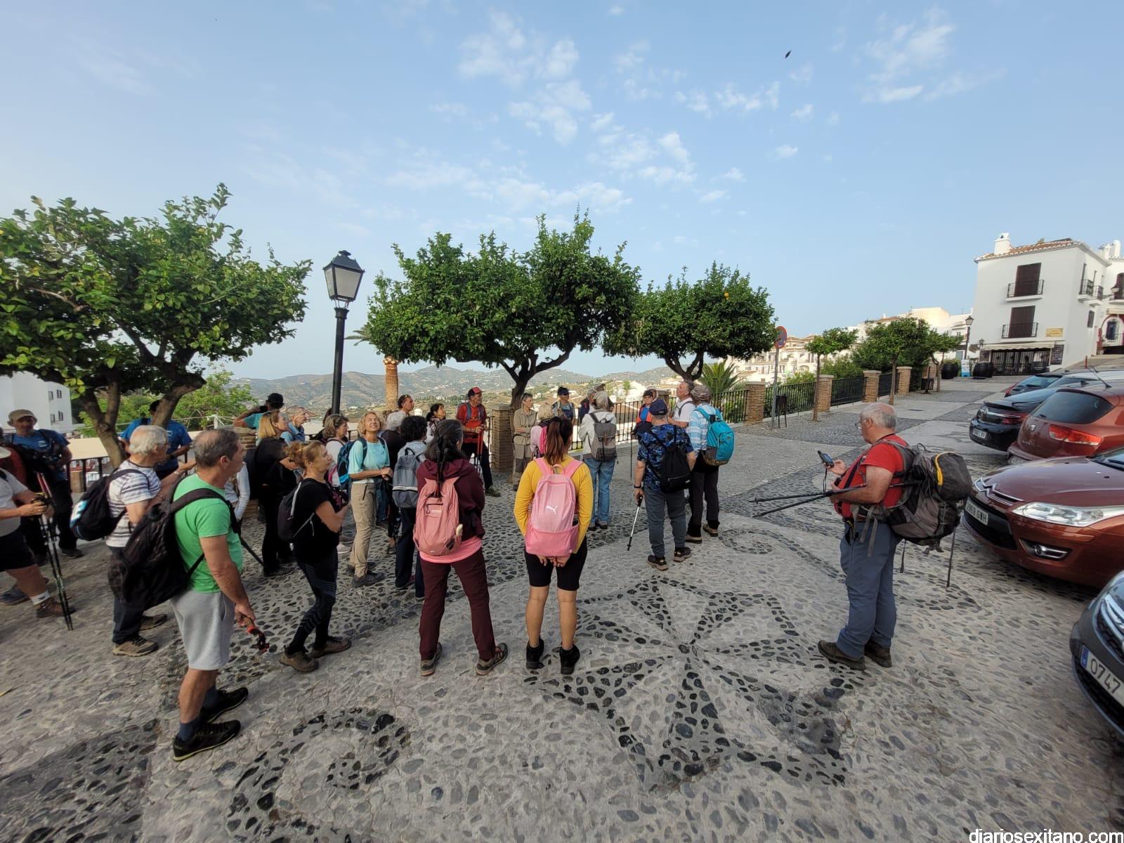 El recorrido circular, con un trayecto de 12 kilómetros, teniendo como protagonista el municipio malagueño de Frigiliana que comenzó “desde el Mirador del Castillo, para seguir por Acequia Lizar, río Higuerón, Cruz de Napoleón, antigua área recreativa del Pinarillo Espeso, acequia Batan, cascada, hasta finalizar en Frigiliana”, explicó el coordinador-guía de la actividad, Javier del Castillo.
