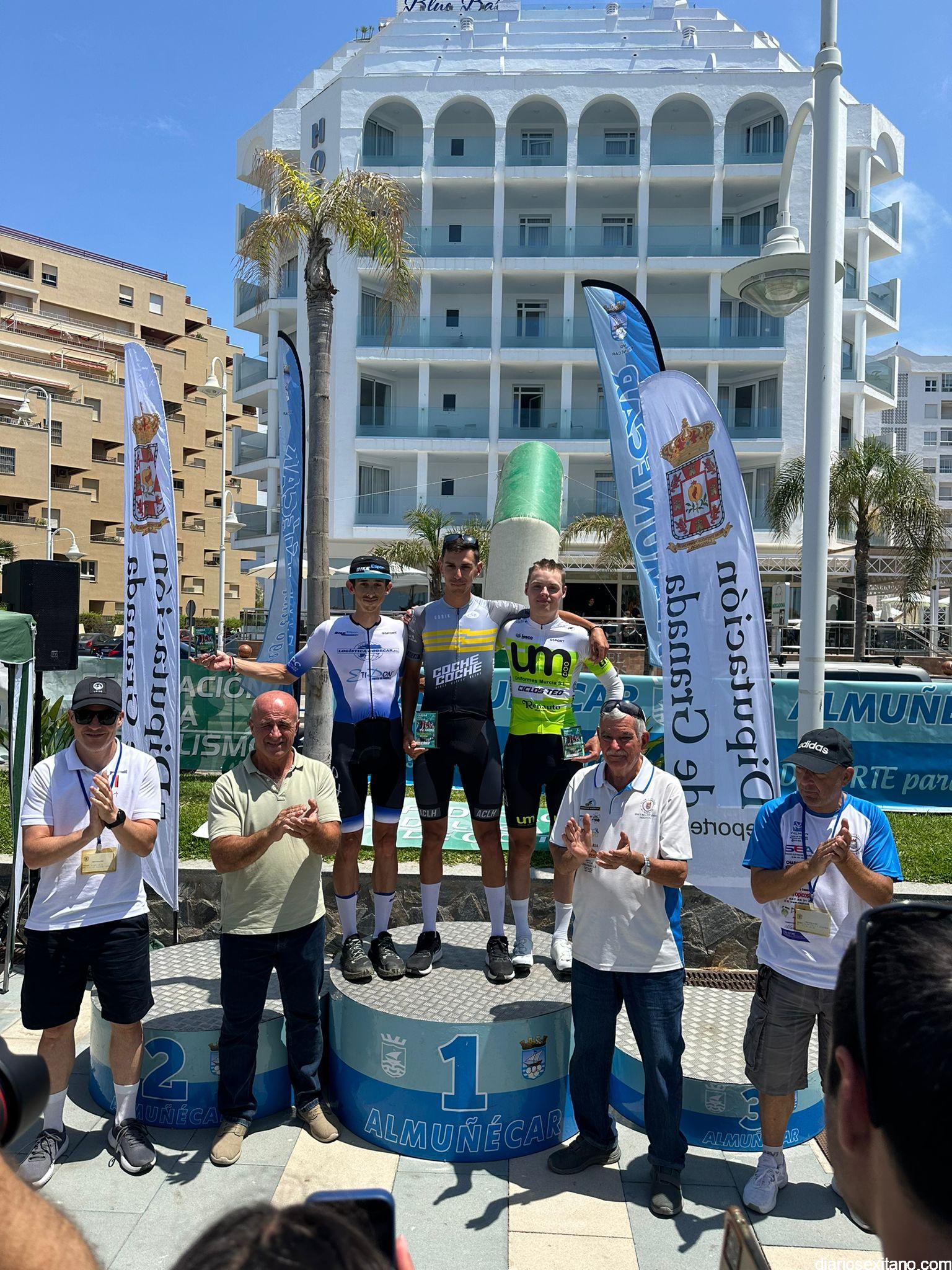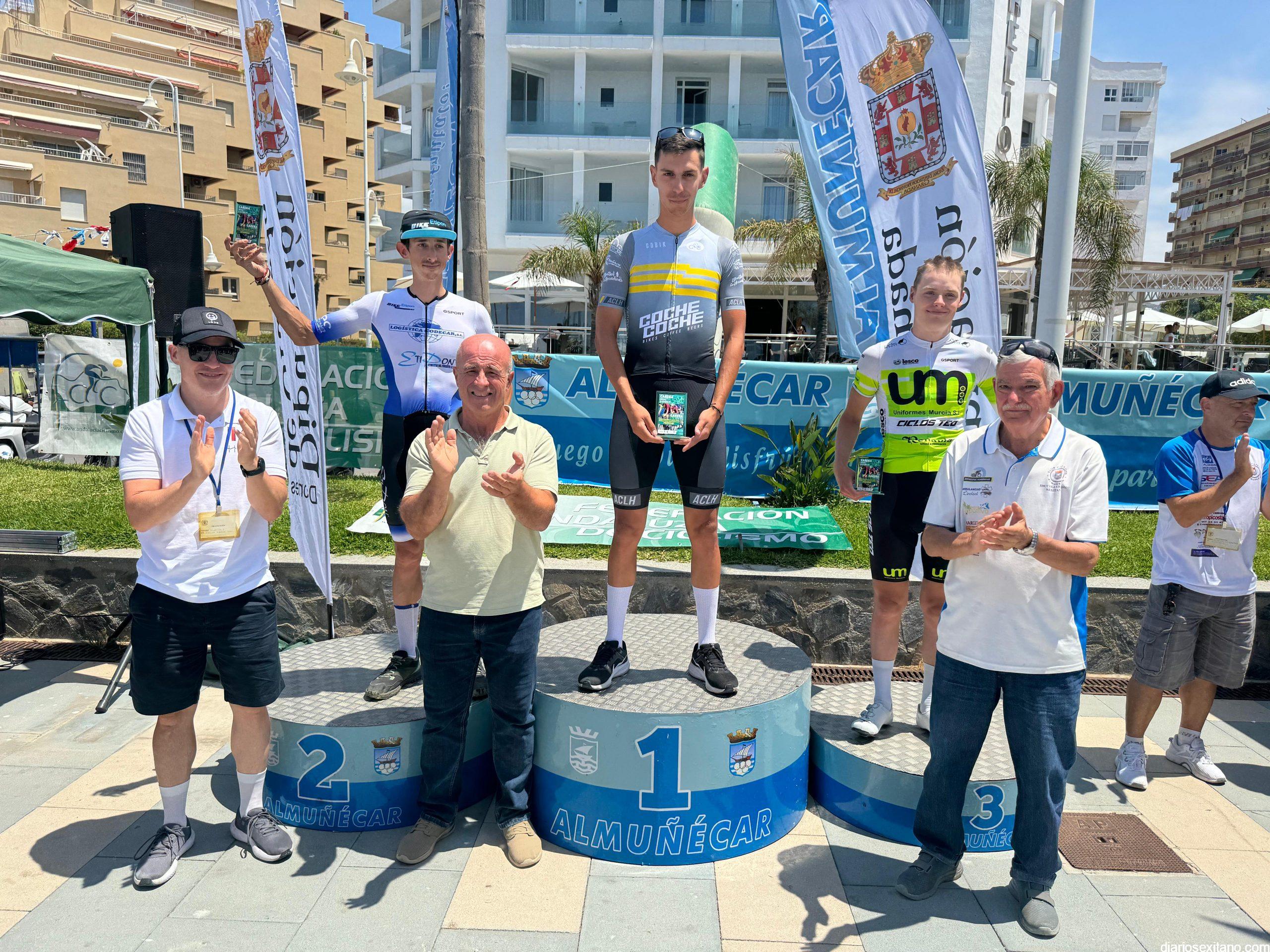 Con un emocionante final en el último kilómetro antes de llegar a meta, situada en el puerto de La Cabra, el ciclista de la categoría élite enrolado en el Club AC La Herradura Félix Aranda Ruiz, se ha impuesto con un tiempo de 53 minutos y 37 segundos que ha empleado en los 25 kilómetros de duro trazado de de la XXXIV Carrera Ciclista Almuñécar. Cota 1200 “Memorial Miguel Ángel Almendros”,