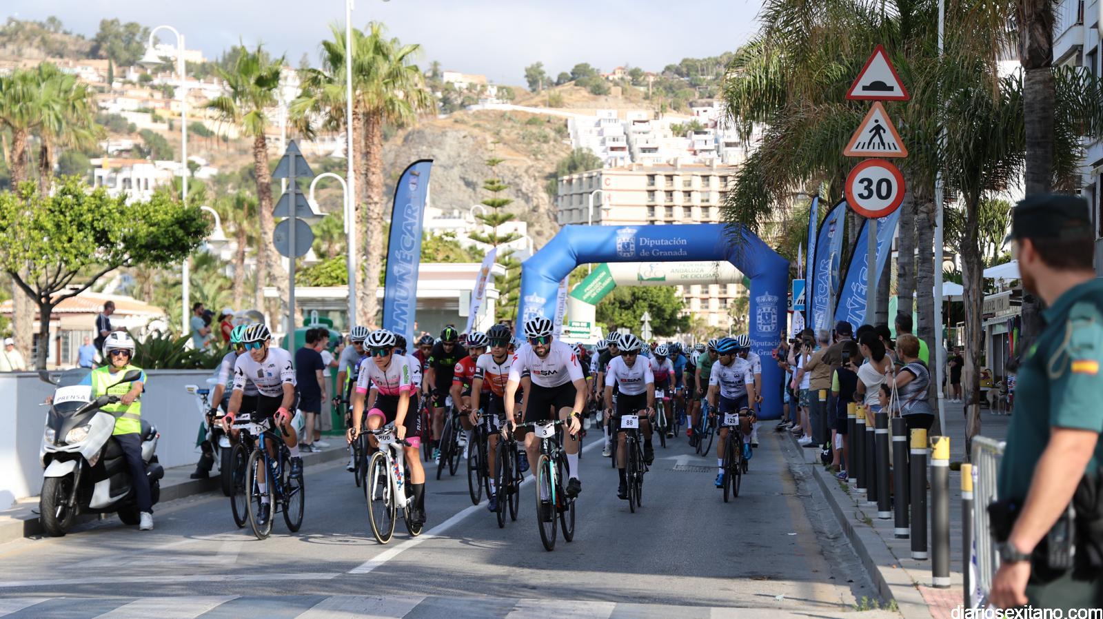 El pelotón ciclista, nada mas realizar el protocolario corte de cinta contando con la presencia de la familia de Miguel Ángel Almendros, partió en recorrido neutralizado, desde las puertas del hotel Helios, en el paseo San Cristóbal, por las calles de Almuñécar hasta llegar a Laderas de Castelar donde estaba situada la salida oficial.