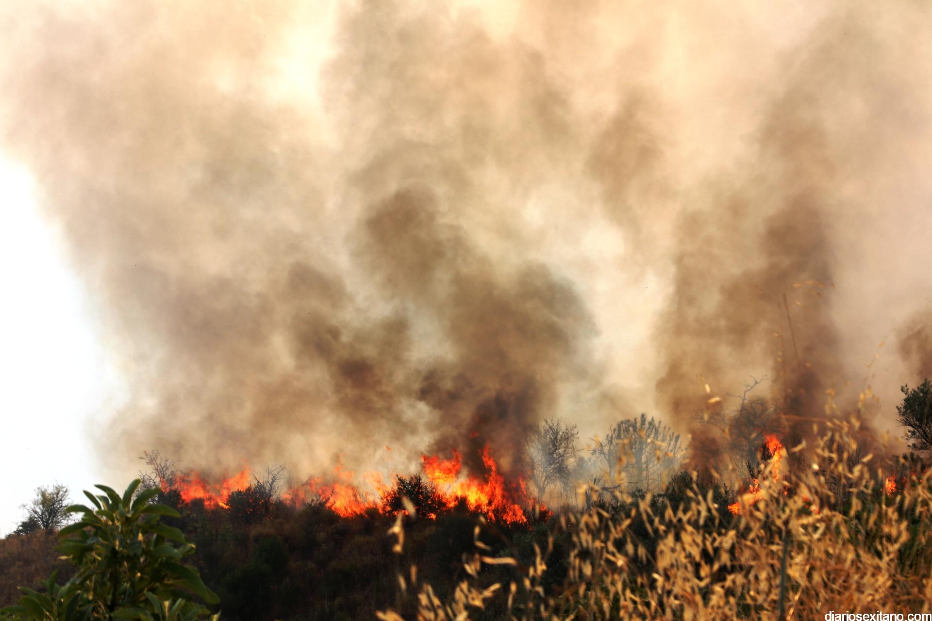 El Teléfono 112 recibió, sobre las 20.15 horas del martes, la primera de varias llamadas de ciudadanos informando de un incendio en la zona del camino de Peña Escrita.