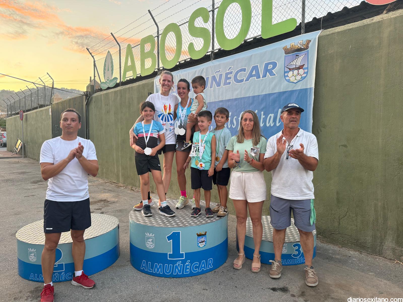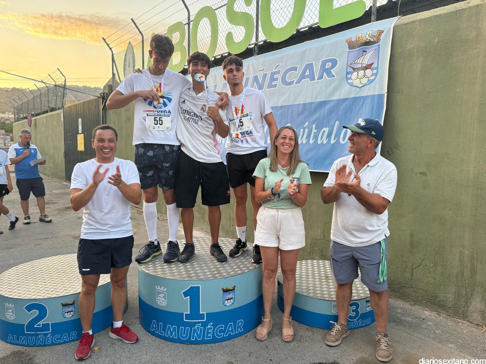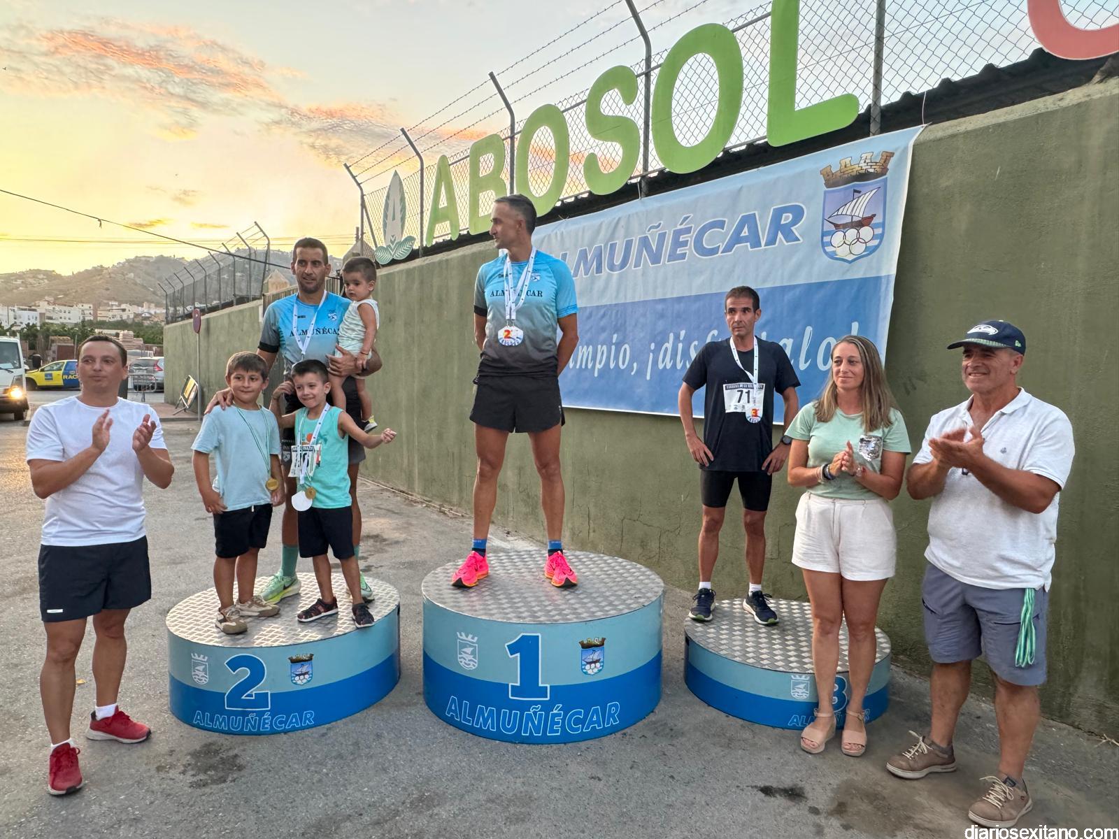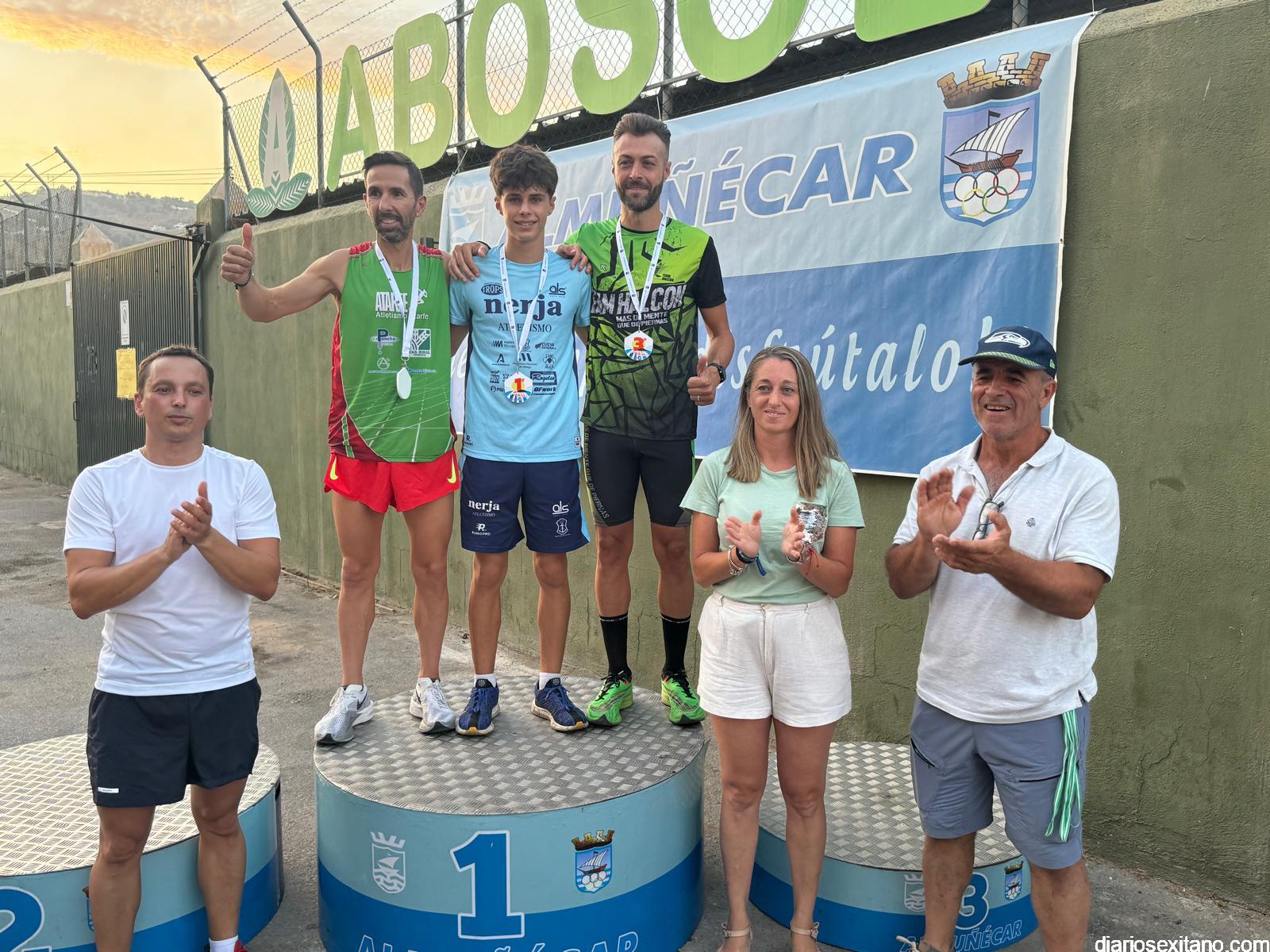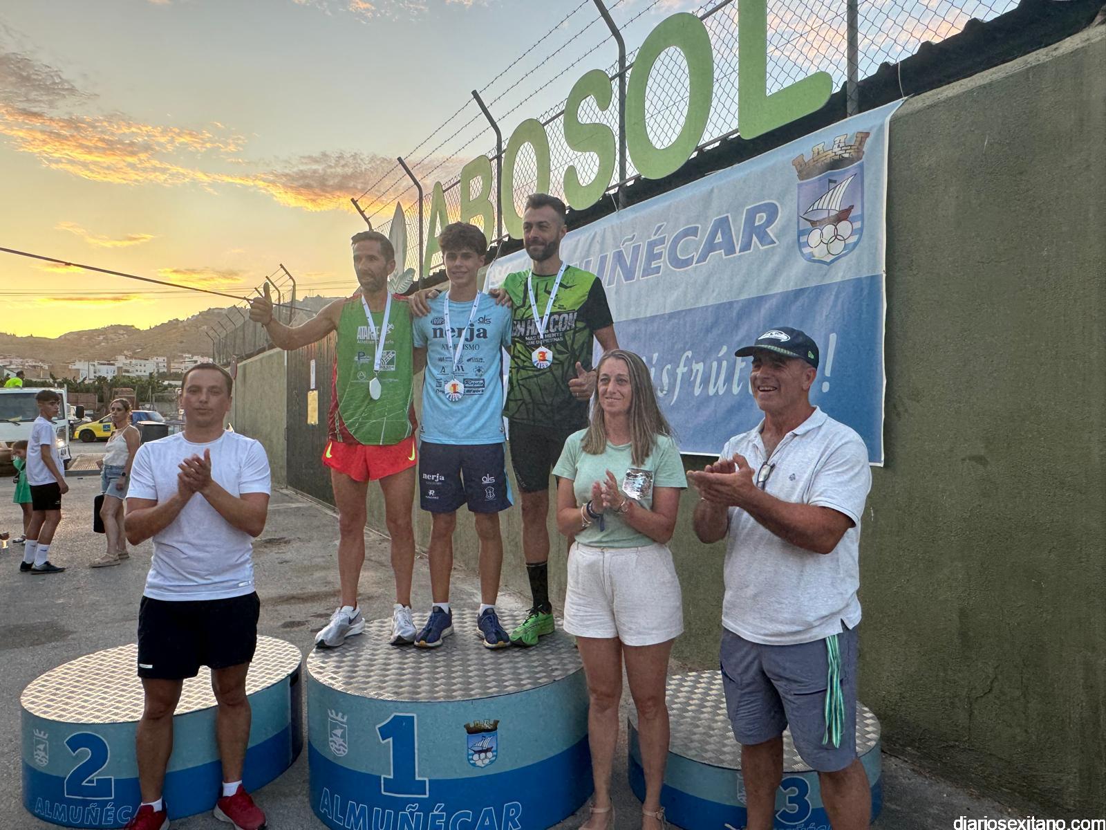 El concejal de Deportes del Ayuntamiento de Almuñécar, Luis Aragón, junto a los ediles de Medio Ambiente y Playas, y de Agricultura y Parques, Lucía González y Carlos Ferrón, respectivamente, fueron los encargados de ponerle el broche final a esta carrera popular con la entrega de medallas a los más destacados de cada categoría.