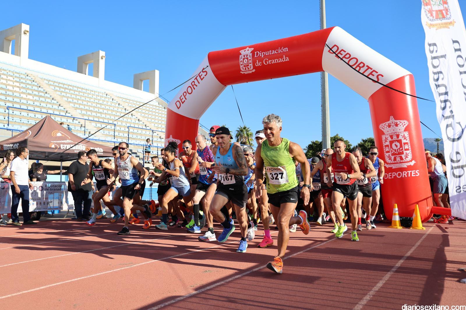 El evento reunió a cerca de un millar de participantes que tras tomar la salida en el estadio “Francisco Bonet” recorrieron la vega, calles y paseos marítimos sexitanos